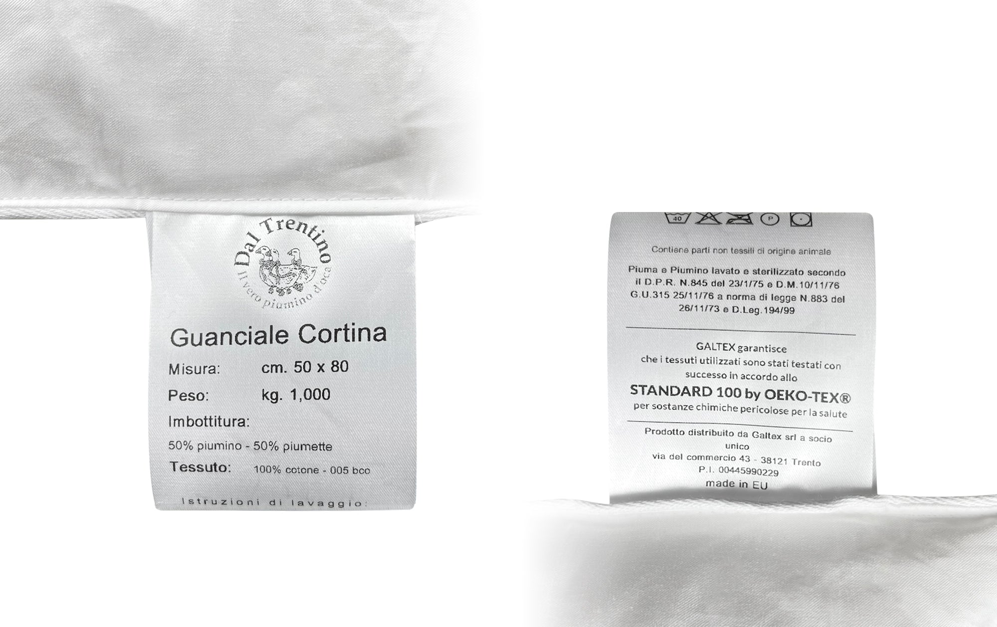 Prodotto Certificato: Inoltre, il guanciale è realizzato con un tessuto esterno in cotone naturale certificato OEKO-TEX, che garantisce la sicurezza e la qualità del prodotto. La trama fitta del tessuto impedisce la fuoriuscita della piuma e funge da barriera contro gli acari della polvere, rendendolo una scelta ideale per chi soffre di allergie.