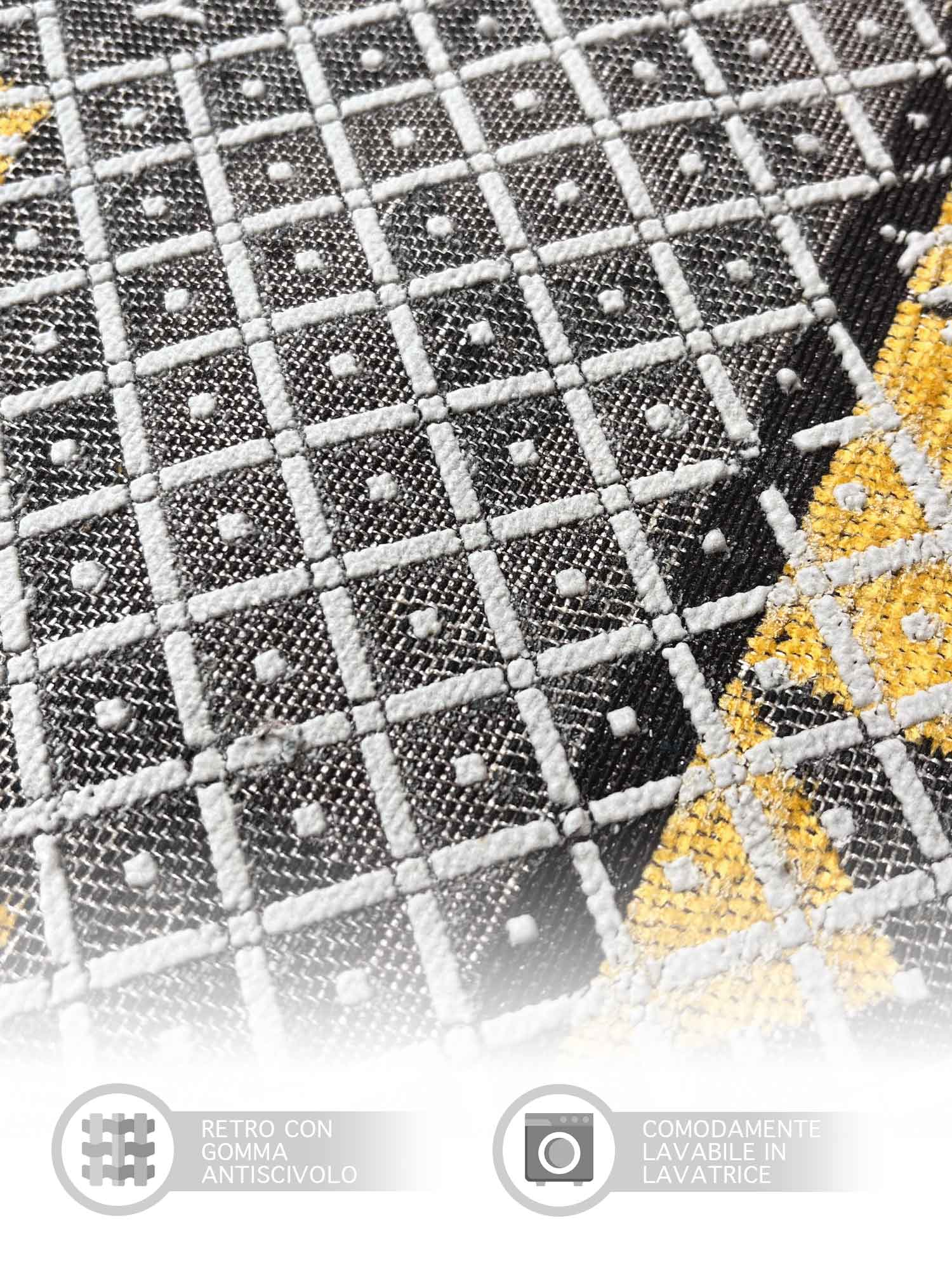 ✔️Antiscivolo: La Parte posteriore realizzata in Poliestere con lavorazione Antiscivolo rende il tappeto stabile e aderente saldamente a terra su tutte le superfici per evitare il pericoloso effetto slittamento- Consentito anche l'utilizzo anche su pavimenti riscaldati ( Riscaldamento a Pavimento )