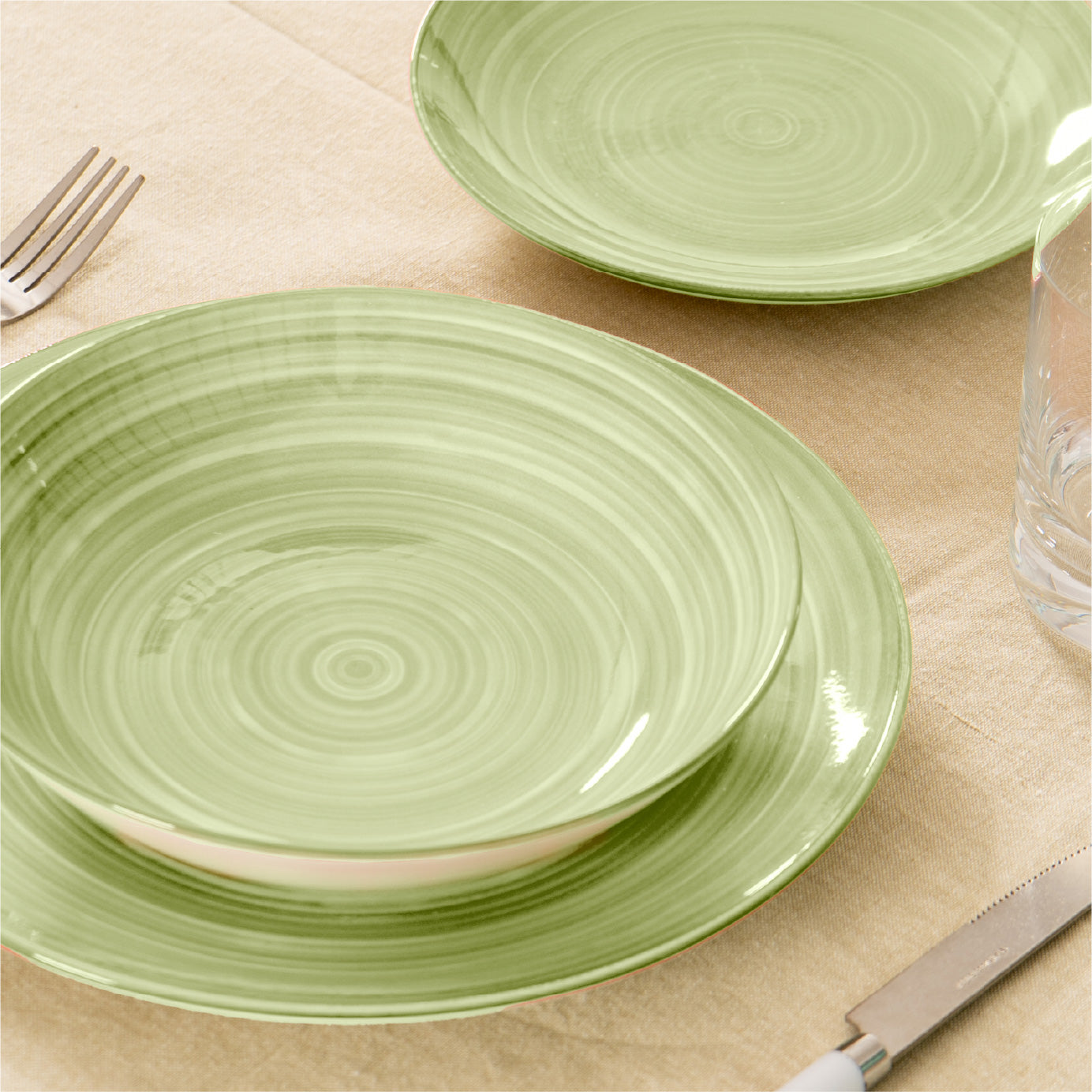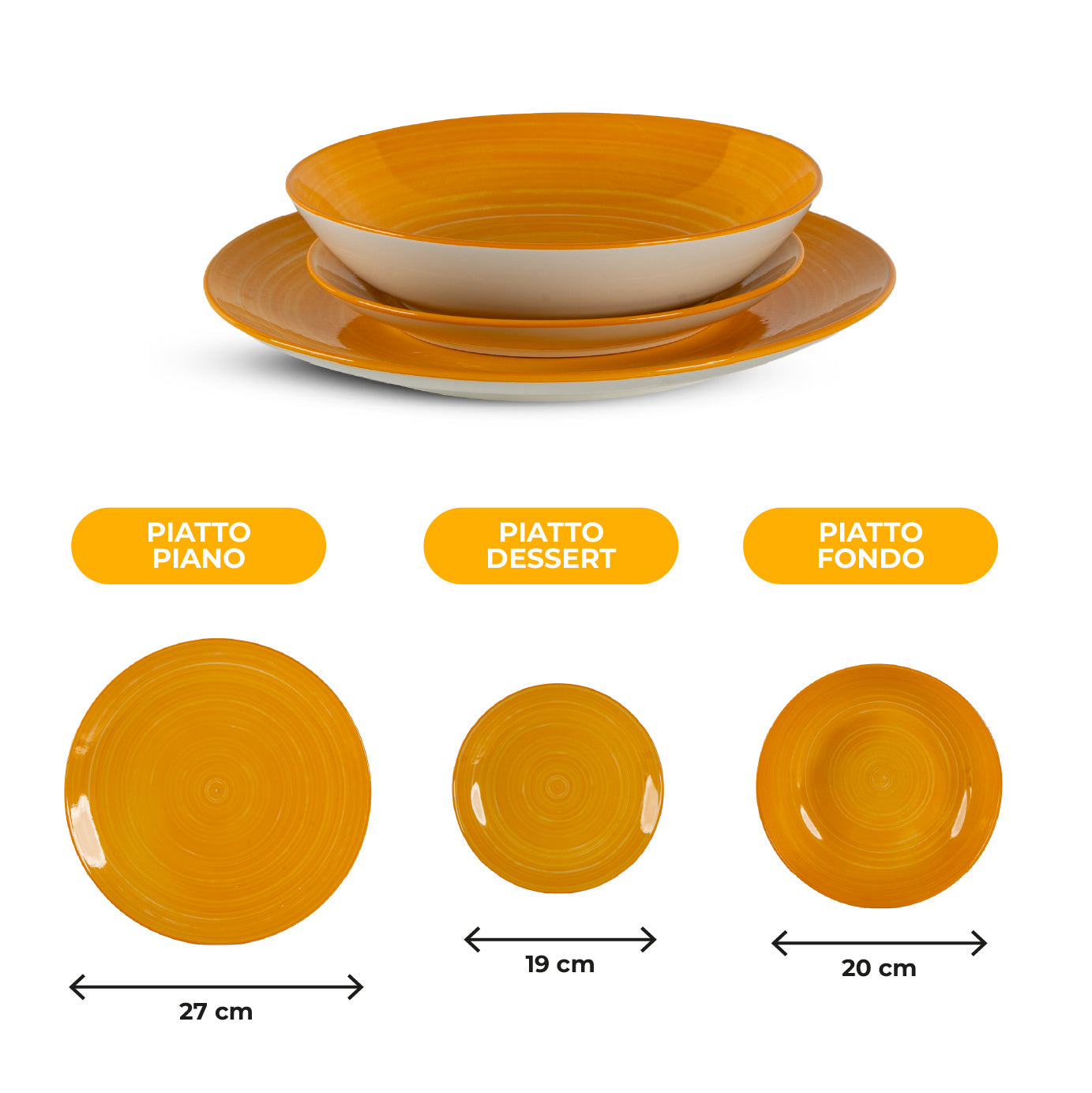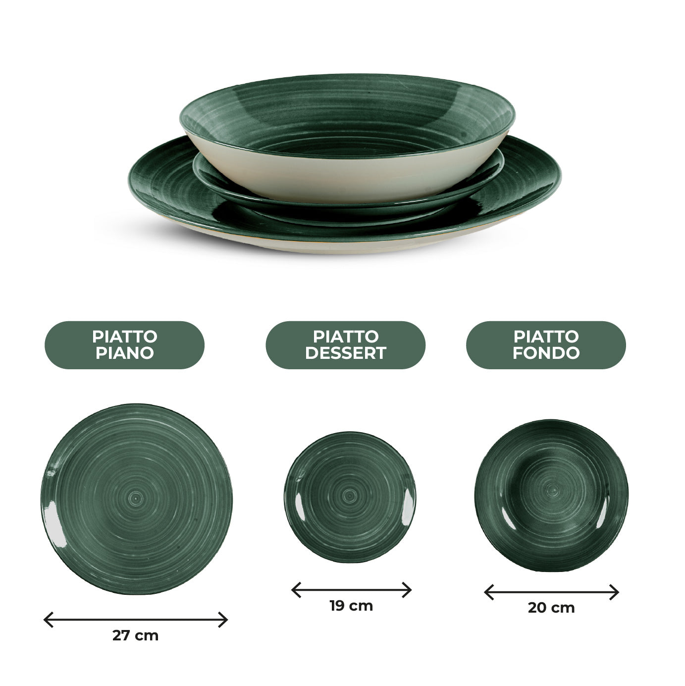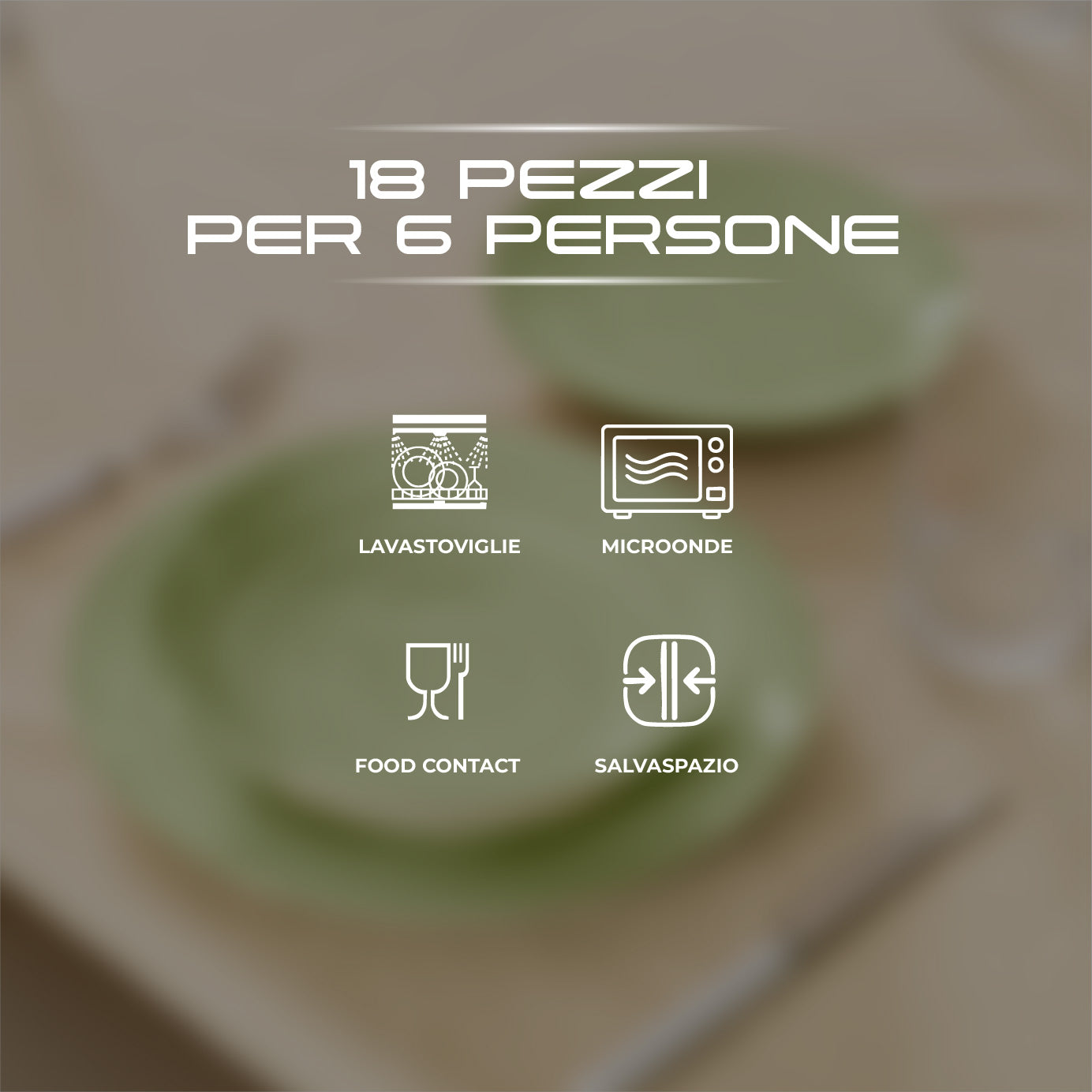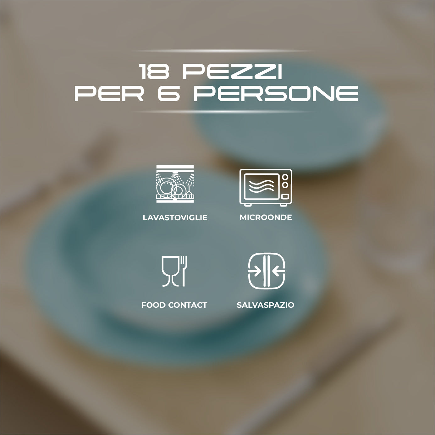 ✔️SERVIZIO TAVOLA COMPLETO 18 PEZZI Set piatti per 6 persone composto da 6 piatti piani Ø27 cm, 6 piatti fondi Ø20 cm e 6 piatti dessert Ø19 cm, ideali per ogni portata: antipasti, primi, secondi e dolci.