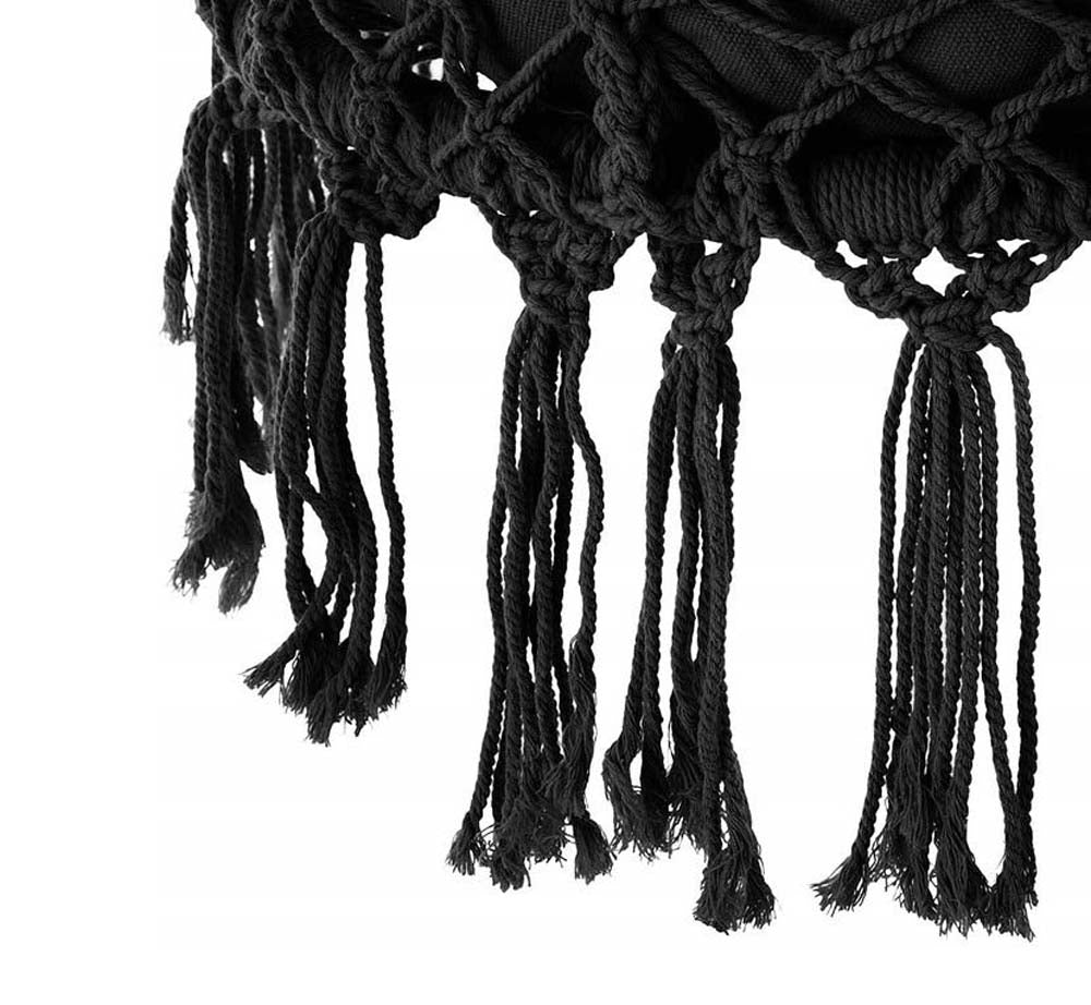 Sedia Sospesa ad Altalena Lavorata a maglia con Corda in Cotone Frange Macrame Con Comodo Cuscino Sfoderabile Amaca per Interni/Esterni, Patio Terrazzi Cortile Giardino Bar Capacità 120 Kg Colore Nero