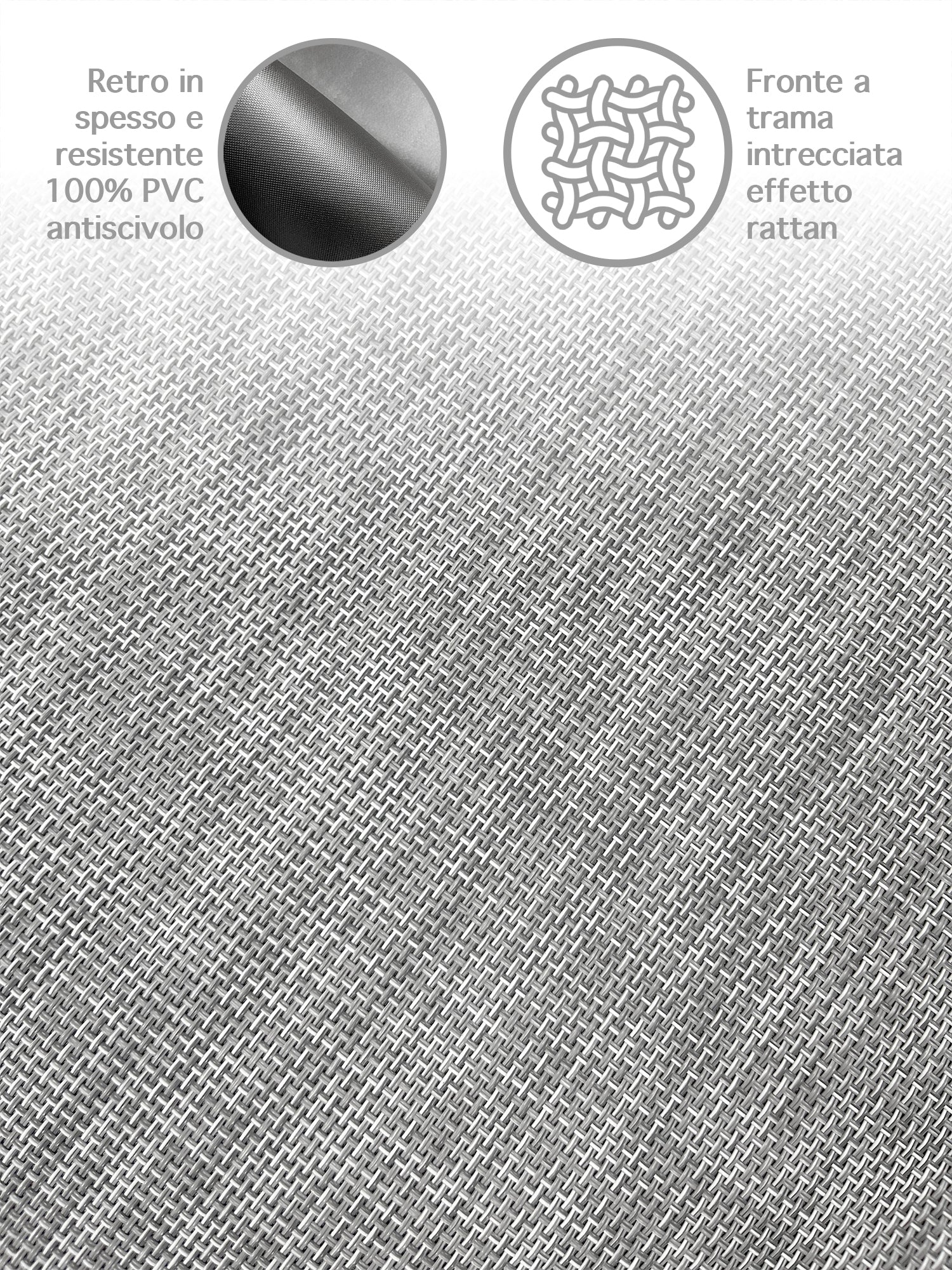 ✔️ ANTIMACCHIA E ANTISCIVOLO: La parte superiore a tinta è realizzata a intreccio un effetto bellissimo alla vista e allo stesso tempo antimacchia. La parte inferiore è realizzata con fondo antiscivolo per migliorare la stabilità a terra - Composizione Fronte 70% Pvc - 30% Poliestere. Retro 100% Pvc