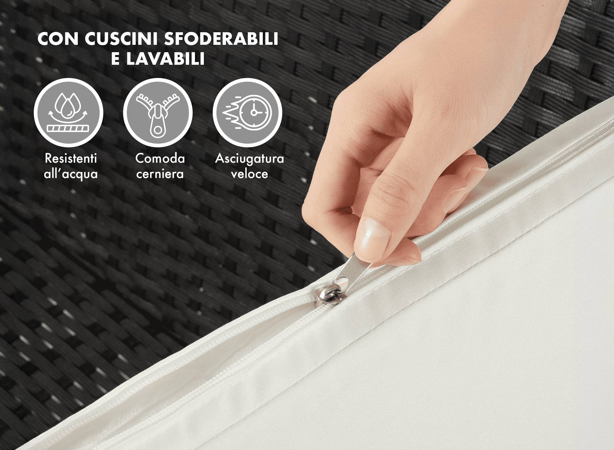 CONFORT E PRATICITA':Le sedute del salottino sono dotate di morbidi cuscini sfoderabili, progettati per offrire un comfort eccezionale. La possibilità di rimuovere le federe per il lavaggio rende la manutenzione semplice e pratica, garantendo che il set rimanga sempre fresco e pulito. Ogni momento trascorso su questo salottino sarà un vero piacere, grazie alla sua attenzione al comfort.