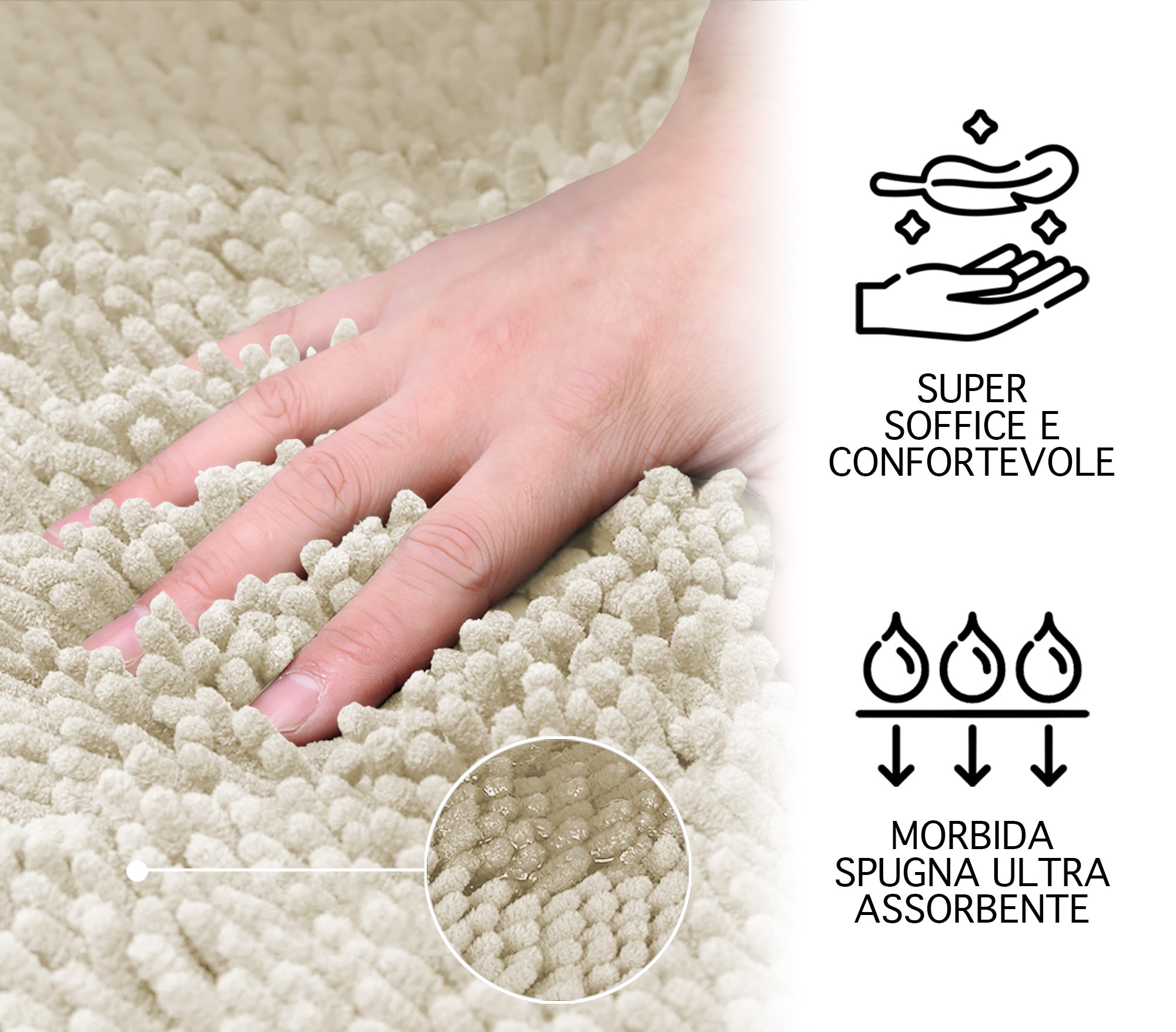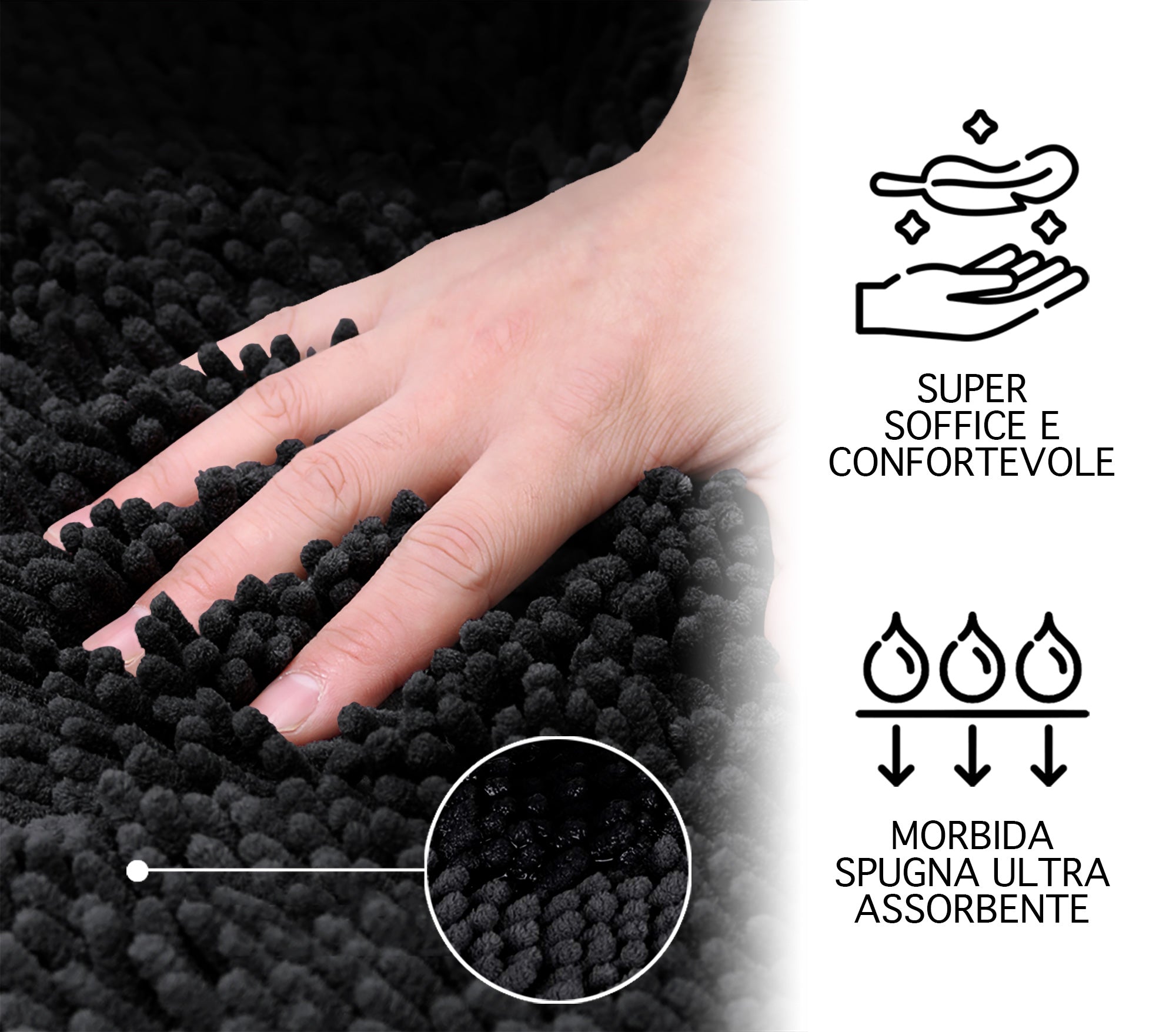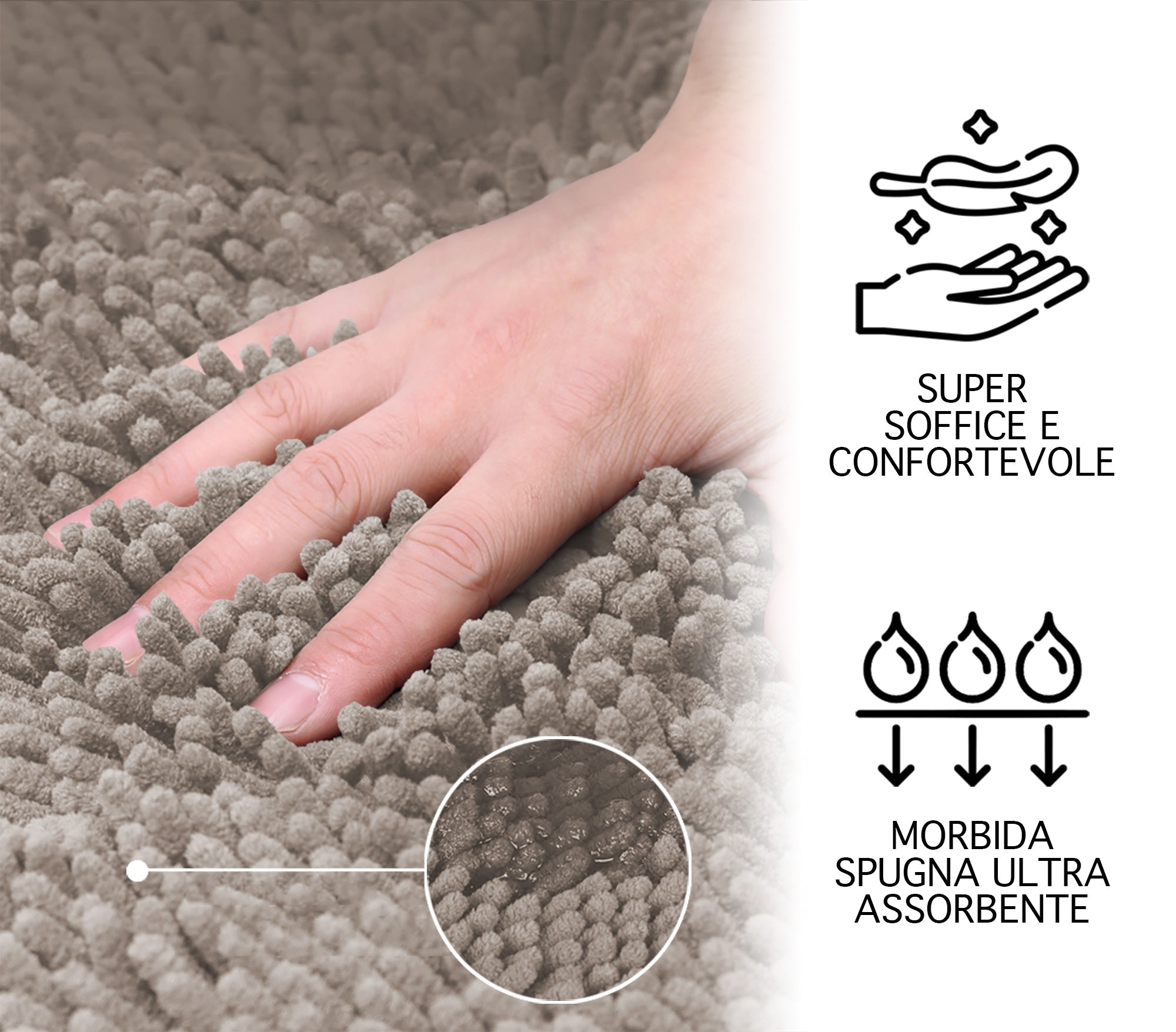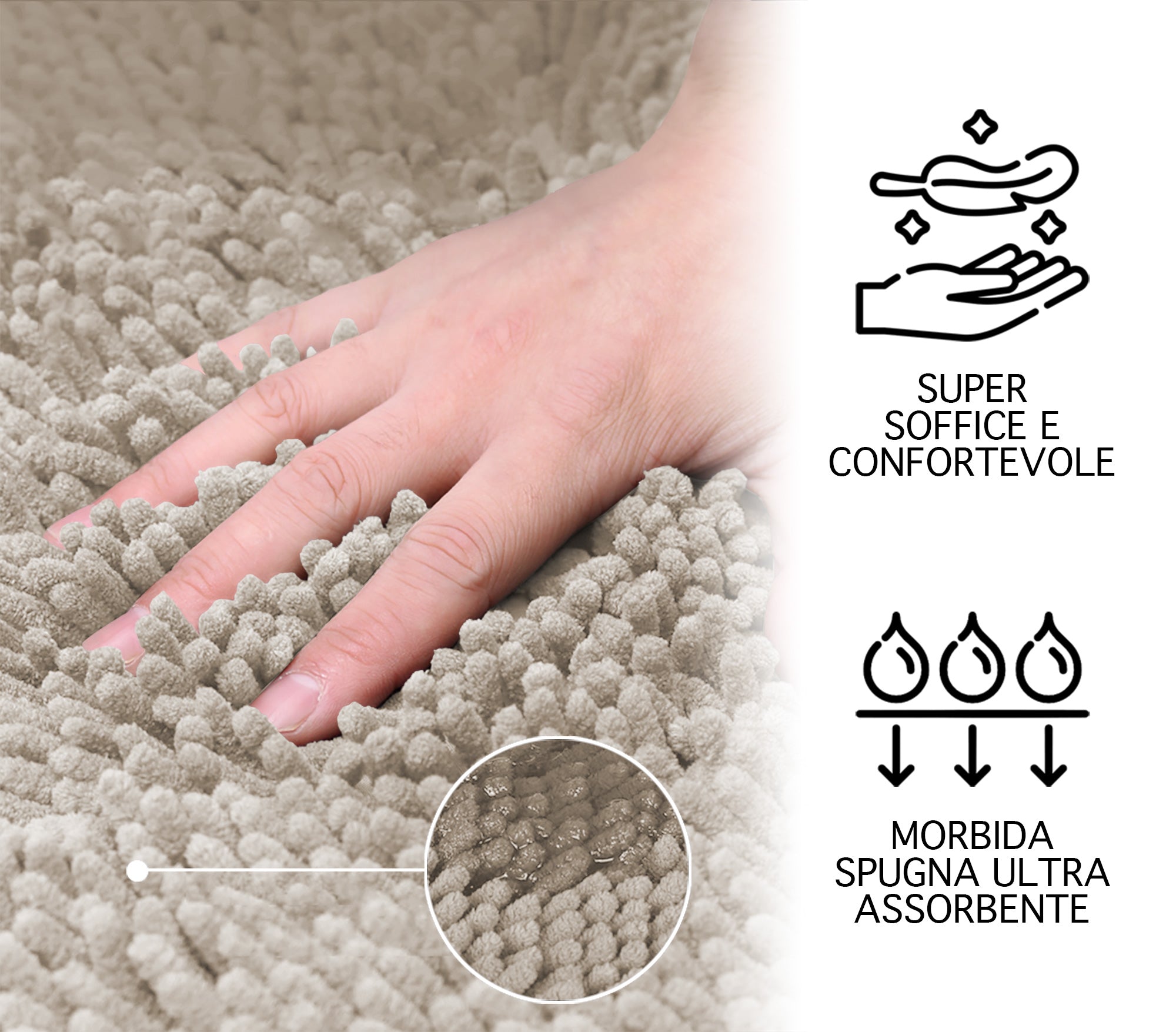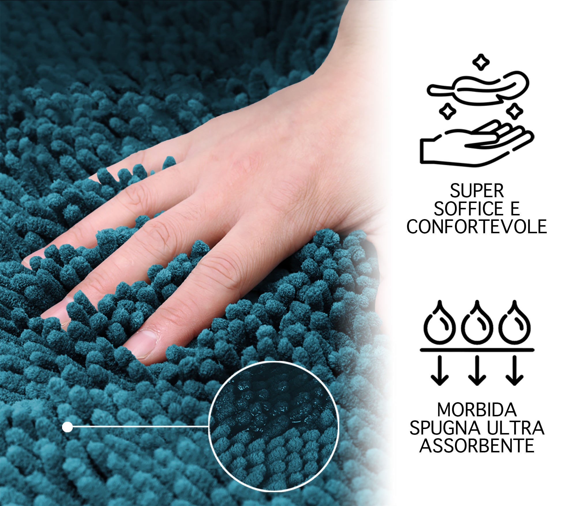 Super Assorbente: Grazie alle speciali fibre e alla loro lavorazione, che assorbono rapidamente l'acqua, protegge i tuoi pavimenti uscendo dalla vasca, dalla doccia o dal lavandino. Le fibre ad asciugatura rapida permettono al tappeto di asciugarsi velocemente evitando la formazione di muffe e spiacevoli odori