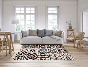 Tappeto Arredo Moderno Sala Cucina Camera in Ciniglia Made in italy il Gruppone Maioliche Nero