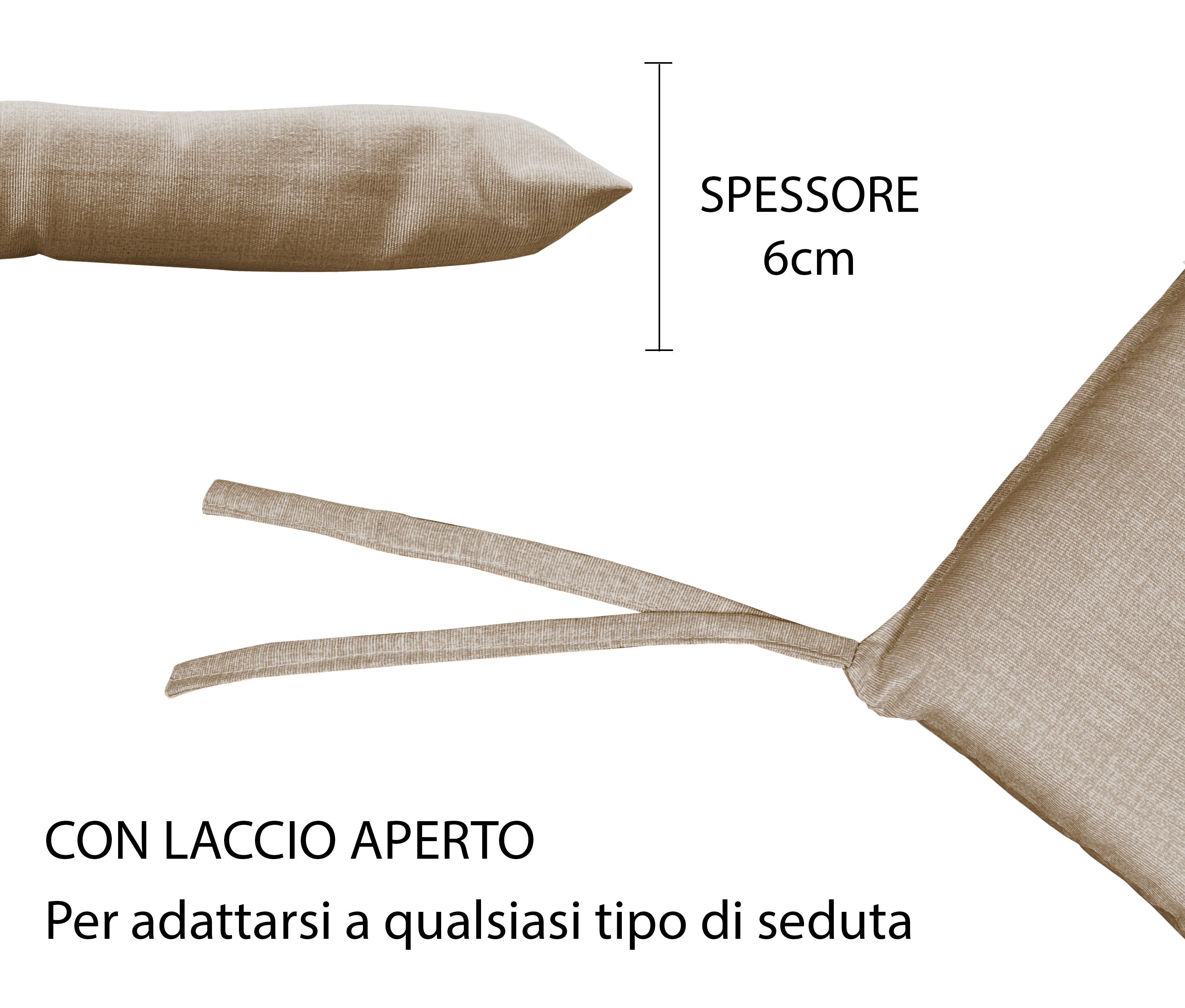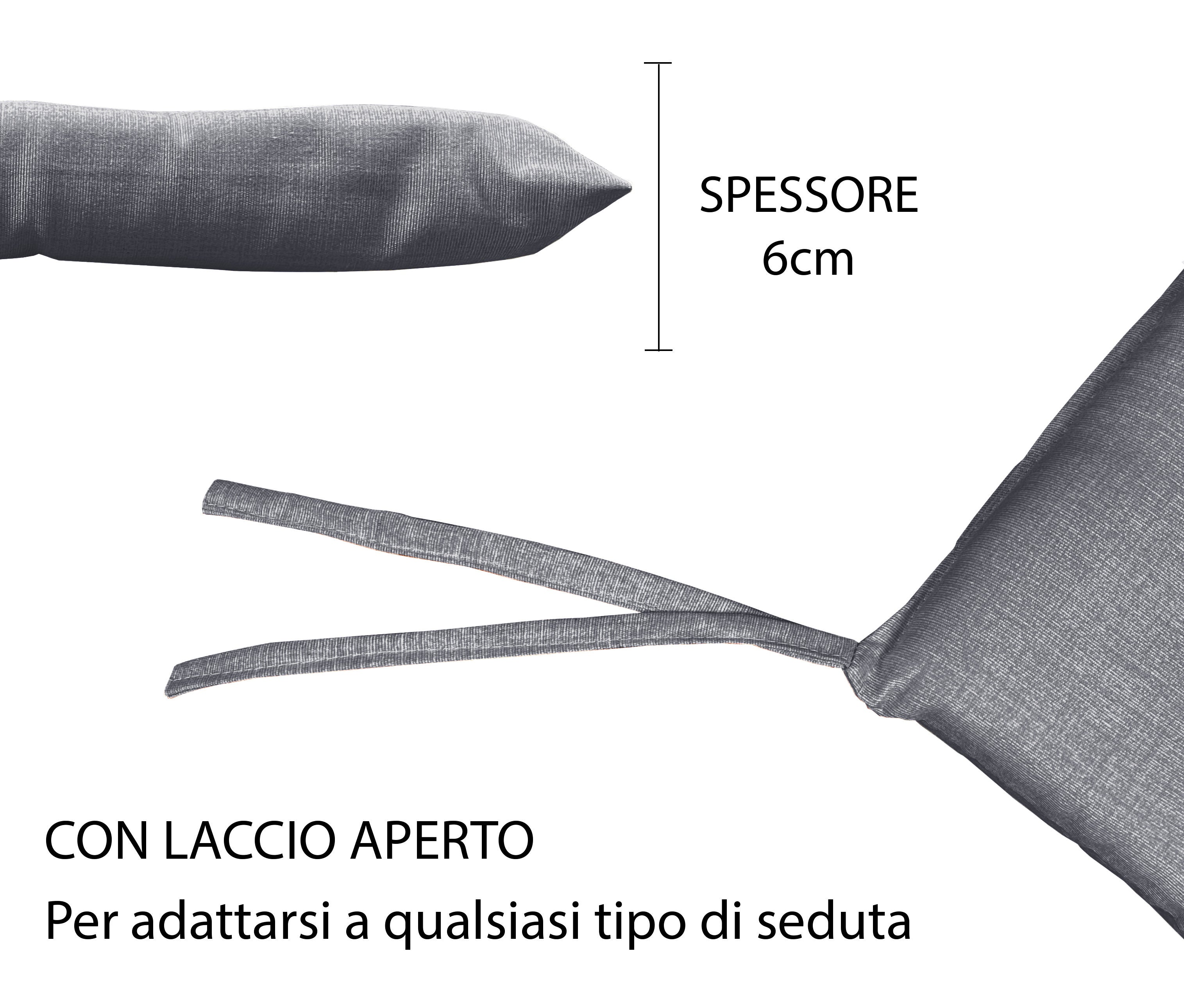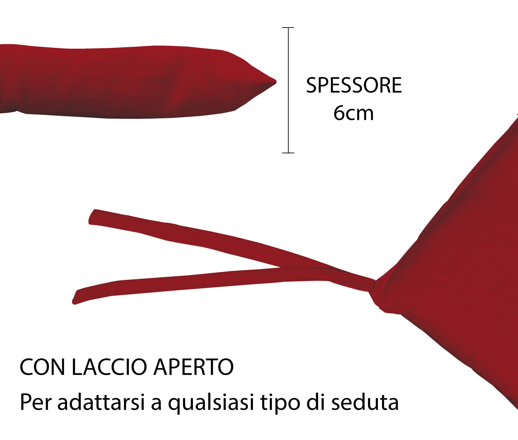 Qualità: Cuscino Extra Comfort grazie al giusto spessore e all'imbottitura di qualità destinata a durare a lungo nel tempo. Misura 40 x 40 cm Altezza 6 cm certificati e realizzati completamente a mano in Italia. Ideali per essere utilizzati sia in ambienti interni che in ambienti esterni antidecubito.