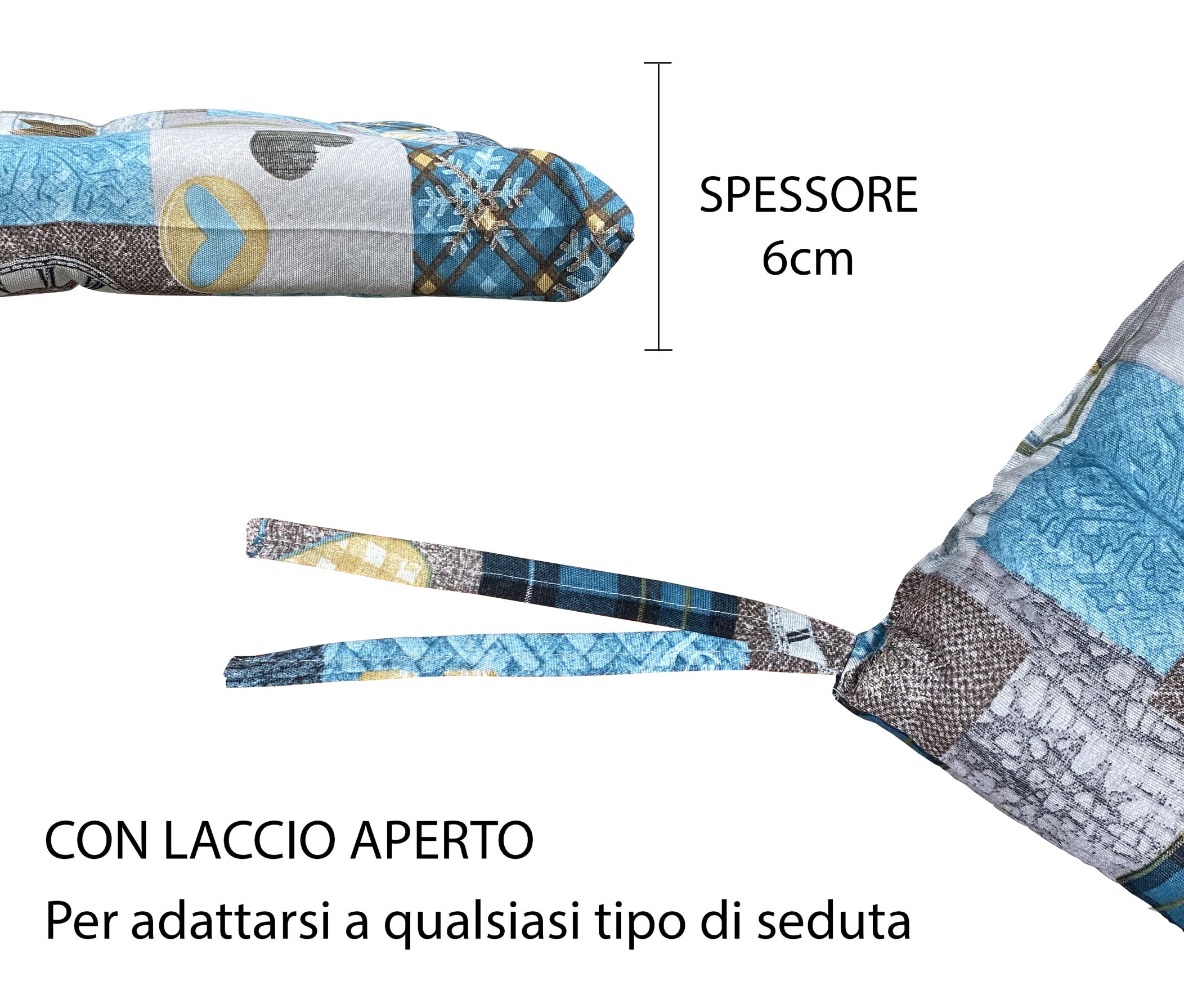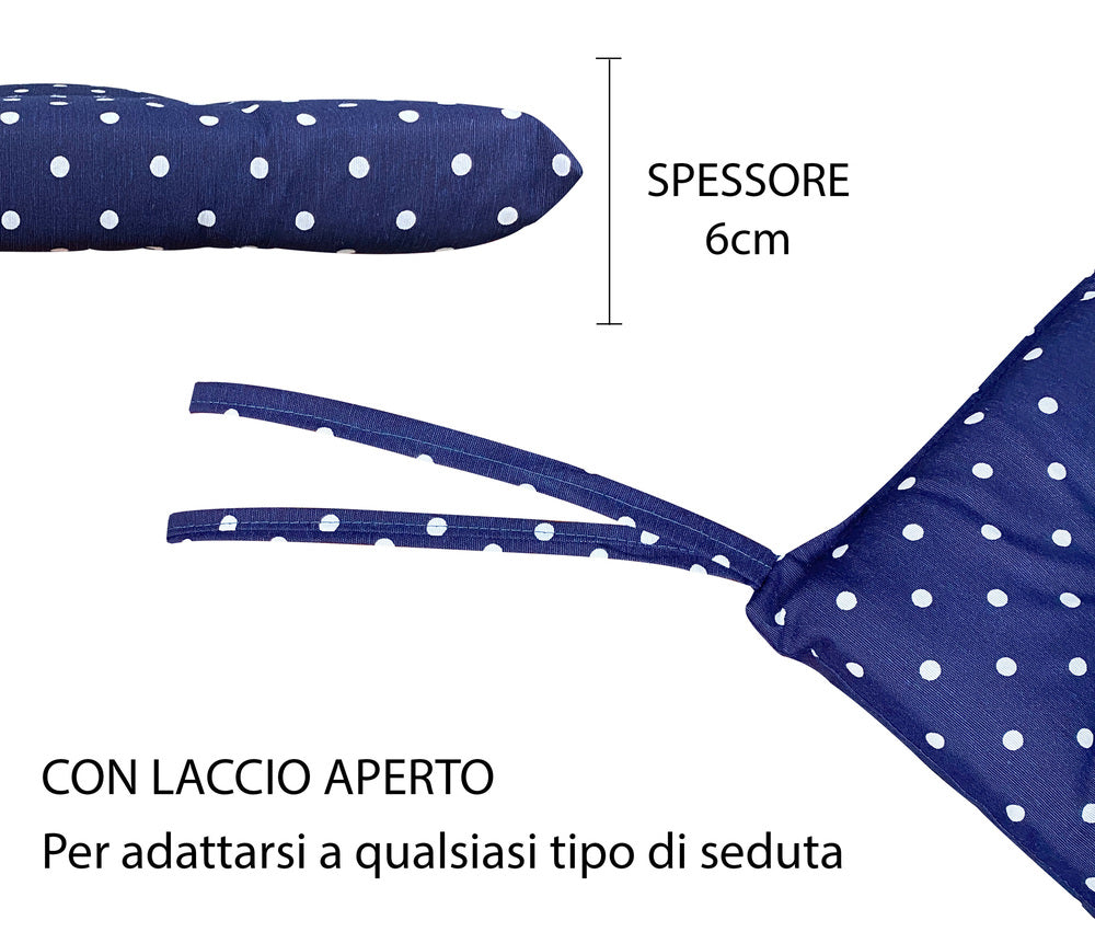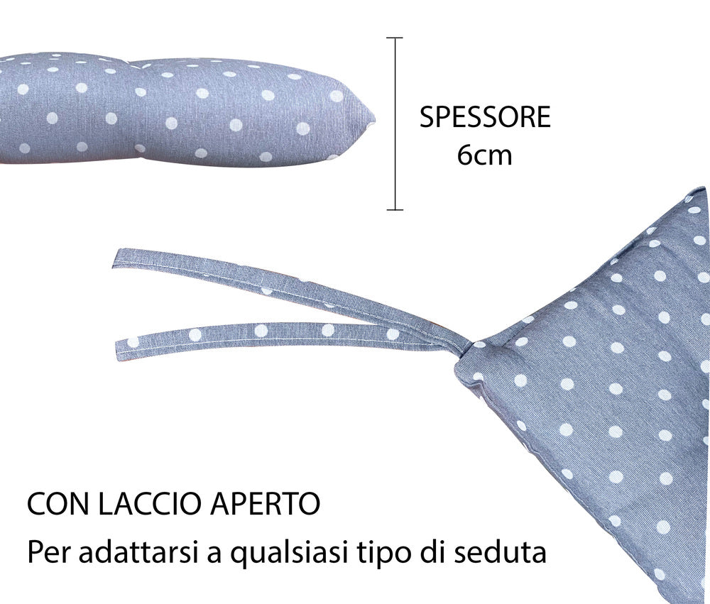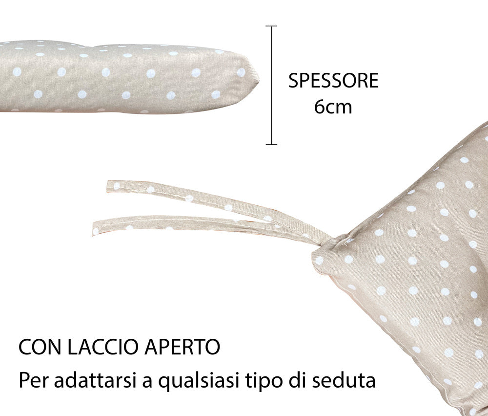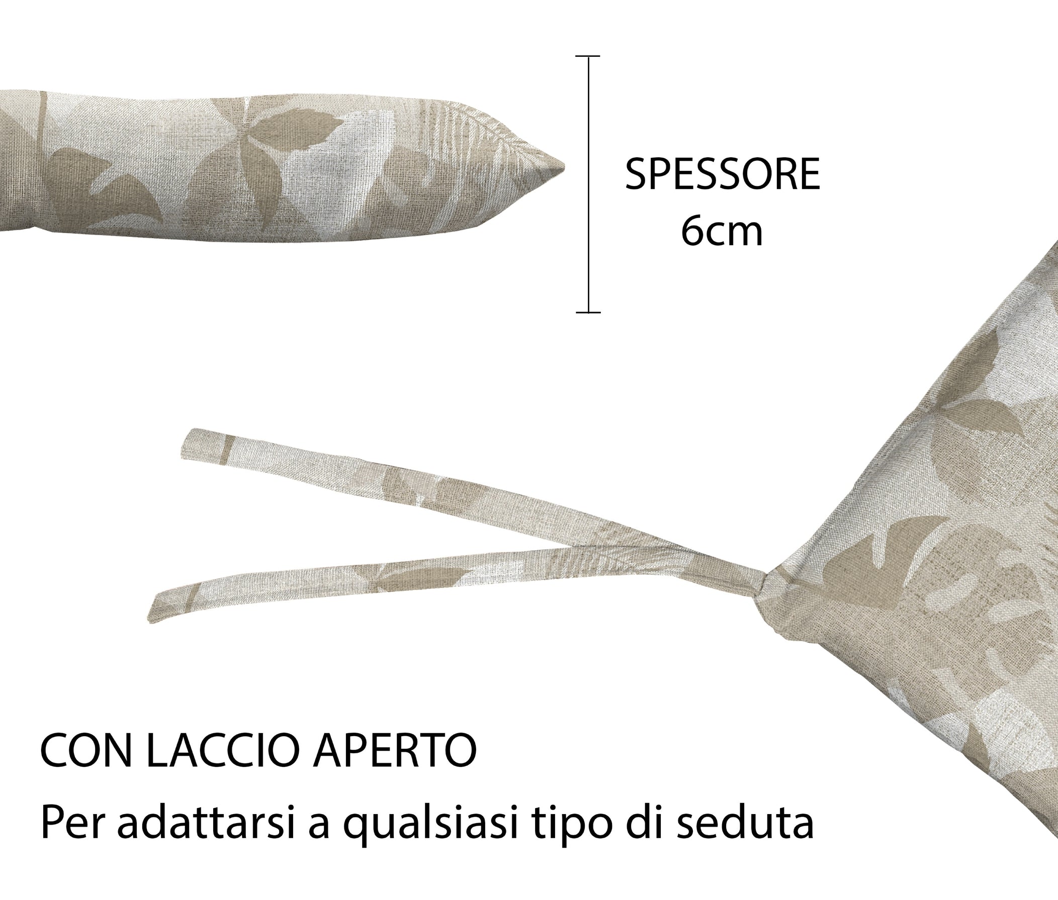 Set Cuscini per Sedia Imbottiti 6 cm con Lacci 4 Punti in Cotone 40x40 Made in Italy Il Gruppone
