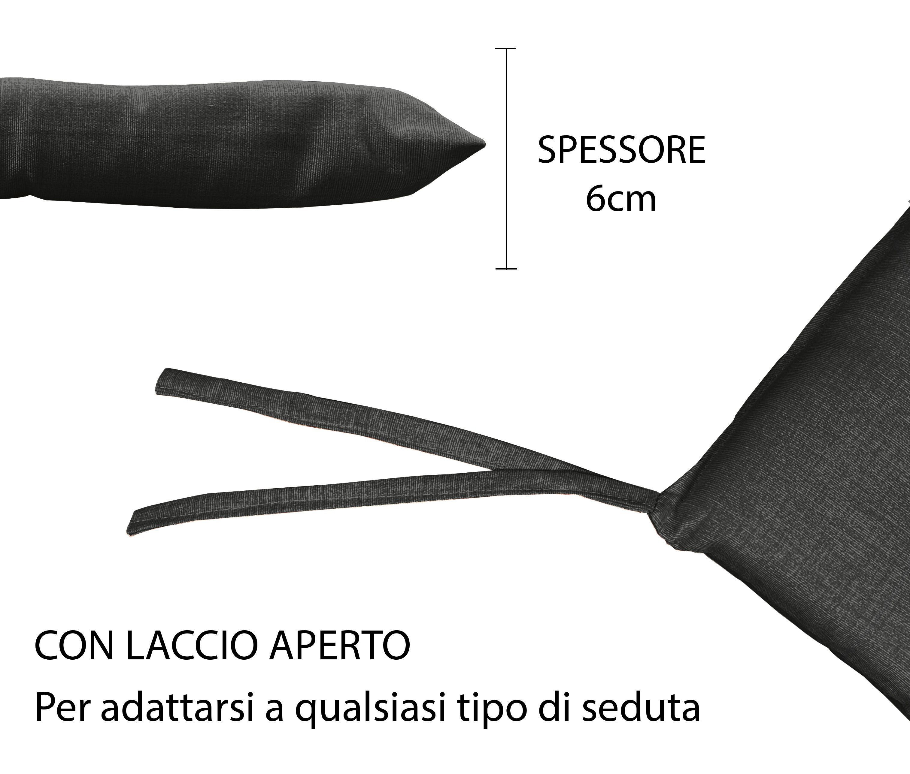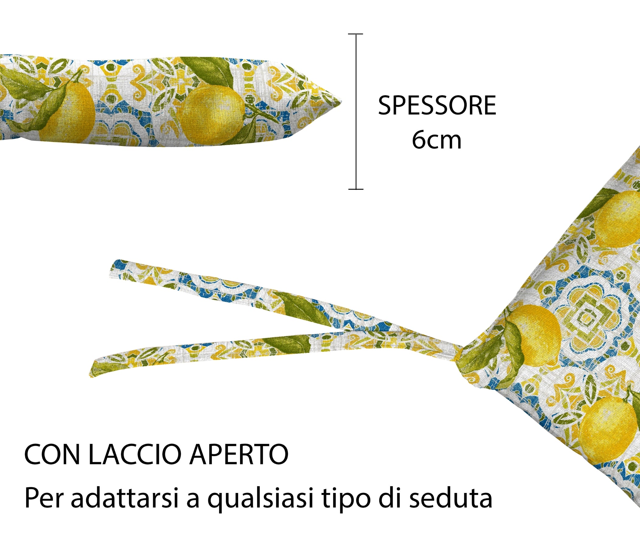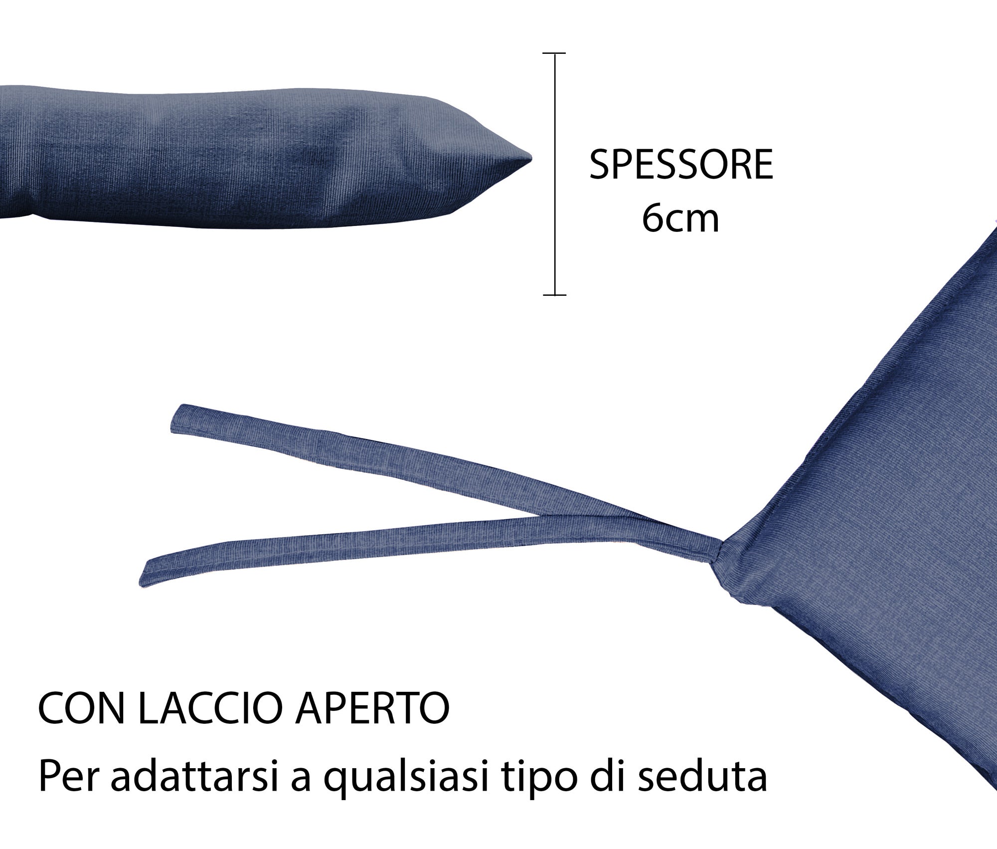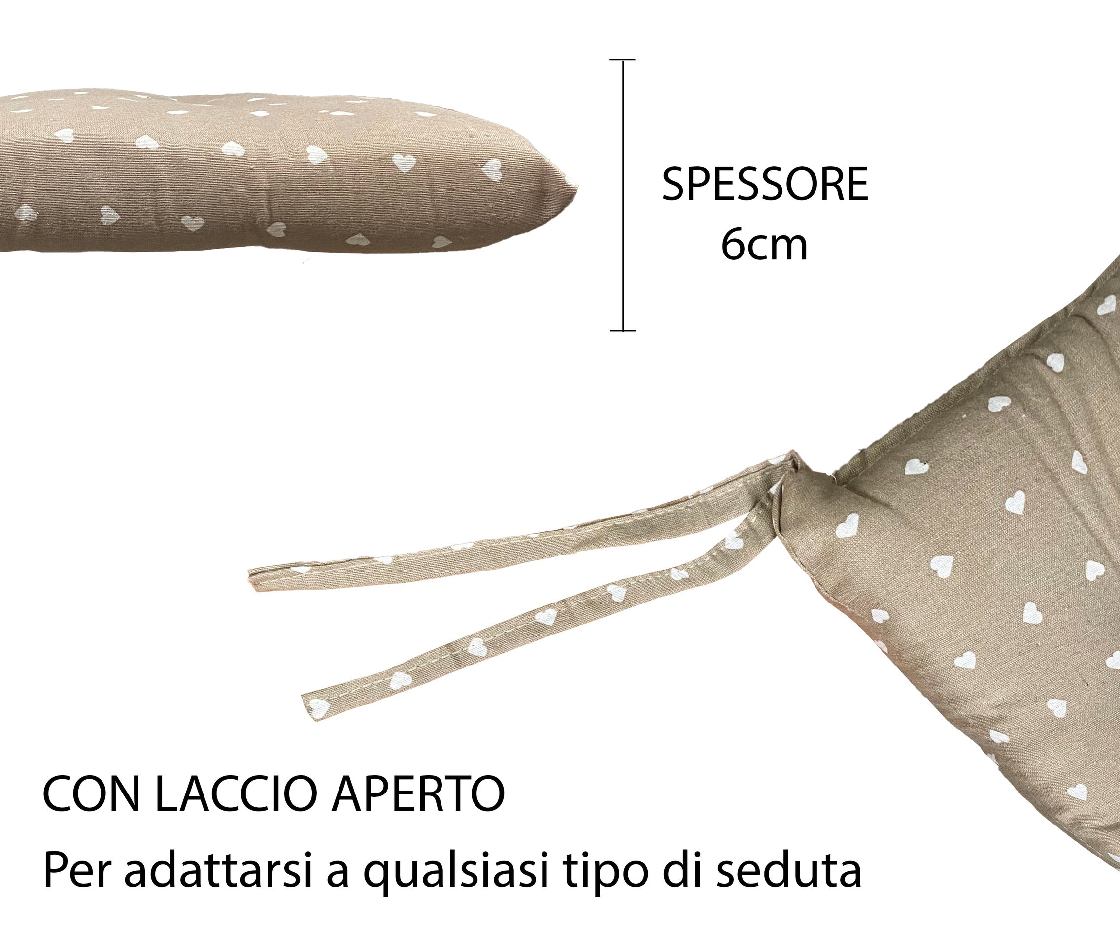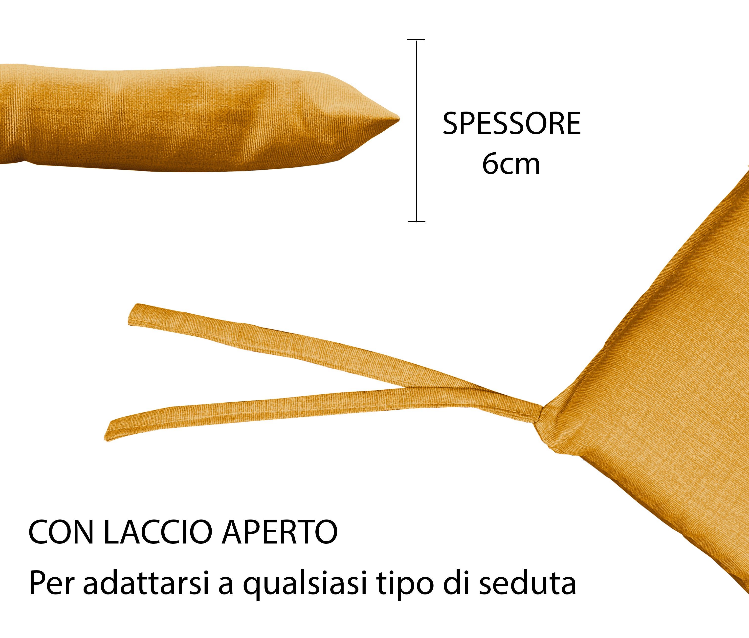 Set Cuscini per Sedia Imbottiti 6 cm con Lacci 4 Punti in Cotone 40x40 Made in Italy Il Gruppone