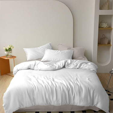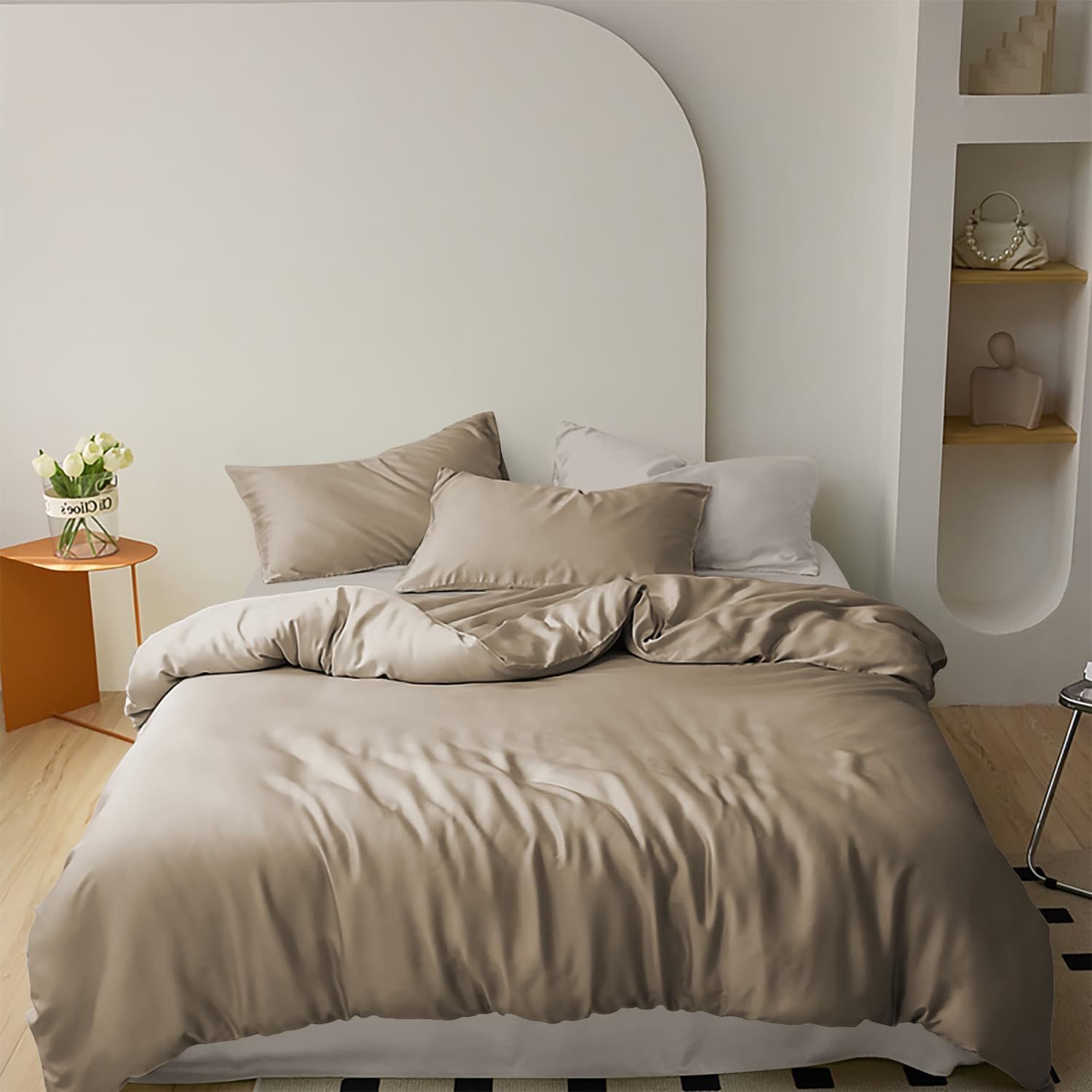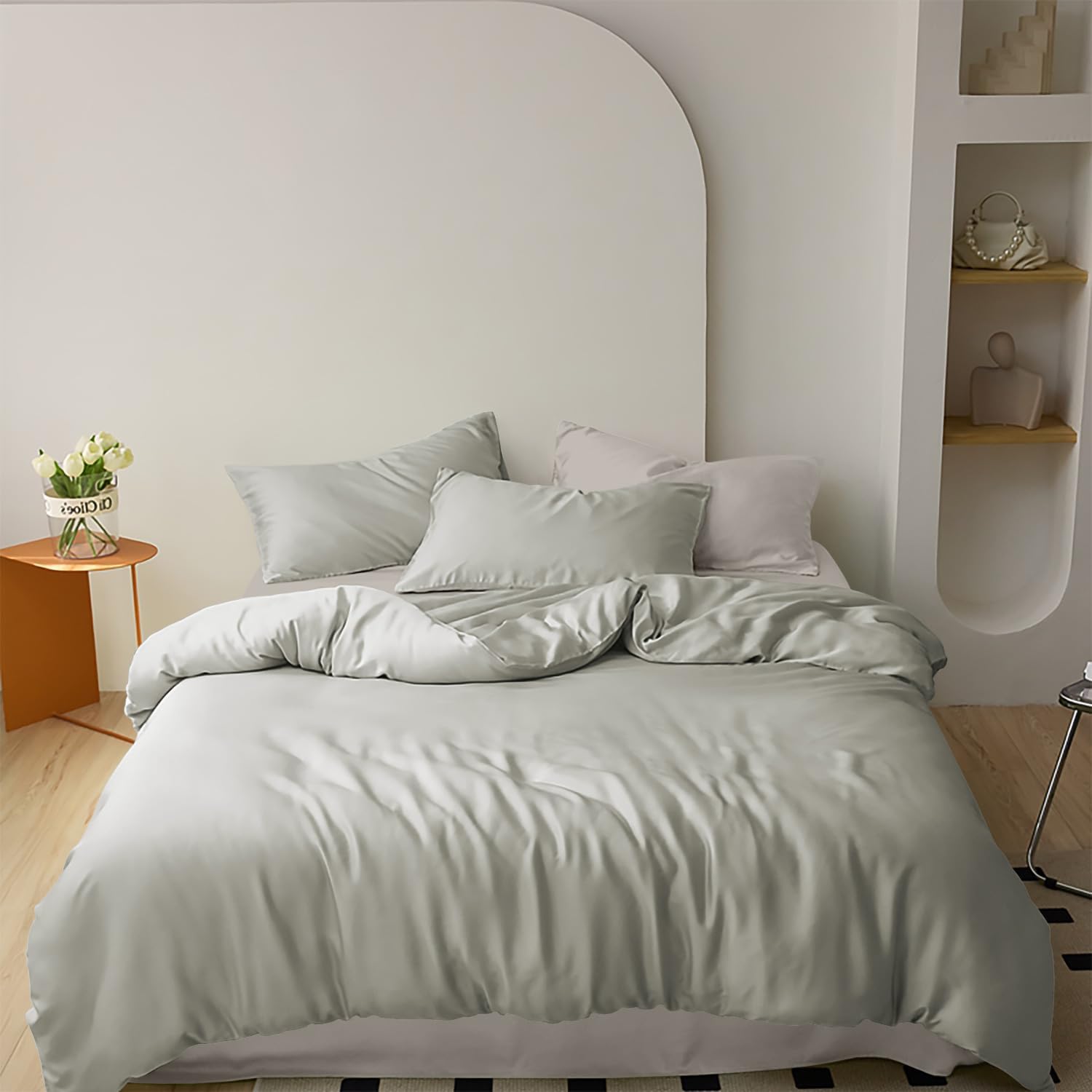 Parure Copripiumino Matrimoniale In Raso Di Cotone Lucido Tinta Unita Sacco E Federe Lussuoso Elegante
