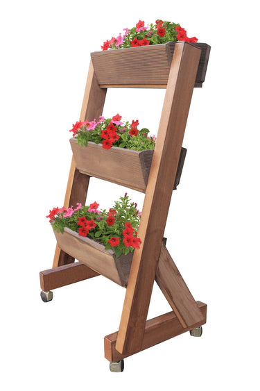 Fioriera a tre vasi portafiori con ruote Made in italy in WPC da balcone, terrazzi o ambienti esterni