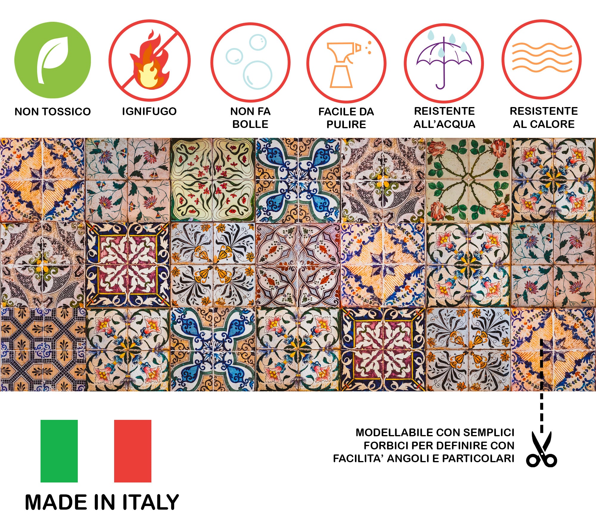 ✔️Qualità: Spessore 1.00 Millimetri adatto per tutte le superfici anche ruvide o con piastrelle rovinate, Interamente progettati e realizzati in Italia studiati per decorare muri, ideale per proteggere le pareti estremamente resistenti al calore e all'usura con elevata resistenza all'urto, all'impatto ed antigraffio.