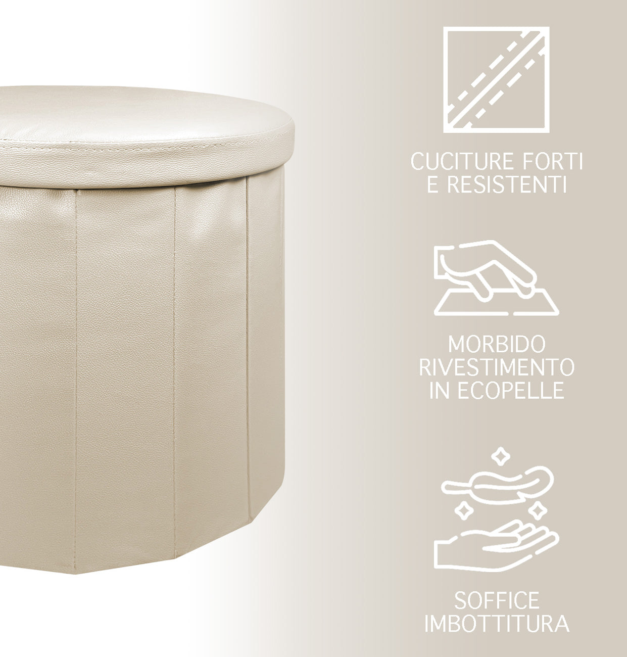 Unico: Con il suo rivestimento Ecopelle questo pouf quadrato è un oggetto pratico e decorativo a tutti gli effetti Interamente realizzato selezionando materiali di qualità in morbido tessuto che dona una piacevole luminosità all'ambiente.