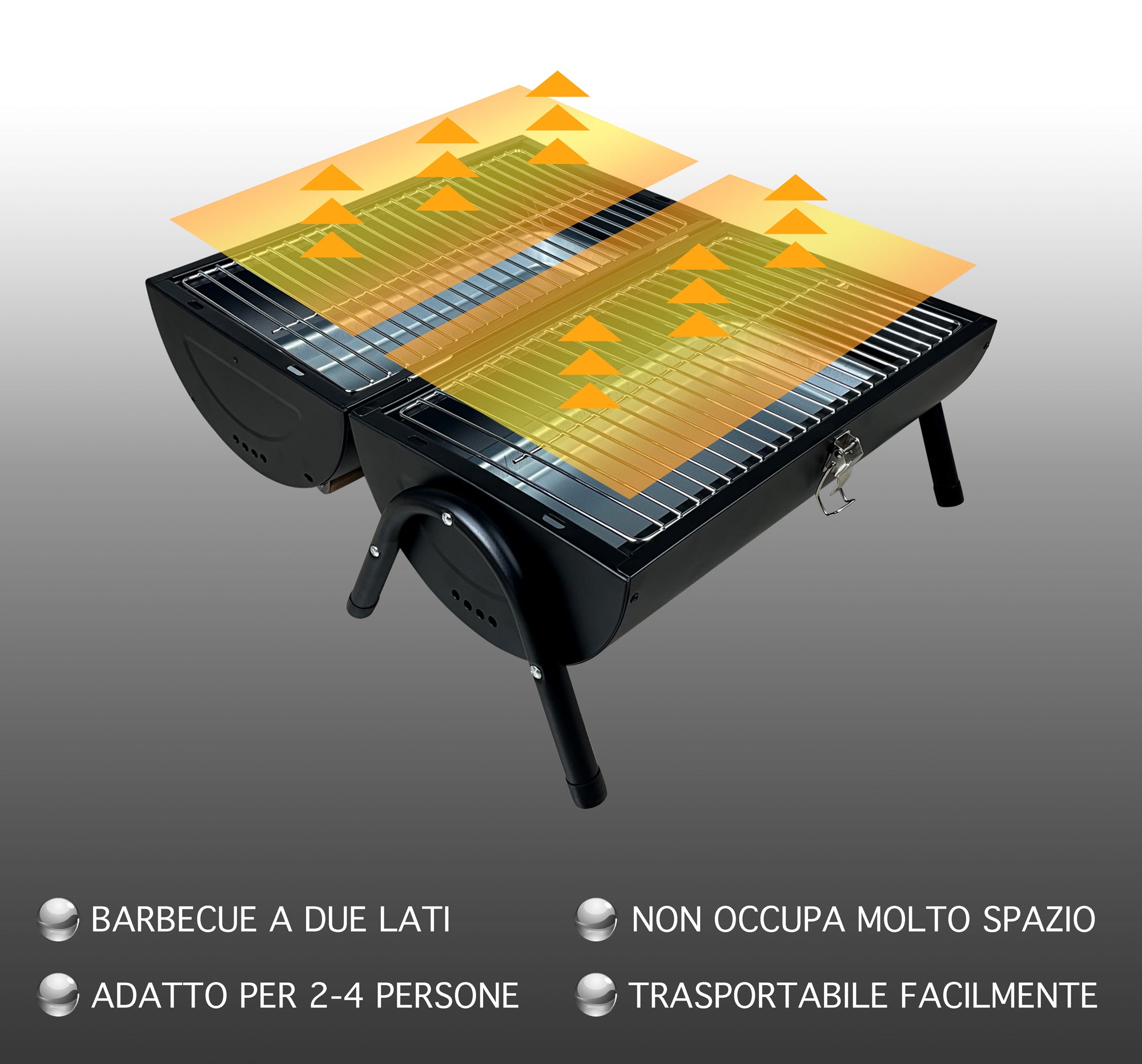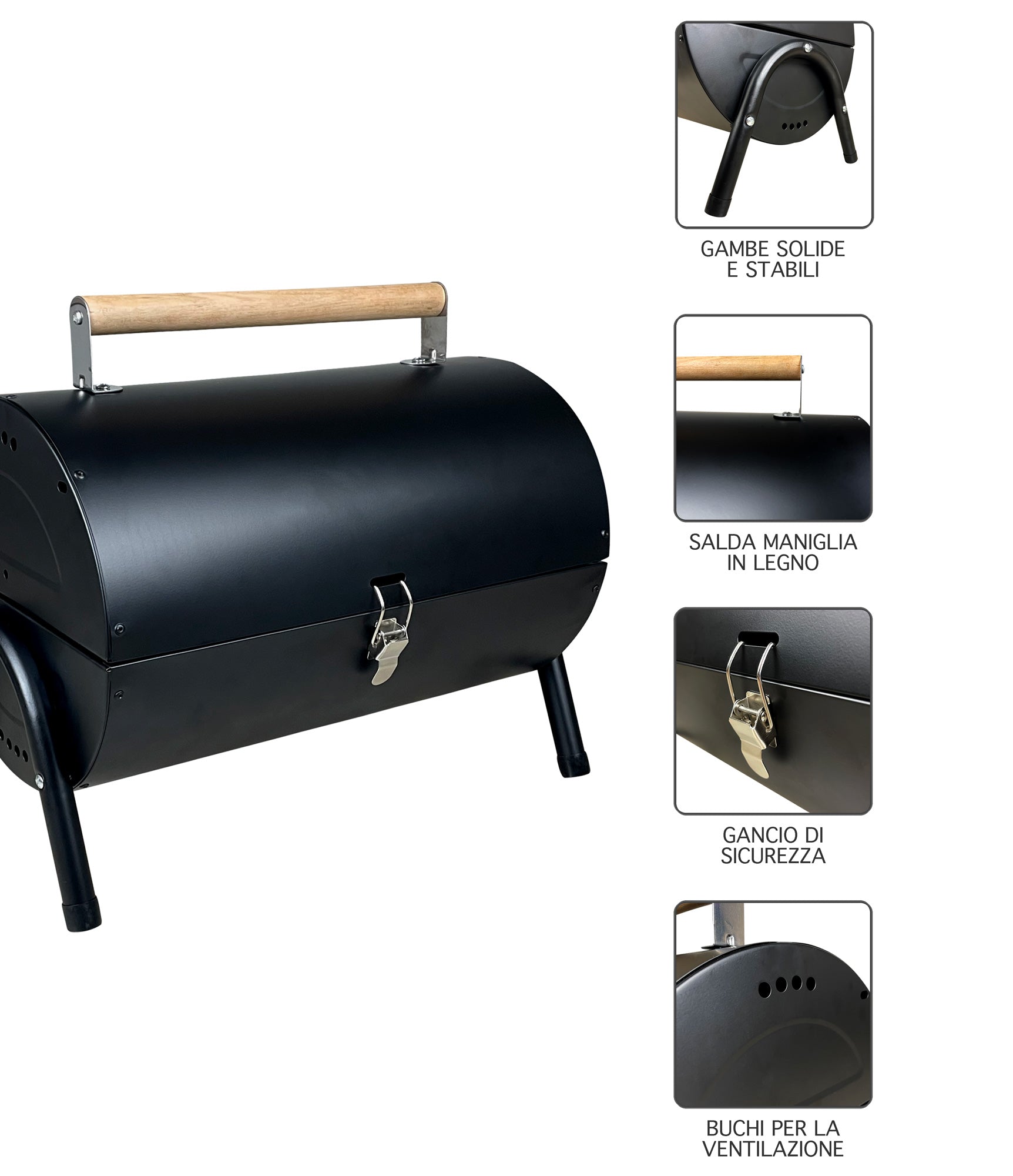 Griglia Cilindro Da Tavolo Bbq In Acciaio Inox Barbeque Da Viaggio Portatile Colore Nero Carbonella Trasportabile PicNic Campeggio