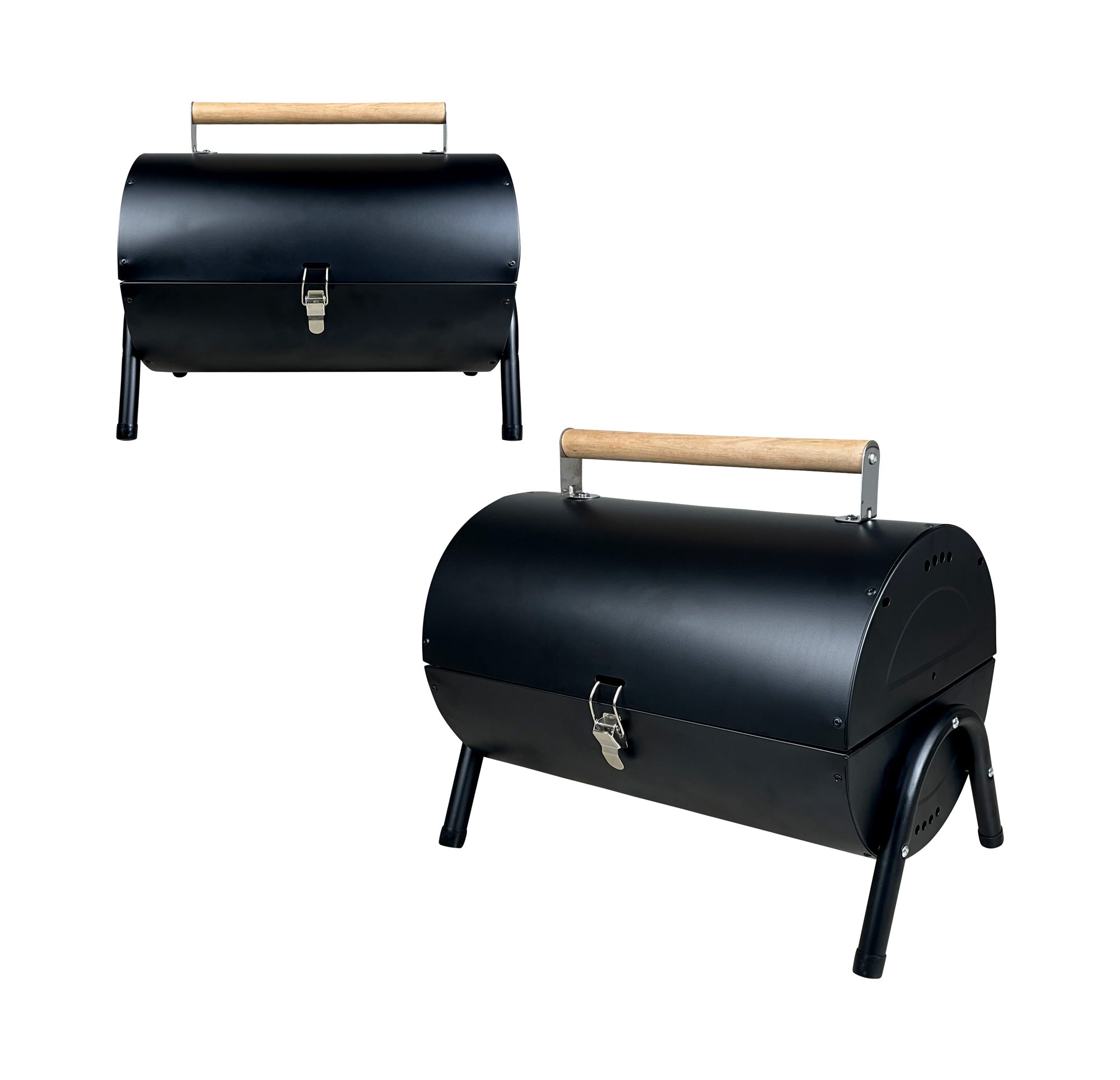 ✔️Trasportabile: Ideale per gite e PicNic serratura in acciaio inox e di un robusto manico in legno, che lo rendono facile da spostare quando non è in uso, Dimensioni della griglia a cilindro: 38 x 24,5 cm Dimensioni complessive: 41 x 26 x 36 cm