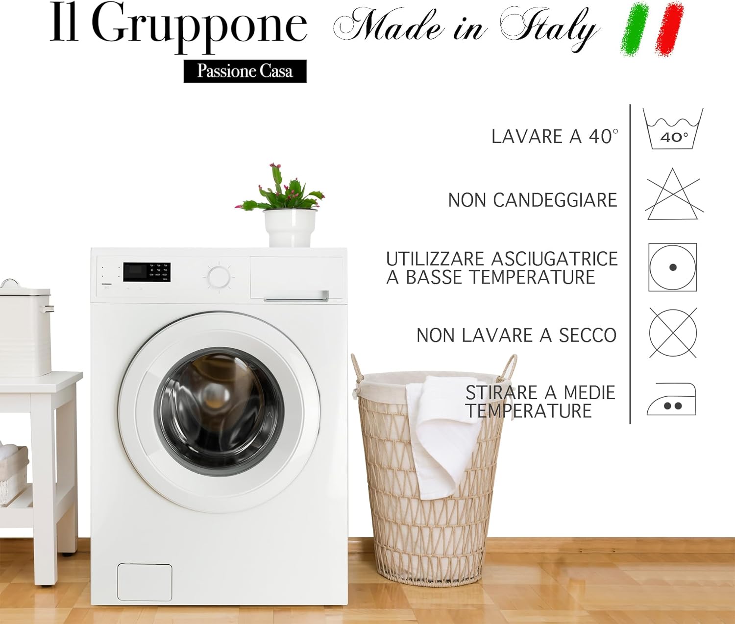 I materiali utilizzati sono di alta qualità e la trama non permette nessun tipo di trasparenza. Il trattamento in superficie impedisce alle macchie di penetrare e sporcare il tessuto in maniera indelebile. Le tovaglie sono comode e pratiche, lavabili interamente in lavatrice seguendo le istruzioni riportate in etichetta.
