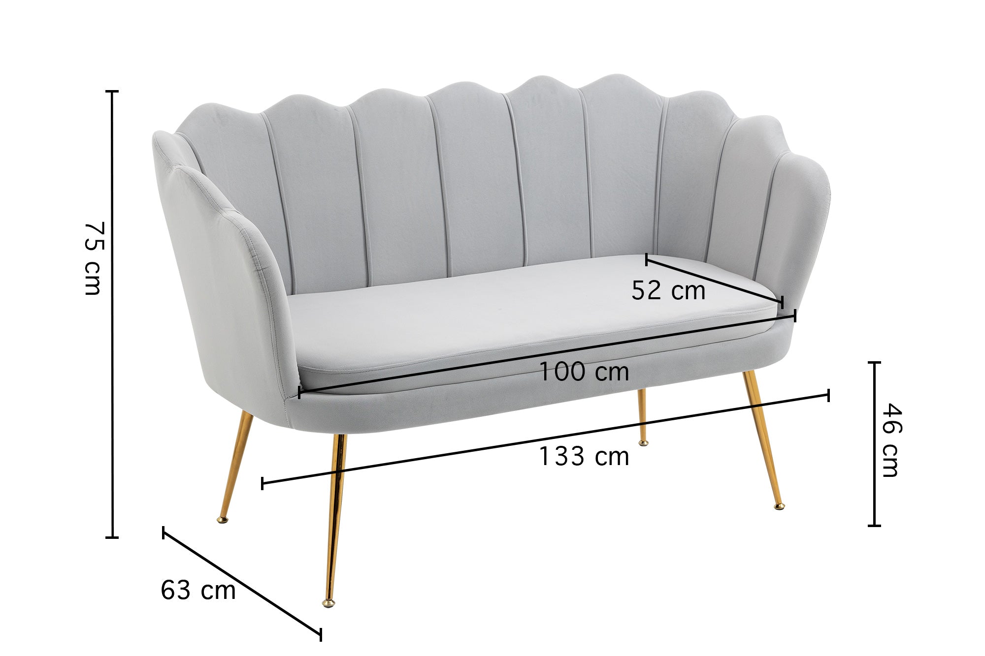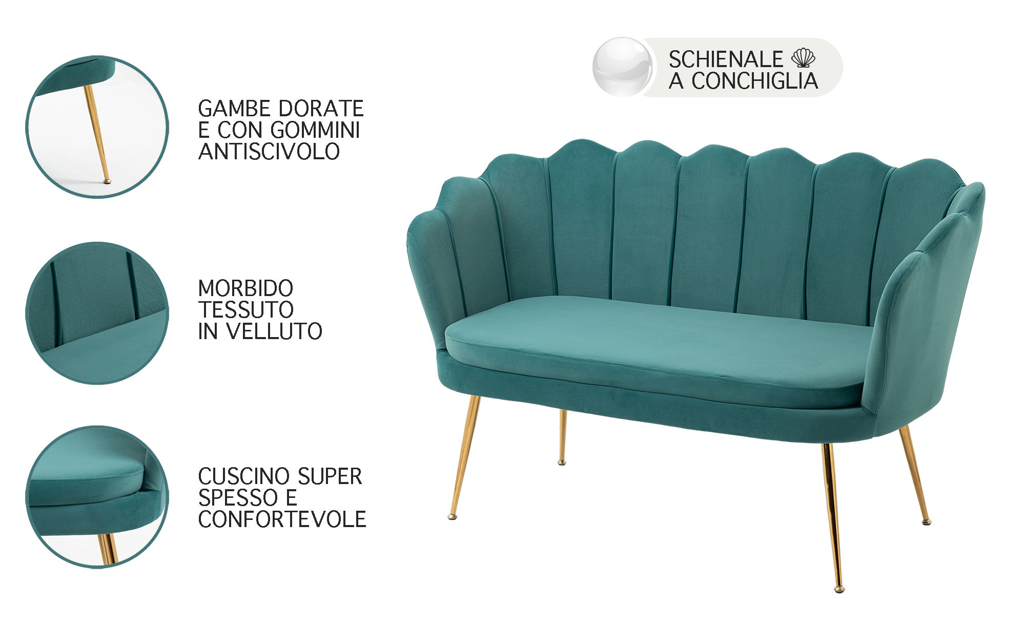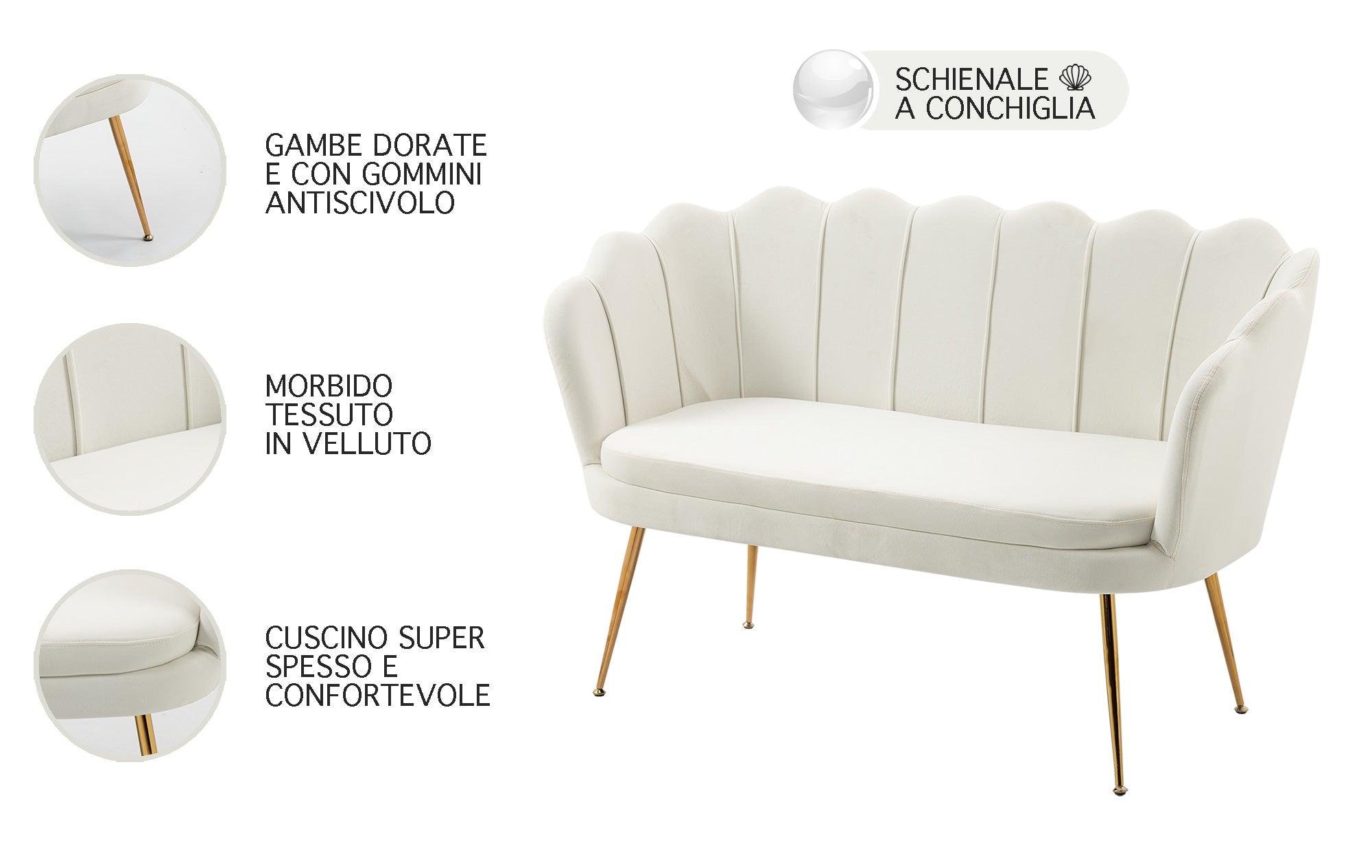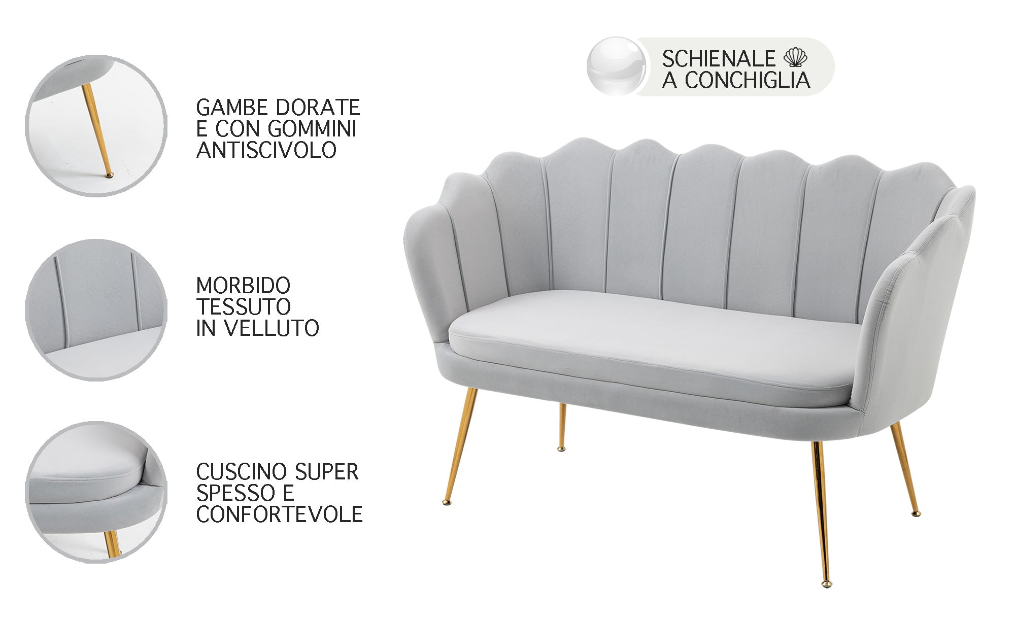 Divano Due 2 Posti In Velluto Forma Conchiglia Gambe In Metallo 133x63x75 Cm Camera Soggiorno Ufficio