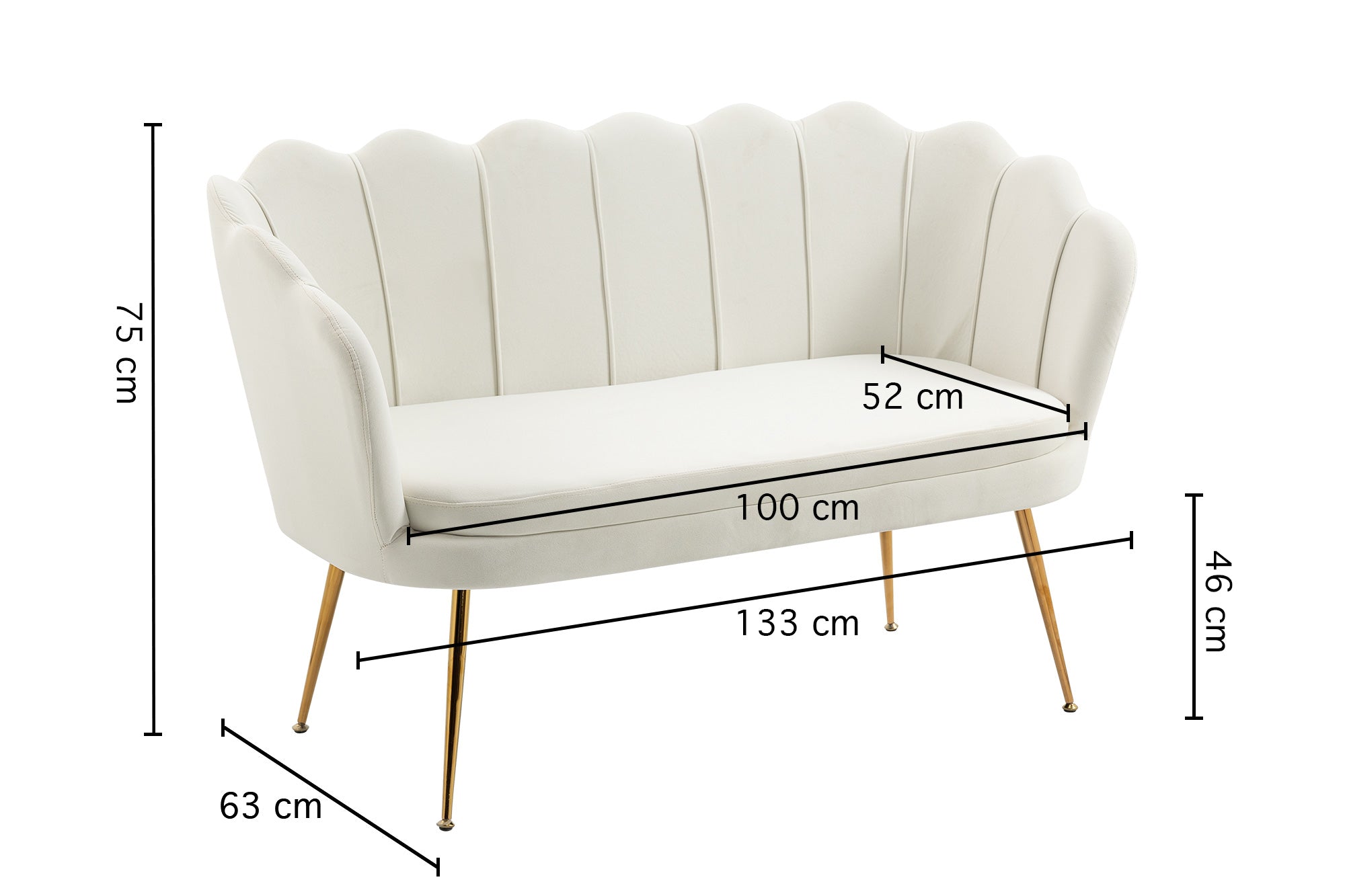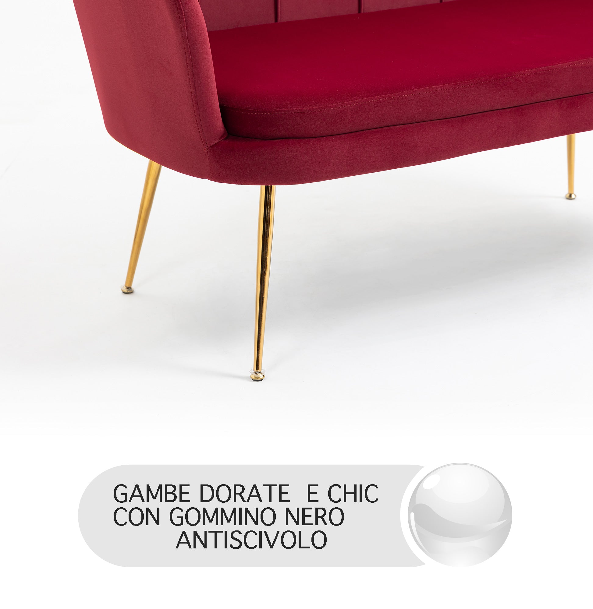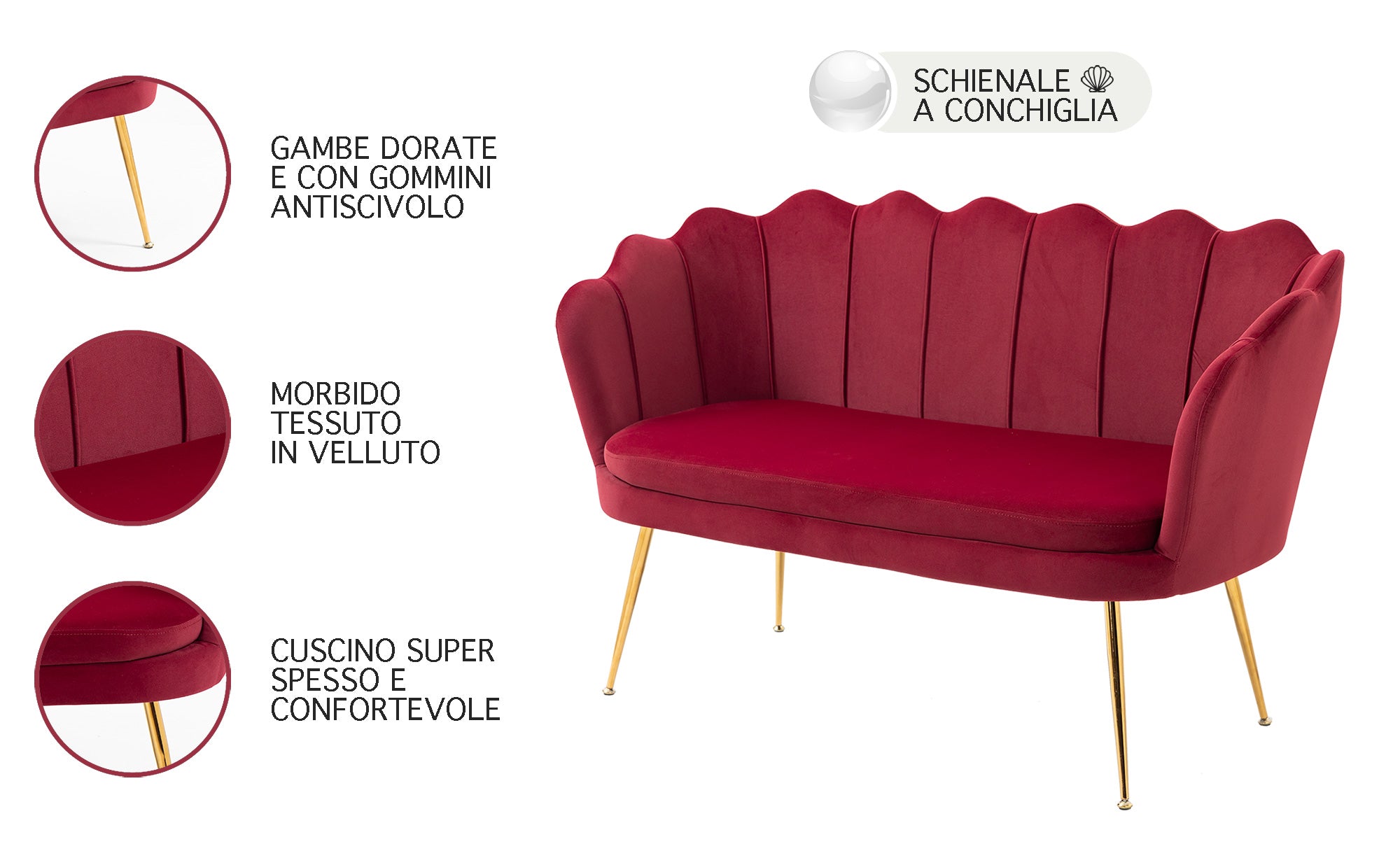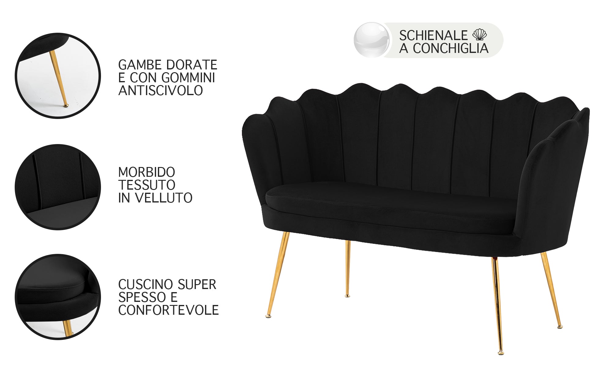 Divano Due 2 Posti In Velluto Forma Conchiglia Gambe In Metallo 133x63x75 Cm Camera Soggiorno Ufficio