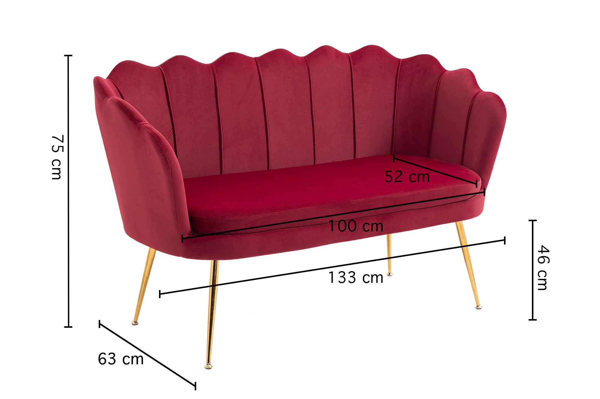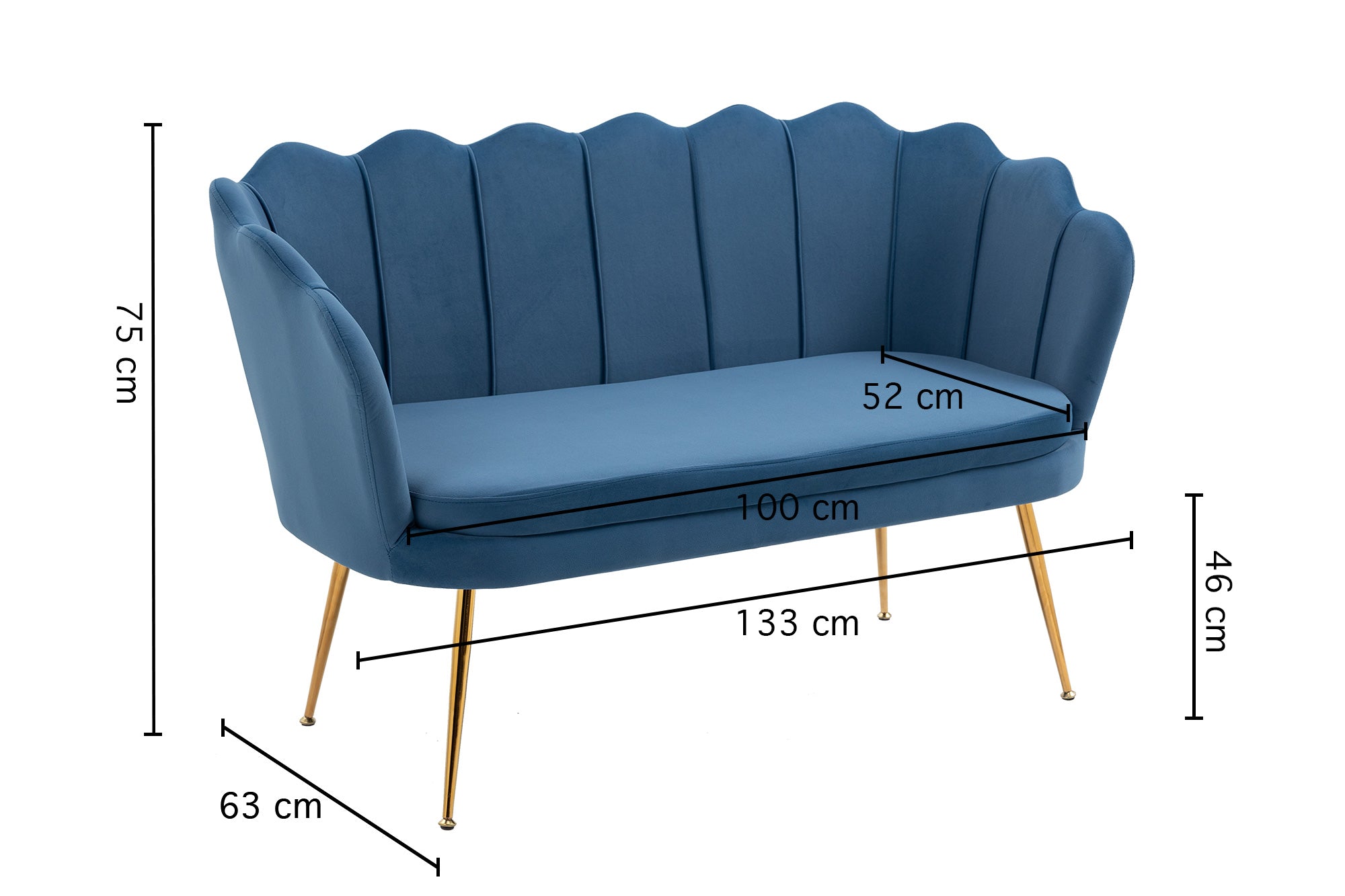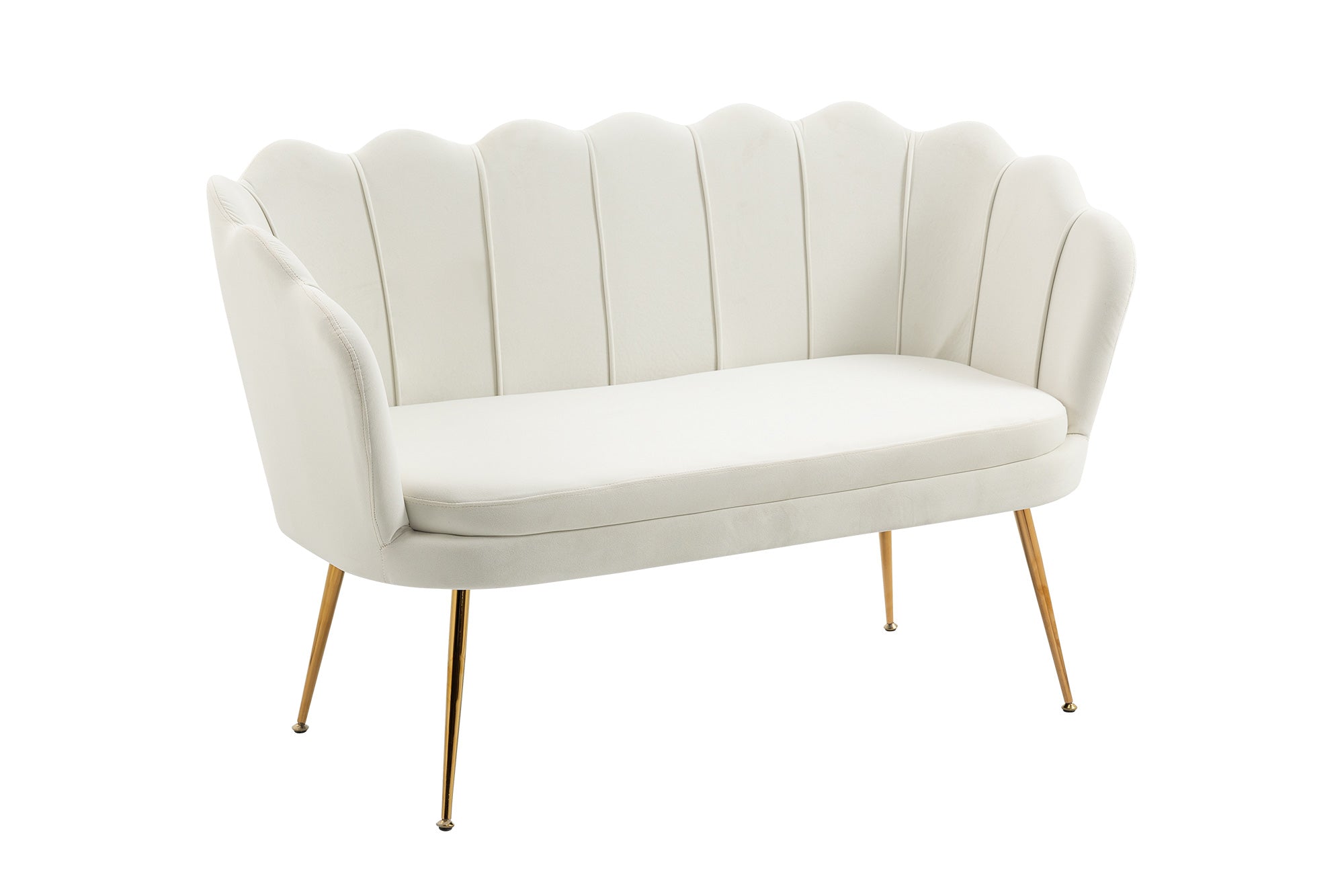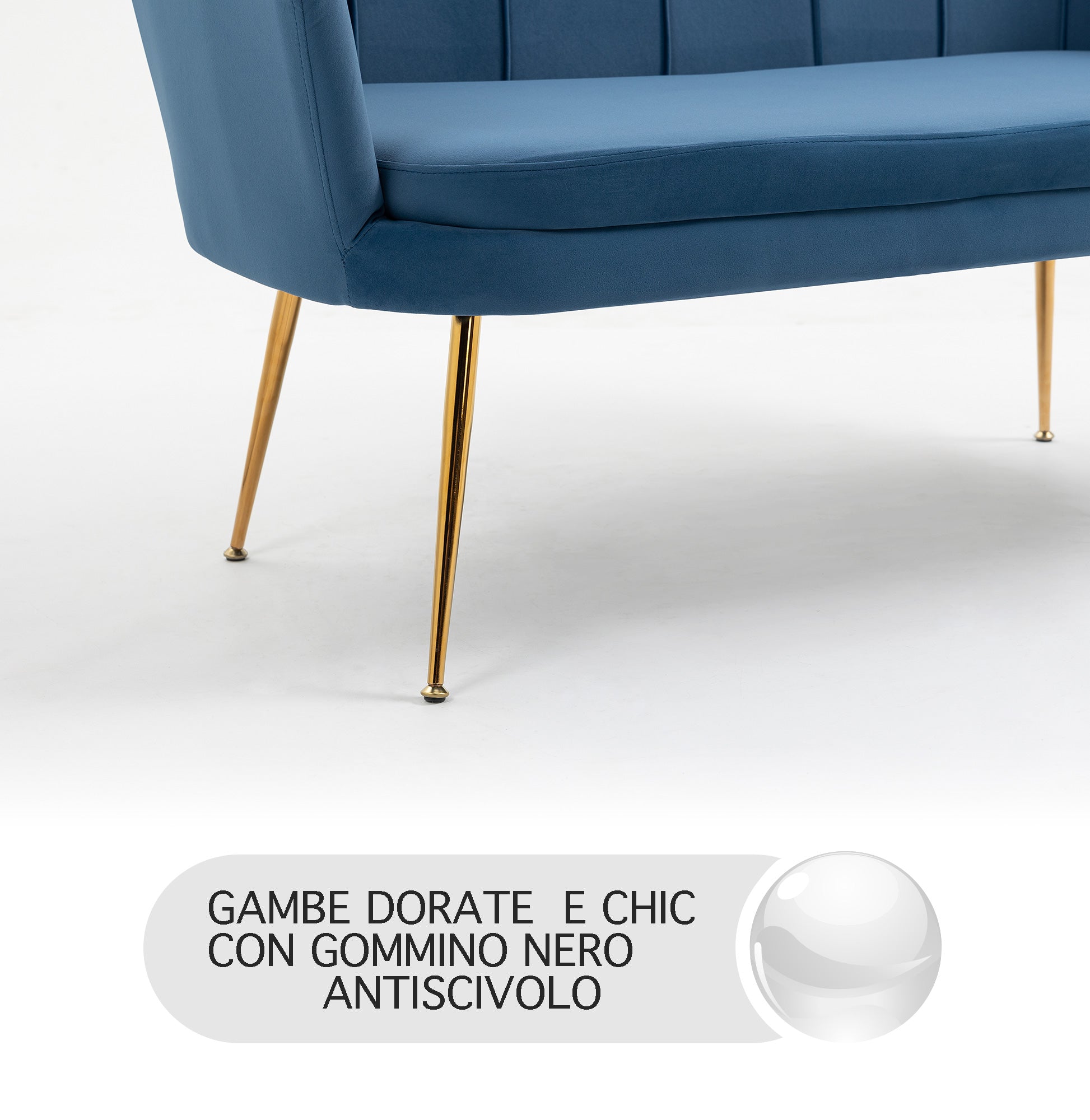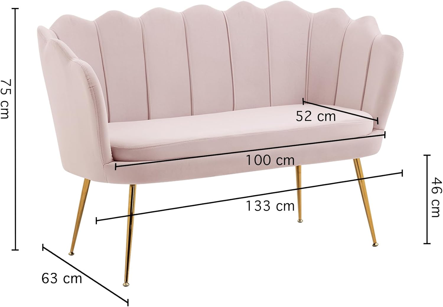 Divano Due 2 Posti In Velluto Forma Conchiglia Gambe In Metallo 133x63x75 Cm Camera Soggiorno Ufficio