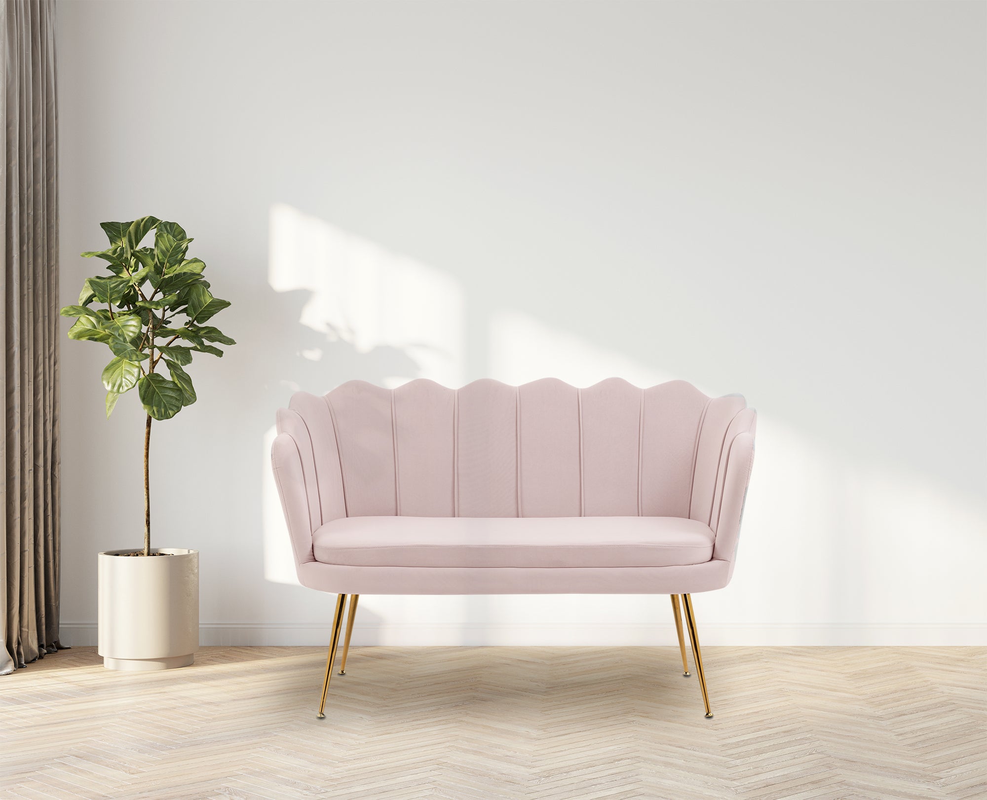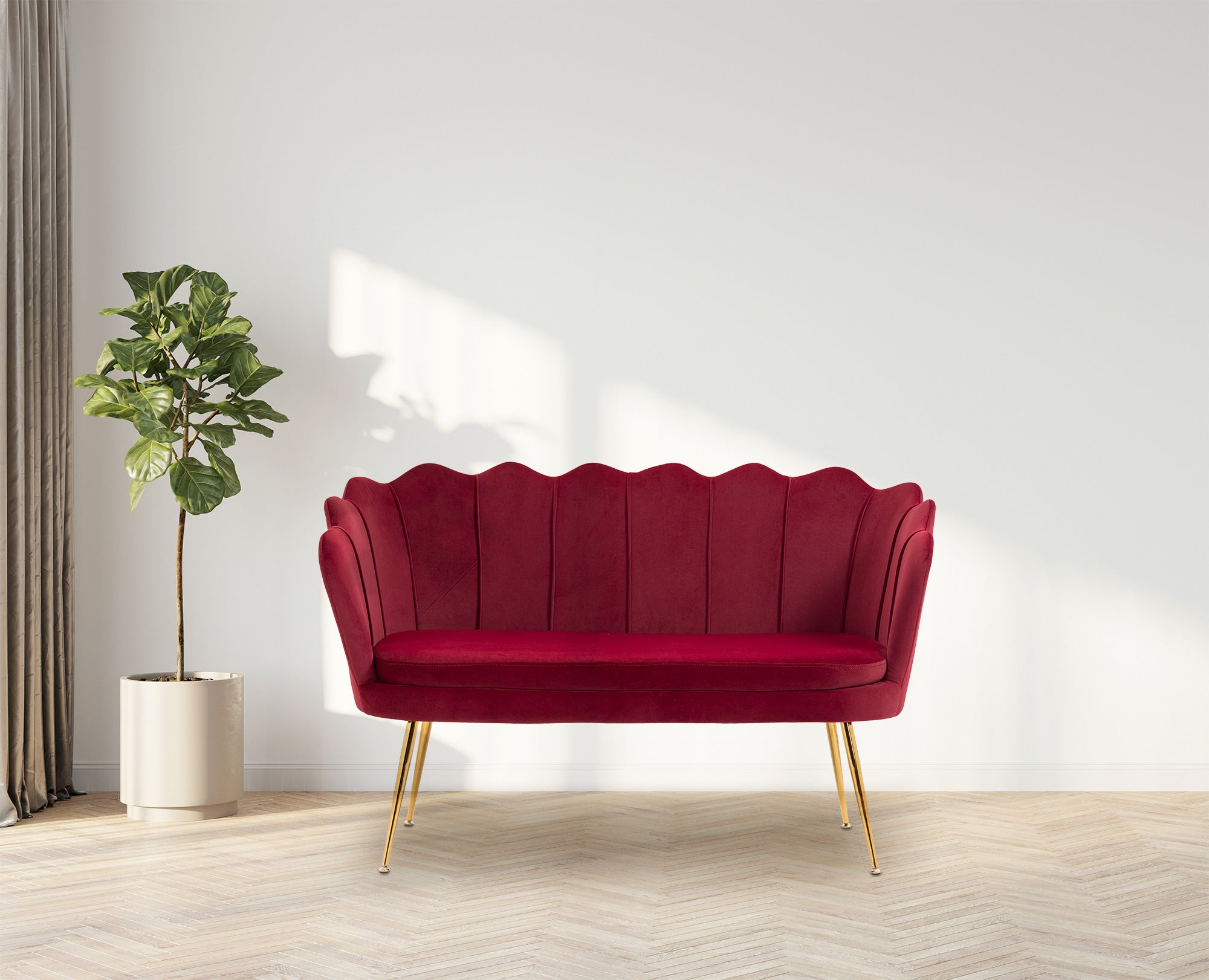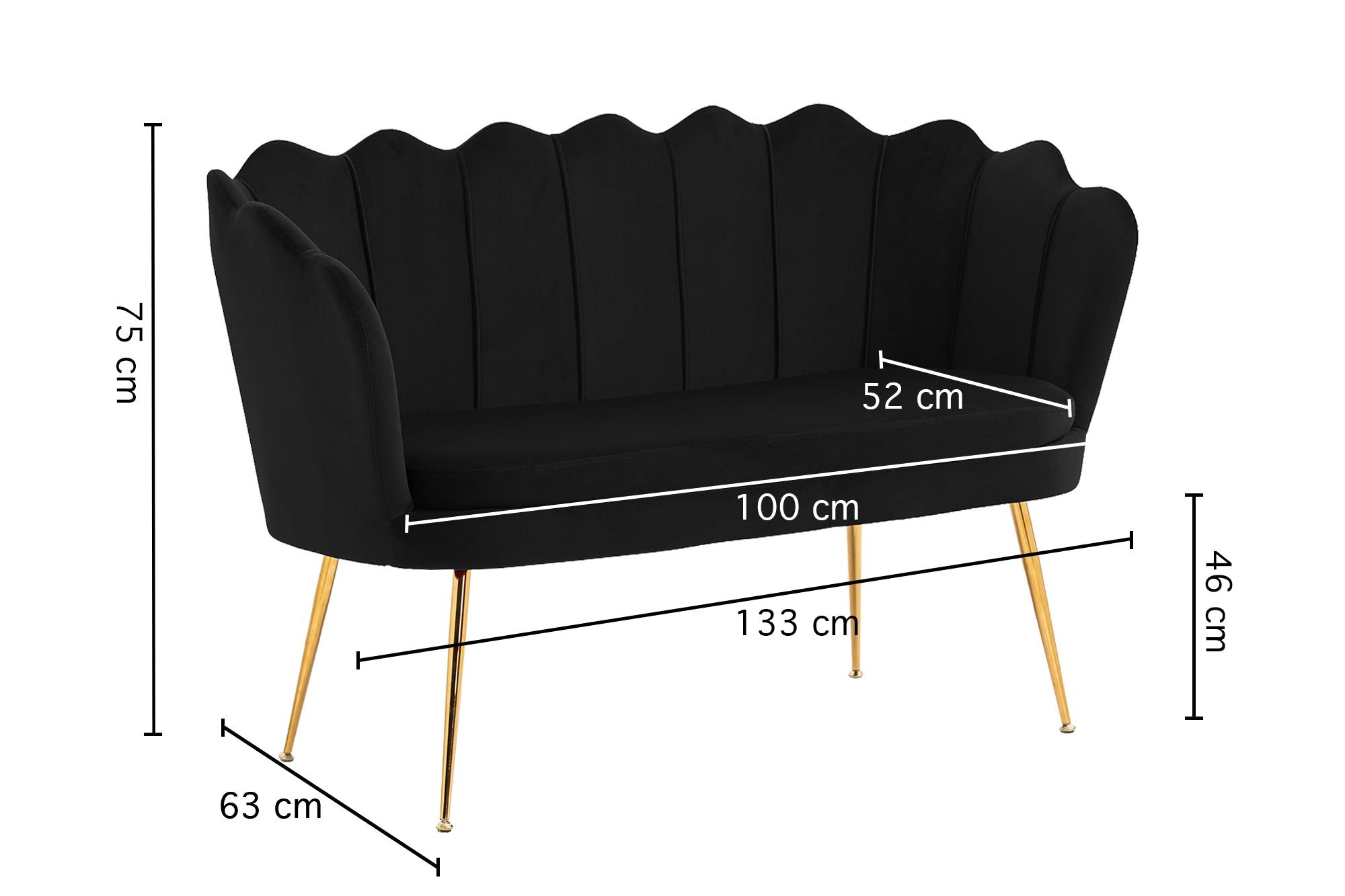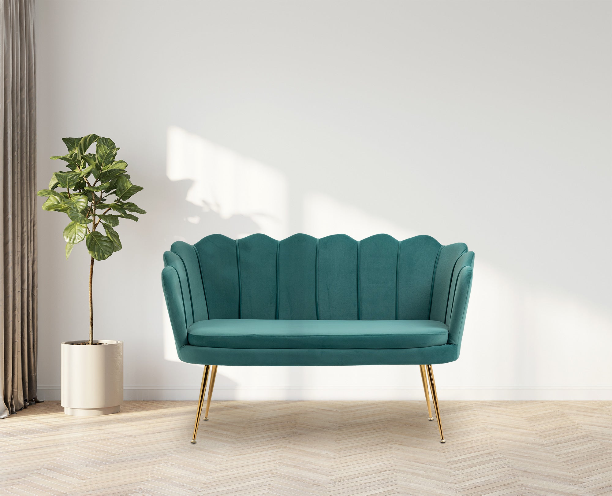 Divano Due 2 Posti In Velluto Forma Conchiglia Gambe In Metallo 133x63x75 Cm Camera Soggiorno Ufficio