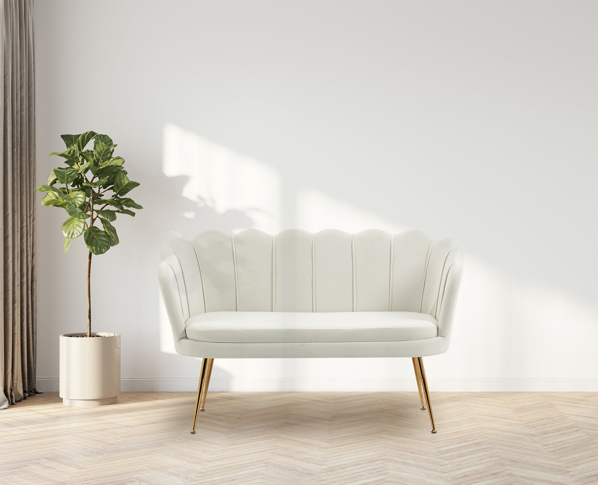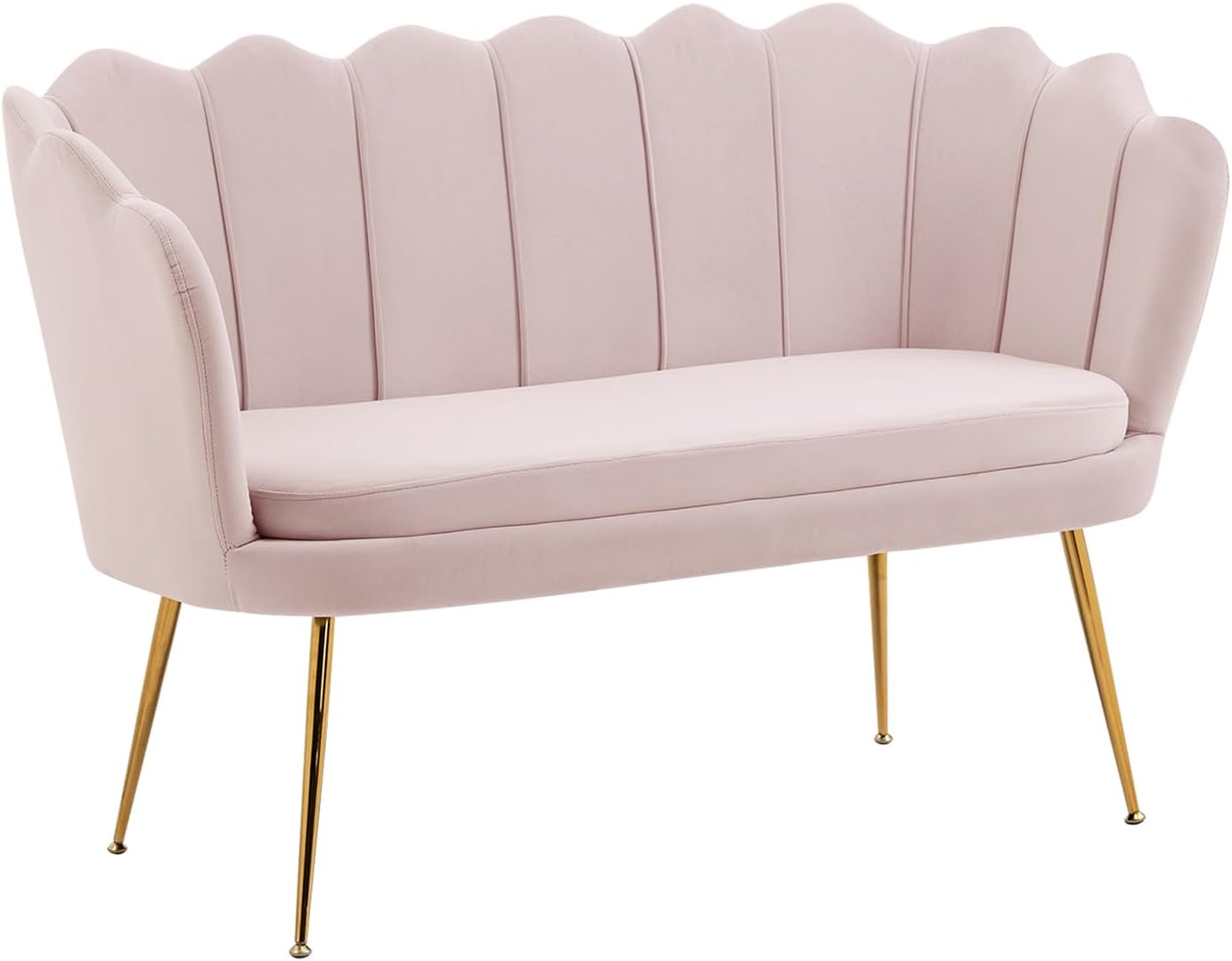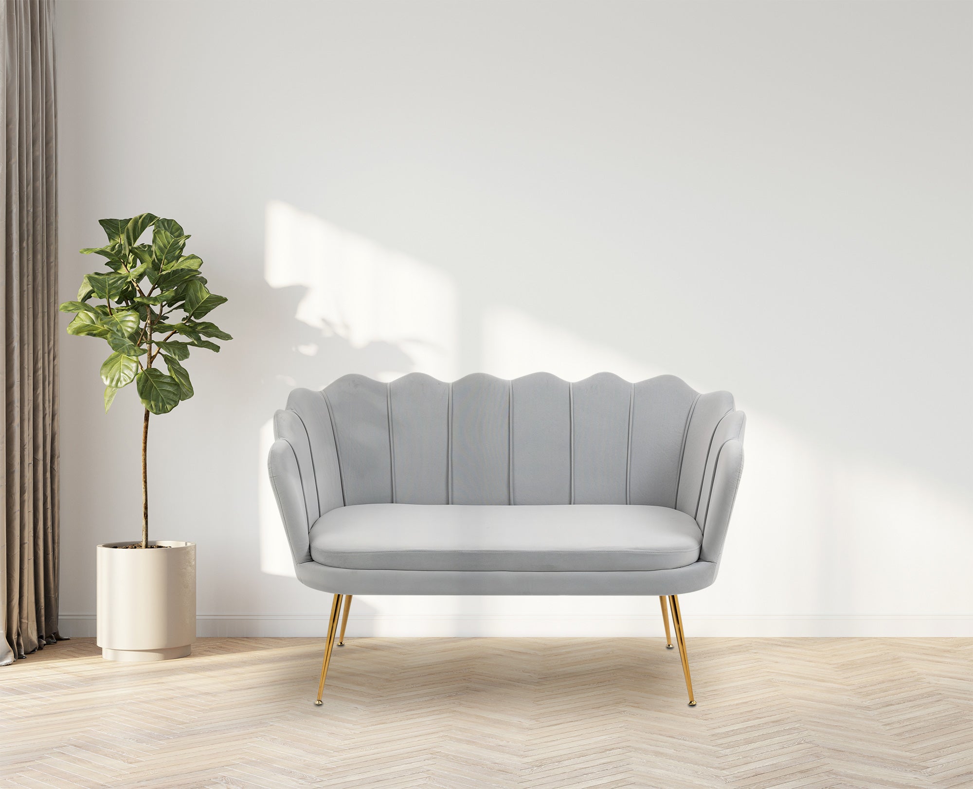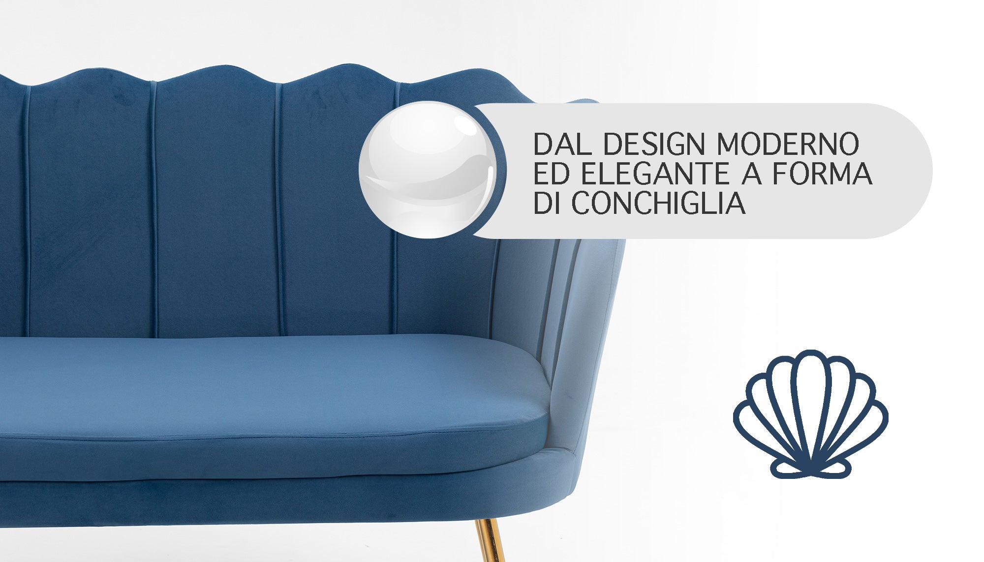 DESIGN MODERNO: Il design a conchiglia di questo divano lo rende perfetto per arredare ogni ambiente in cui viene collocato. L’accoppiamento con le gambe in metallo placcato oro lo rende molto elegante e moderno