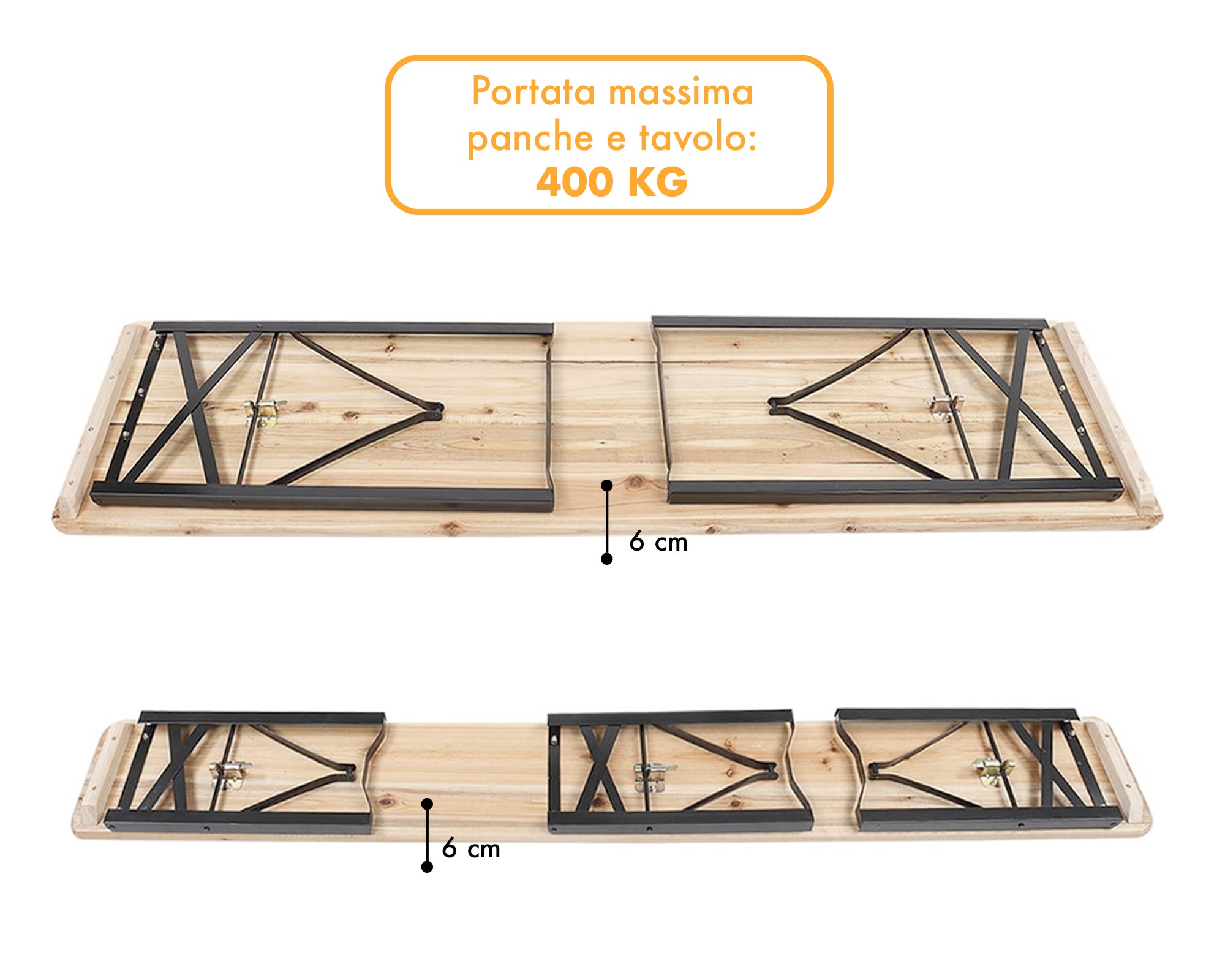 ✔️La parte superiore del tavolo e delle panche sono stati trattati con il trattamento di laccatura per garantire una durata ancora maggiore nel tempo - le cerniere di apertura e chiusura sono realizzate seguendo uno standard altissimo di qualità per poterlo aprire e richiudere ogni volta che lo vorrete in sicurezza e praticità