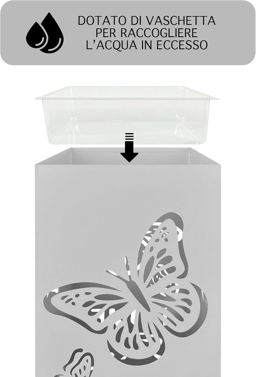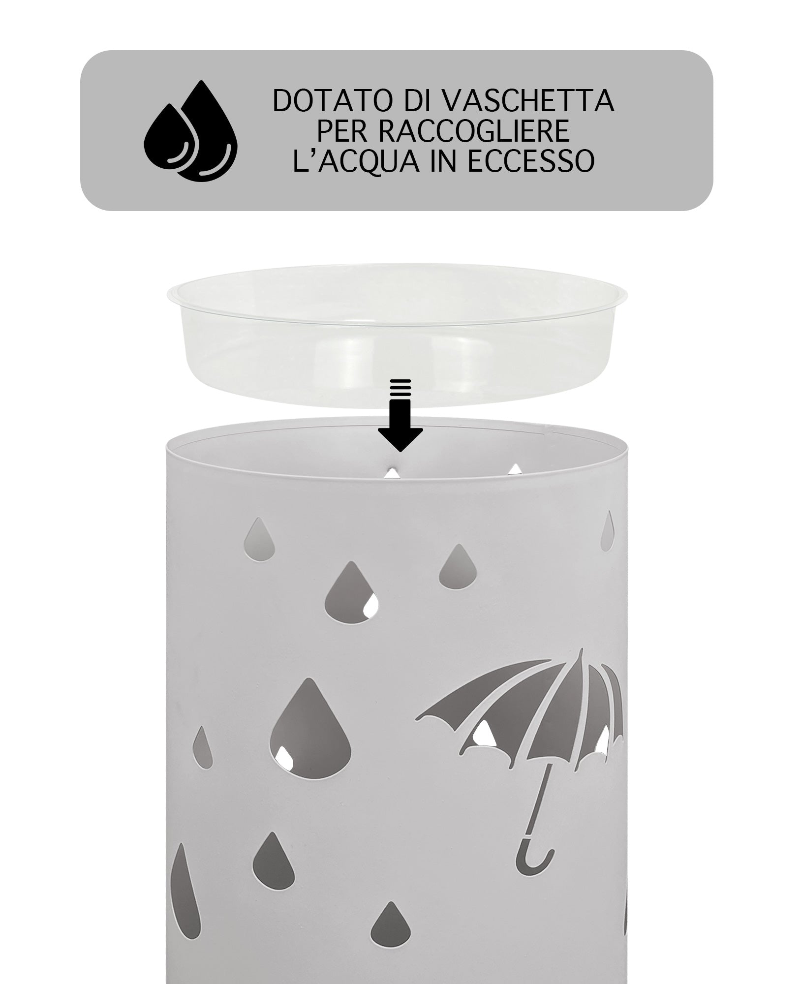 ✔️DESIGN MODERNO ED ELEGANTE: Metallo di alta qualità è sagomato con cura per creare un portaombrelli con linee pulite e moderne, adattandosi perfettamente a diversi stili di arredamento. PROTEZIONE DAL GOCCIOLAMENTO: Il design ben pensato prevede una vaschetta di raccolta dell'acqua estraibile in fondo al portaombrelli per evitare che l'acqua piovana si disperda, mantenendo il pavimento asciutto e pulito.