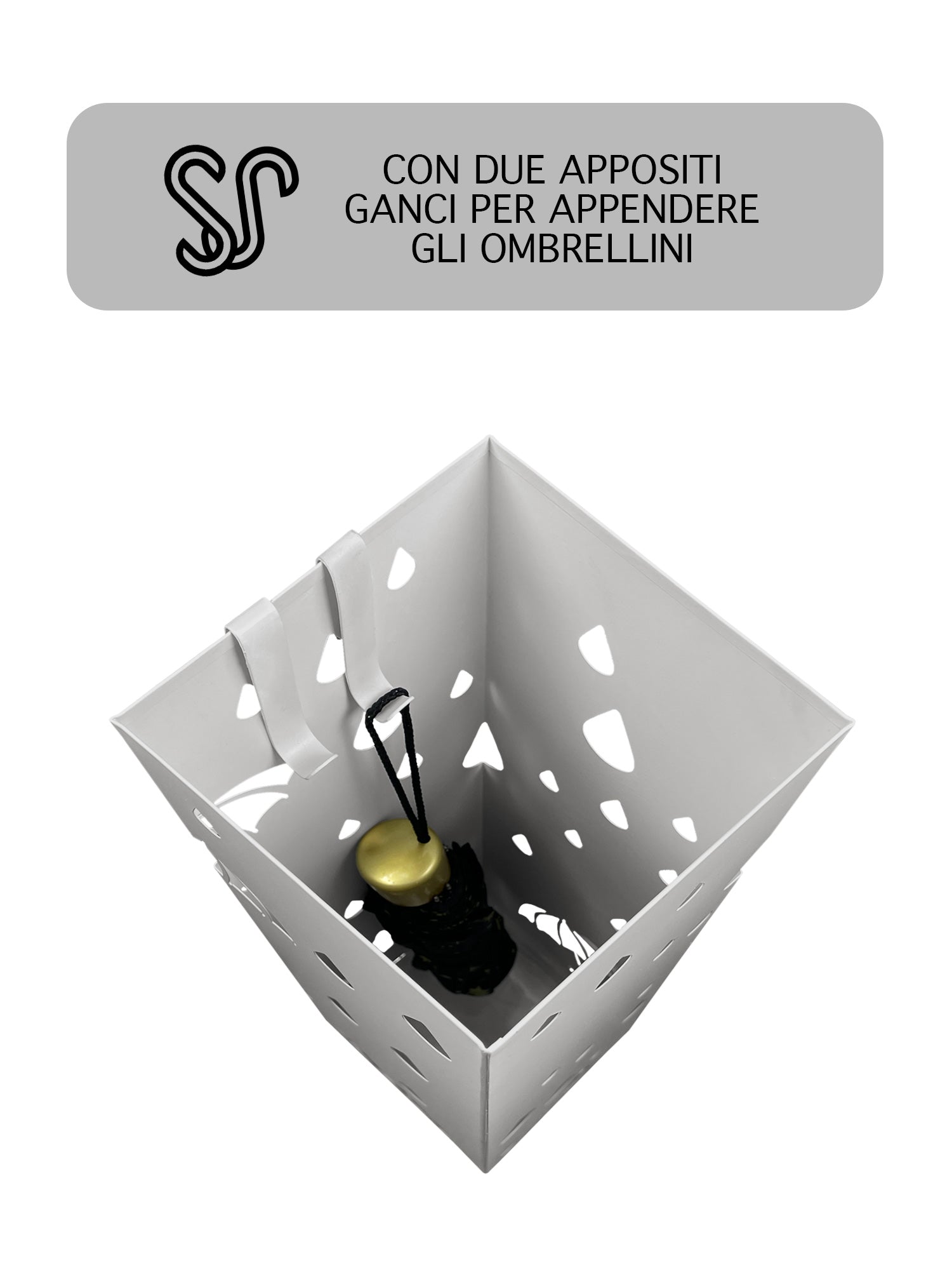 ✔️AMPIA CAPACITÀ: Con la sua struttura a spirale o a ganci, offre ampio spazio per ospitare ombrelli di diverse dimensioni, mantenendoli in posizione verticale e pronti all'uso, viene fornito con 2 ganci per attaccare piccoli ombrellini per evitare che cadano sul fondo