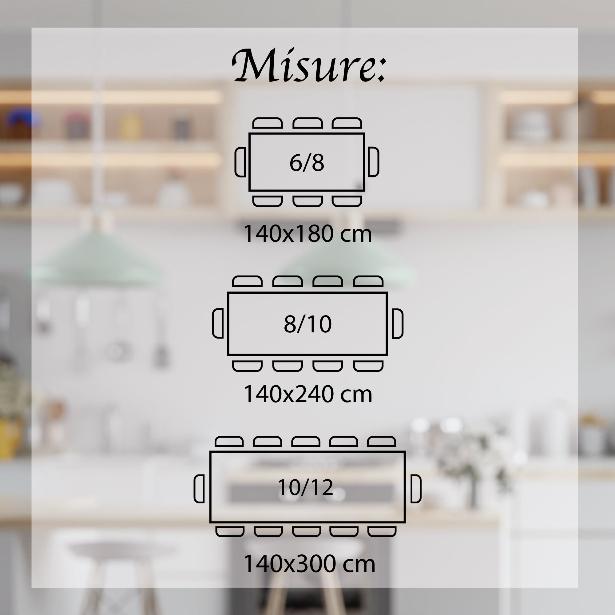 Dimensioni: Disponibile in 3 Dimensioni standard 6-8 Posti 140x180 Cm, 8-10 Posti 140x240Cm, 10-12 Posti 140x300Cm