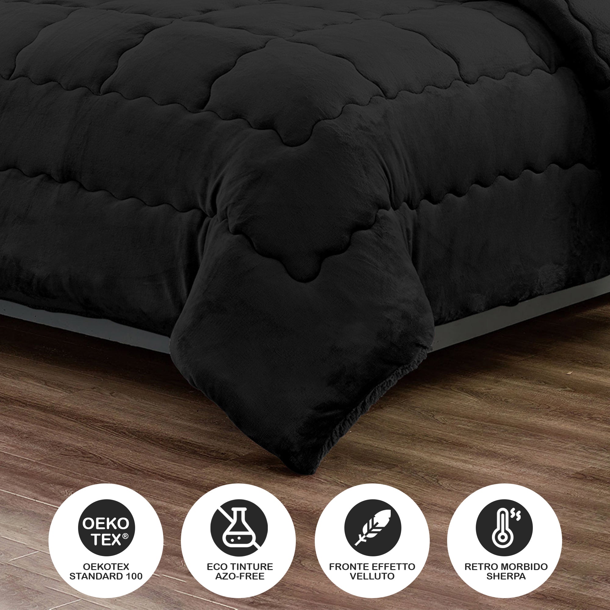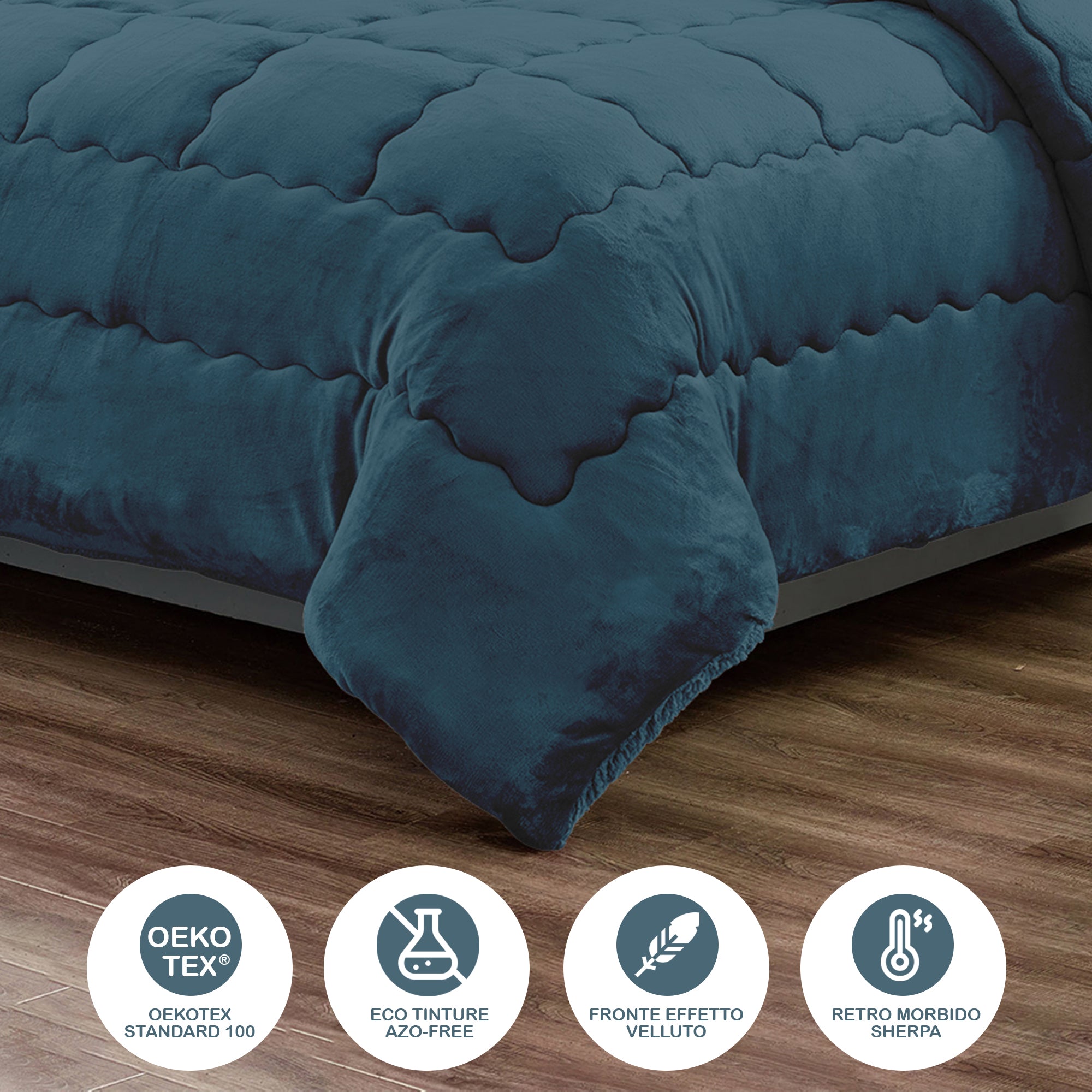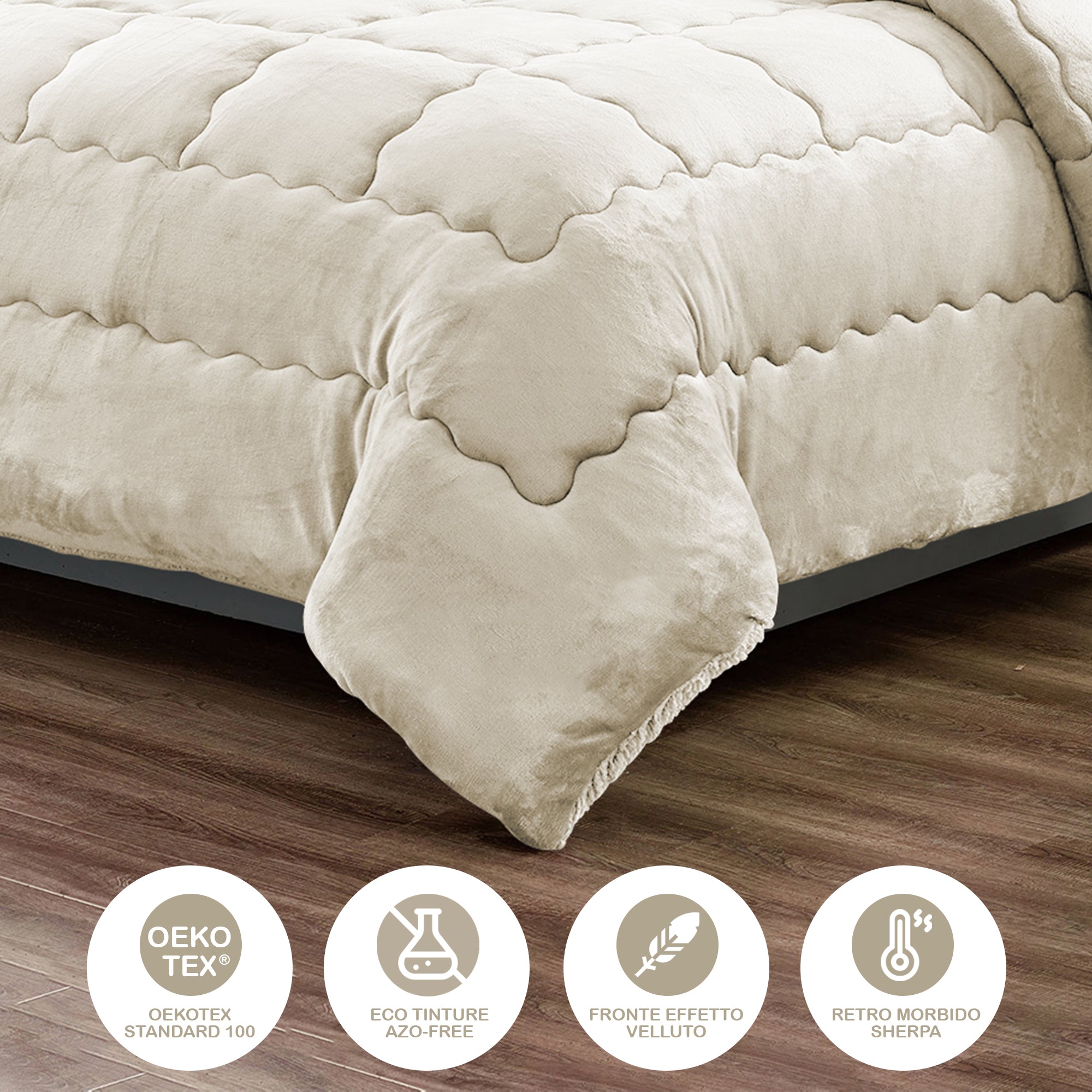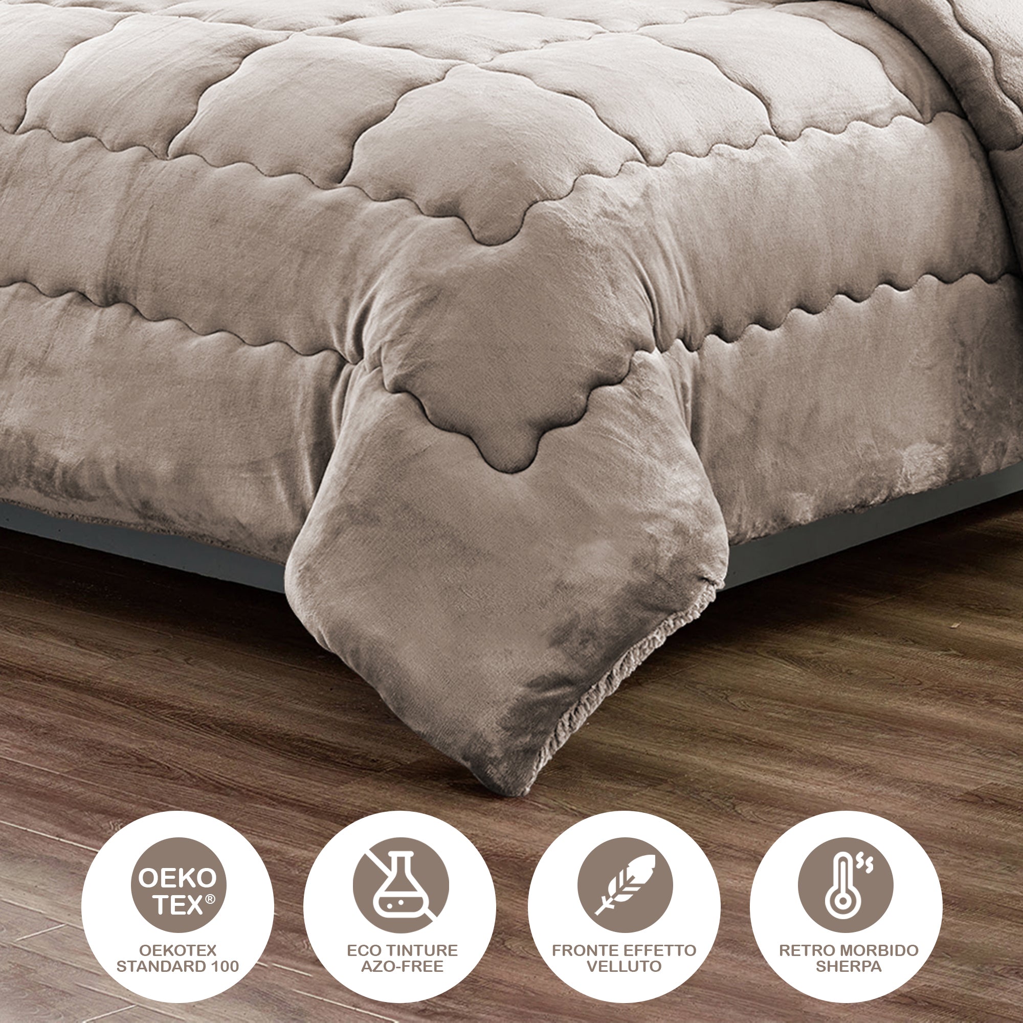 Trapunta Matrimoniale in Velluto con Retro Sherpa Invernale Effetto Piuma 560 g/mq Duck Friendly Il Gruppone