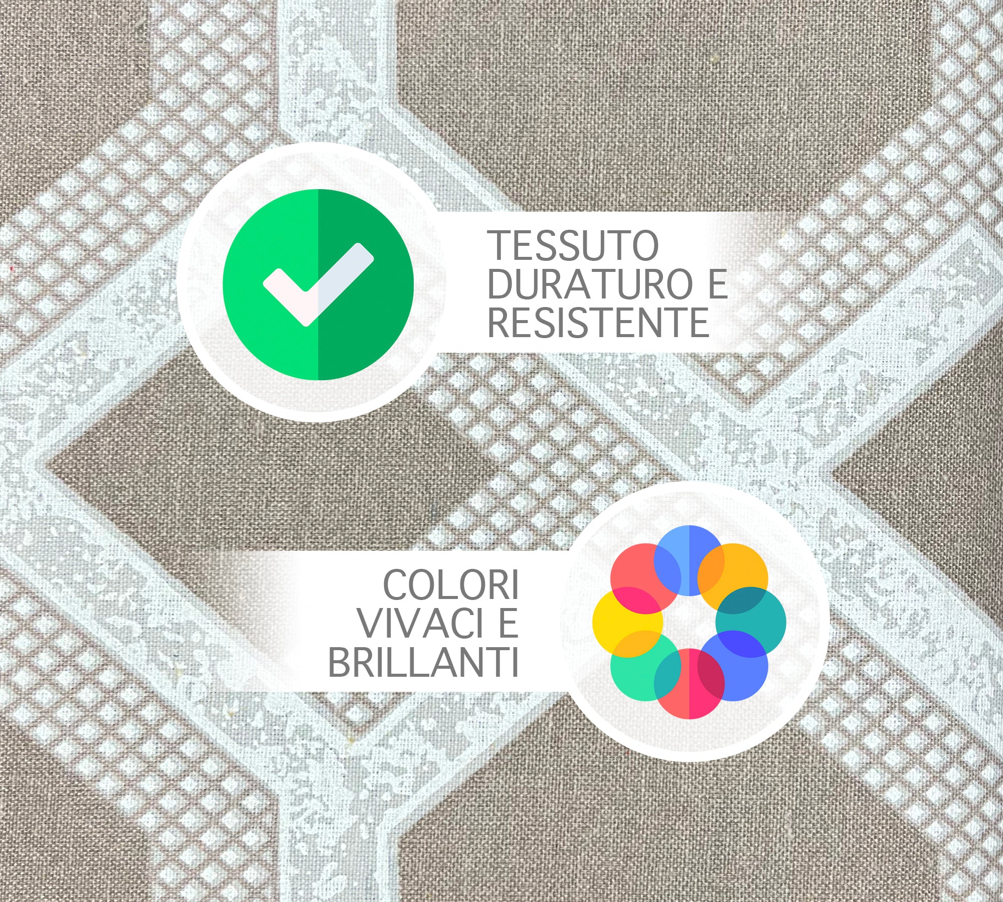 Design Moderno: i disegni di questa collezione presentano stampe contemporanee, moderne studiate e ricercate, il risultato è un prodotto unico e d'eccellenza