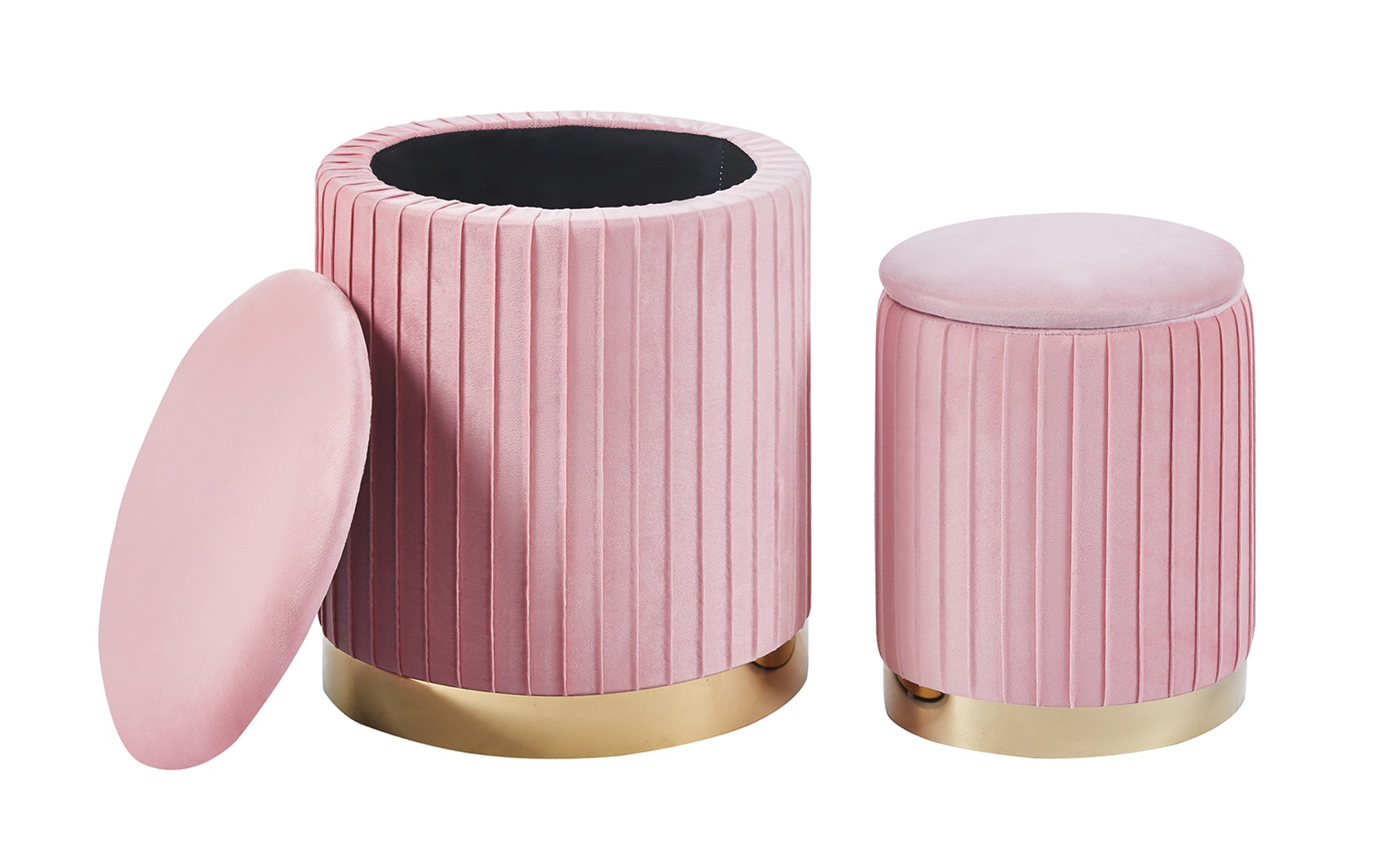 Set Di 2 Pouf Contenitori Velluto Design Moderno Sgabello A Coste Il Gruppone