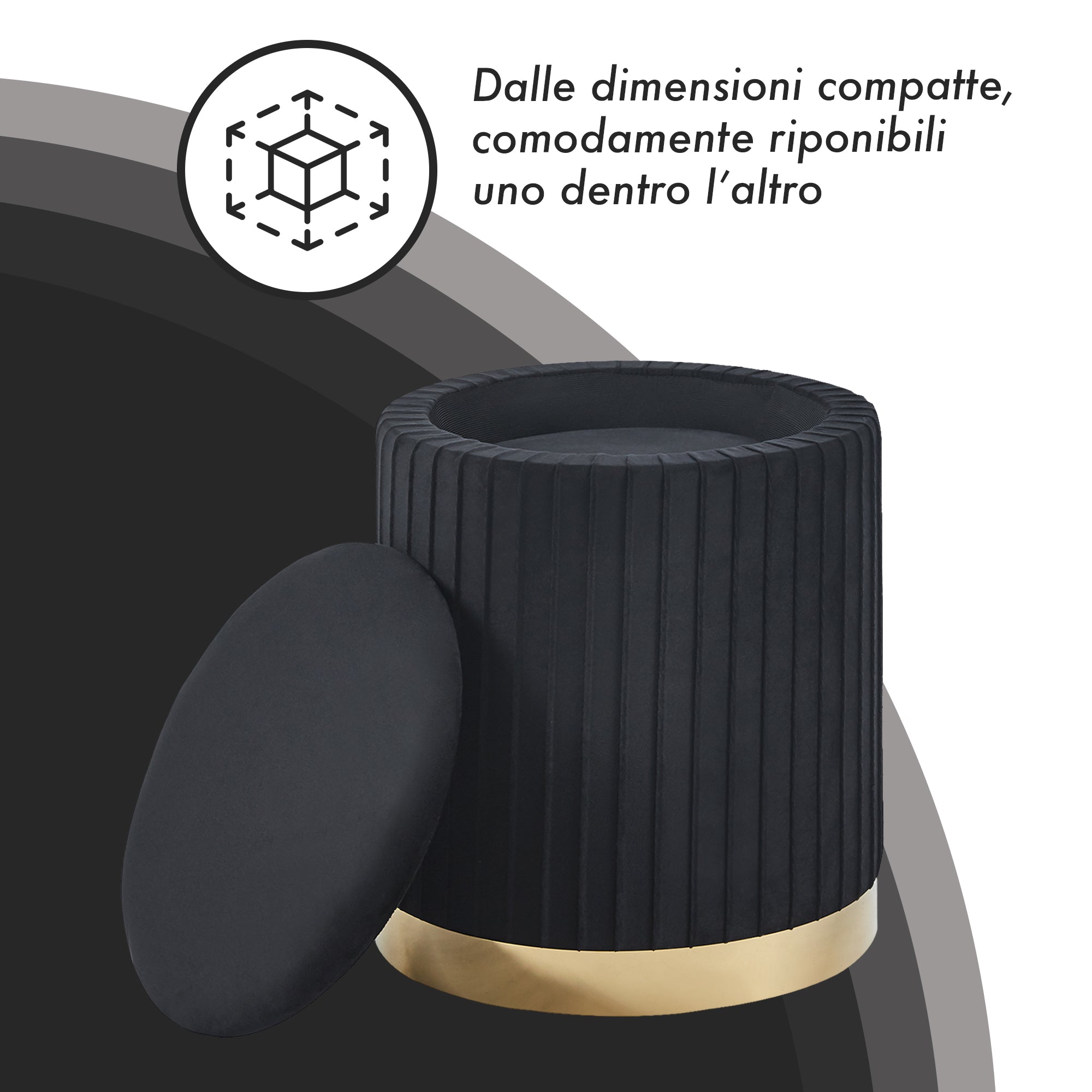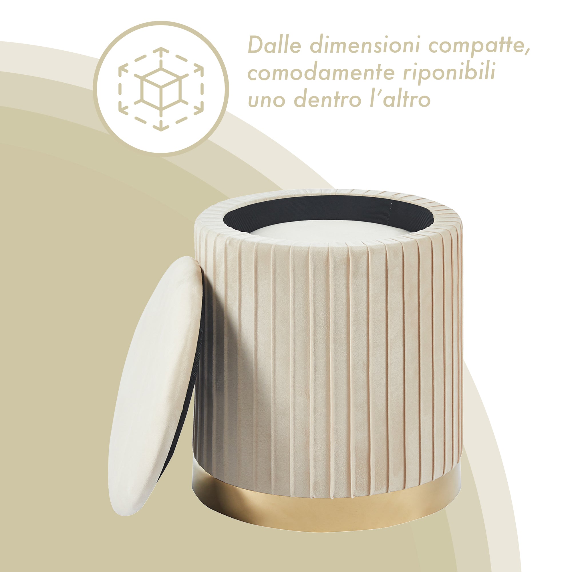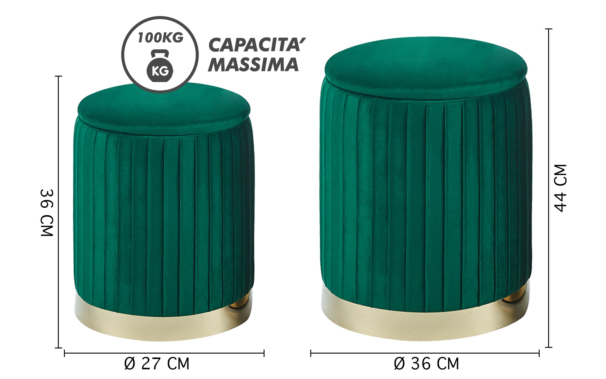 ✔️Unici: Con il rivestimento in velluto e la base in metallo dorato, questi pouf a cilindro con con coperchio rimovibile e contenitore interno sono oggetti pratici e decorativi a tutti gli effetti velluto e metallo color oro, simboli di lusso e raffinatezza, sono ideali per rendere il tuo interno unico ed invidiabile risultano visto le dimensioni essere anche contenitori capienti per coperte-plaid-scarpe ecc.