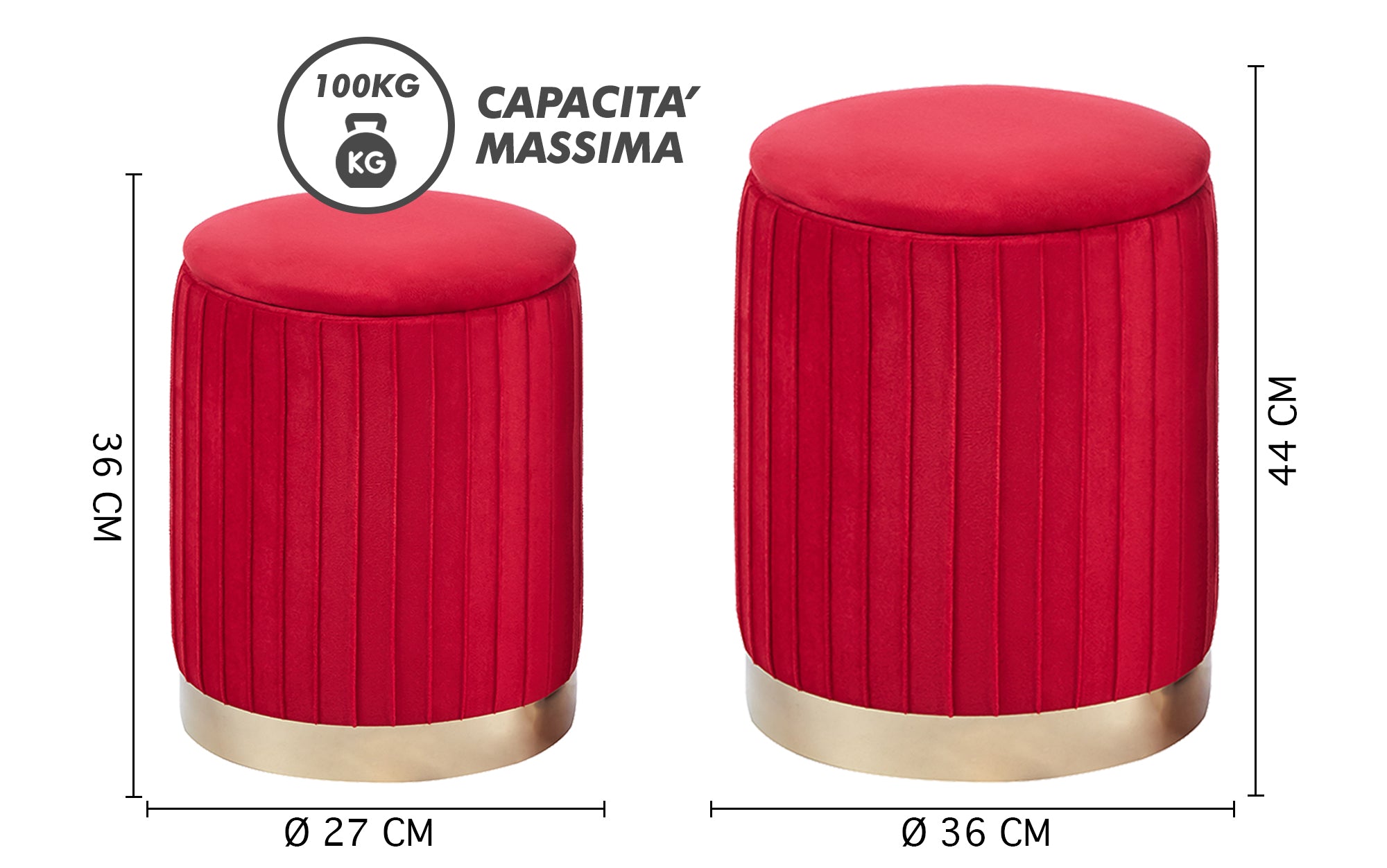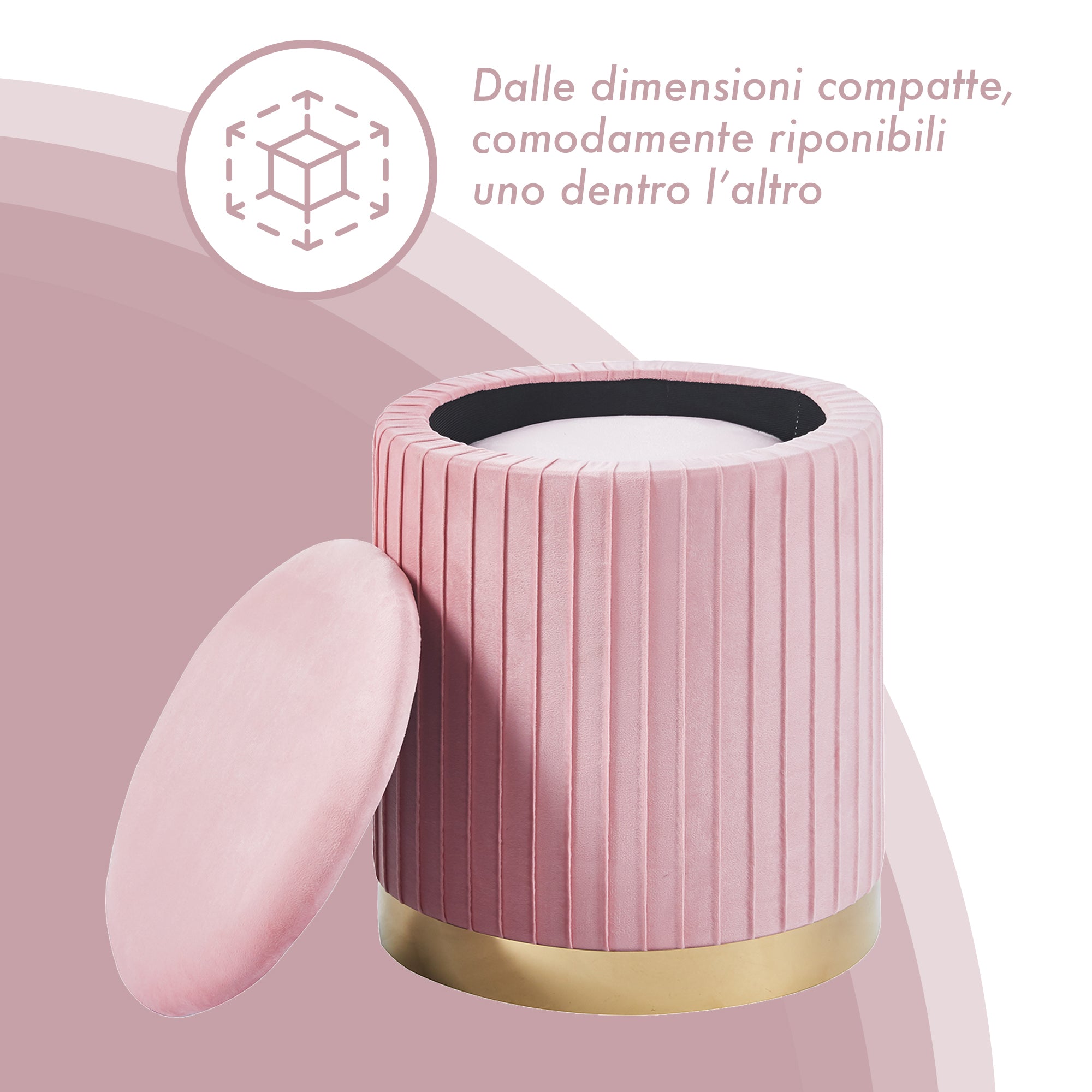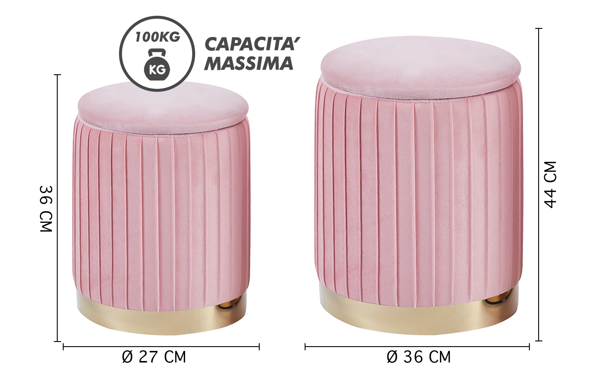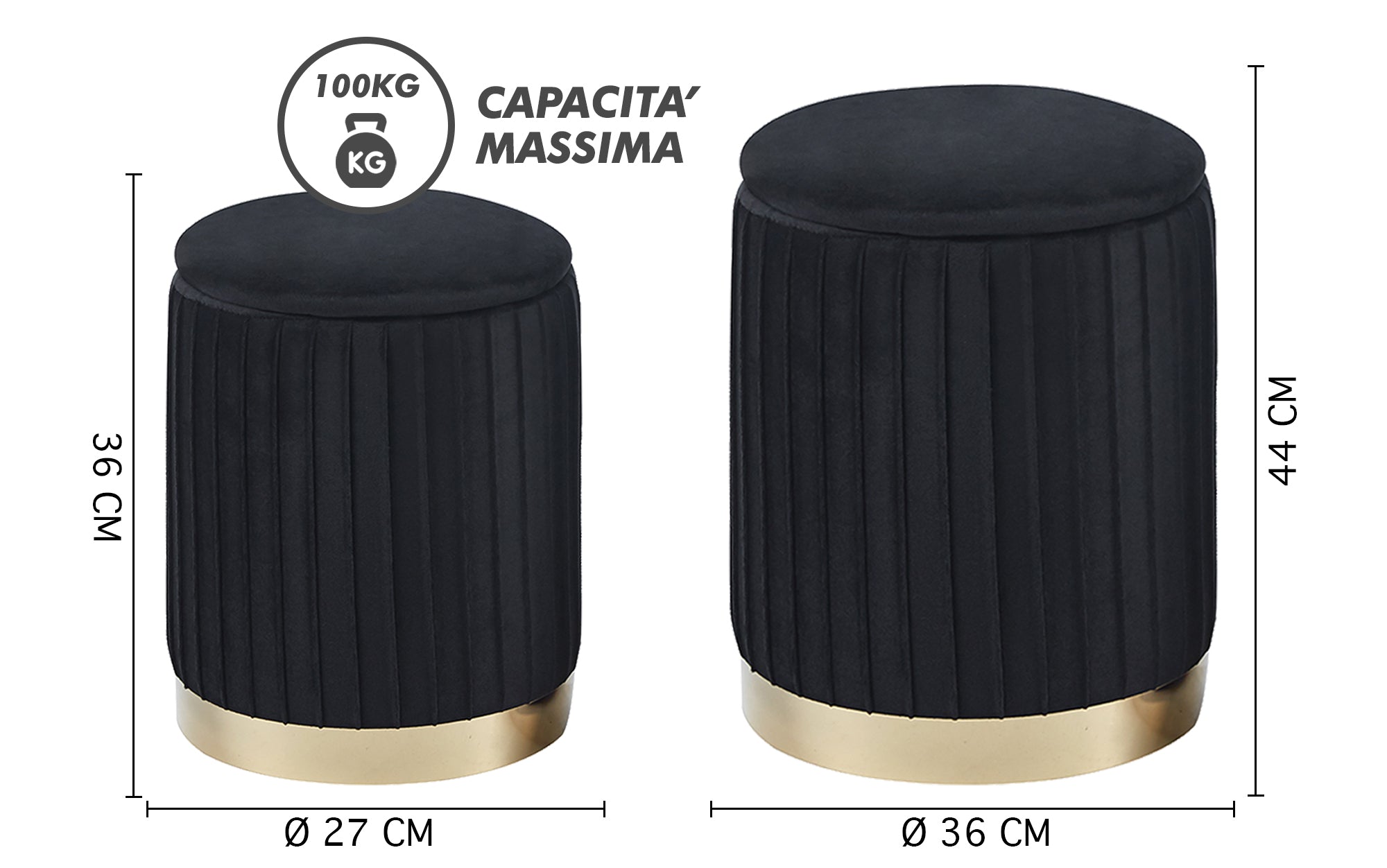 ✔️Unici: Con il rivestimento in velluto e la base in metallo dorato, questi pouf a cilindro con con coperchio rimovibile e contenitore interno sono oggetti pratici e decorativi a tutti gli effetti velluto e metallo color oro, simboli di lusso e raffinatezza, sono ideali per rendere il tuo interno unico ed invidiabile risultano visto le dimensioni essere anche contenitori capienti per coperte-plaid-scarpe ecc.