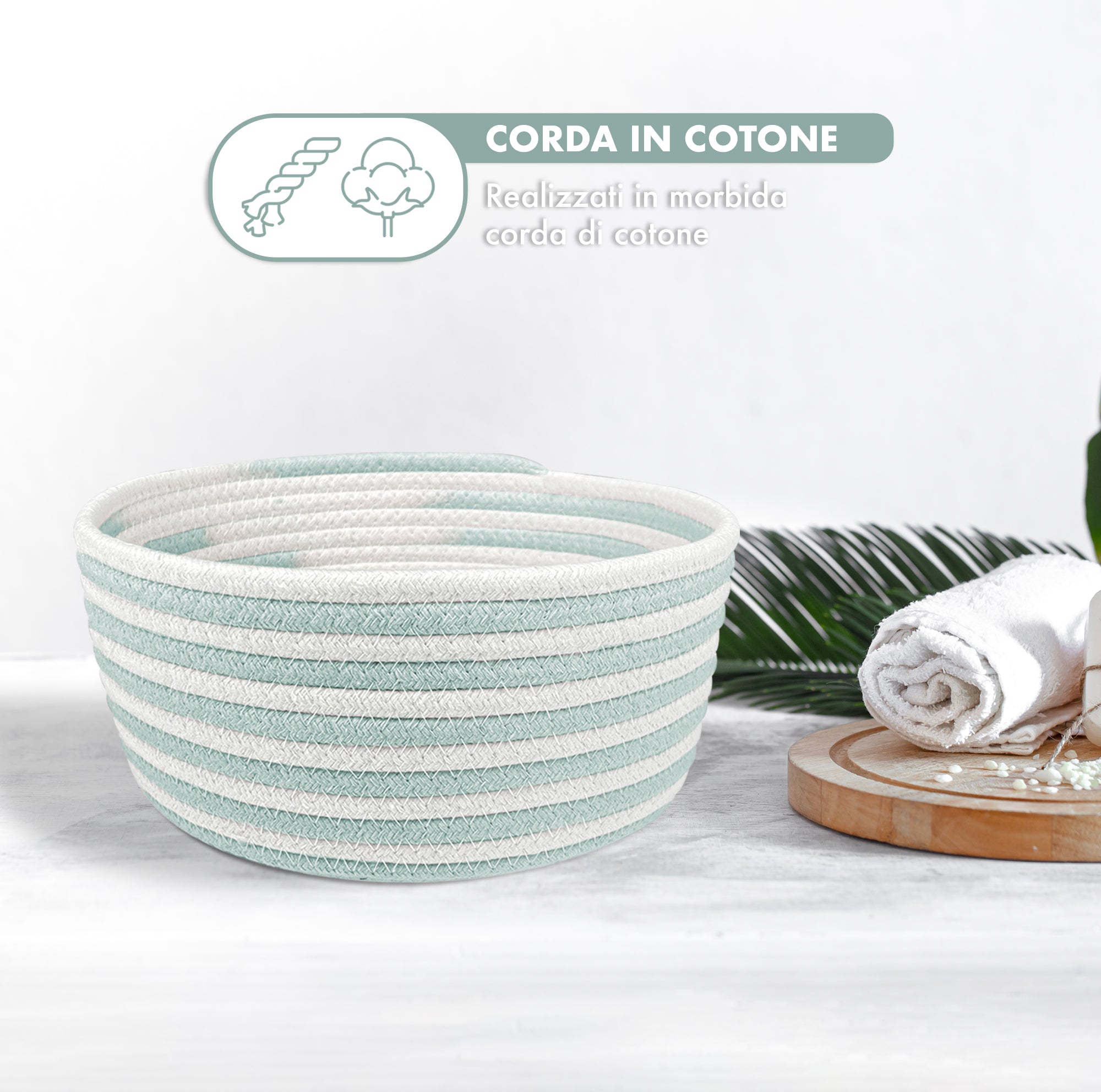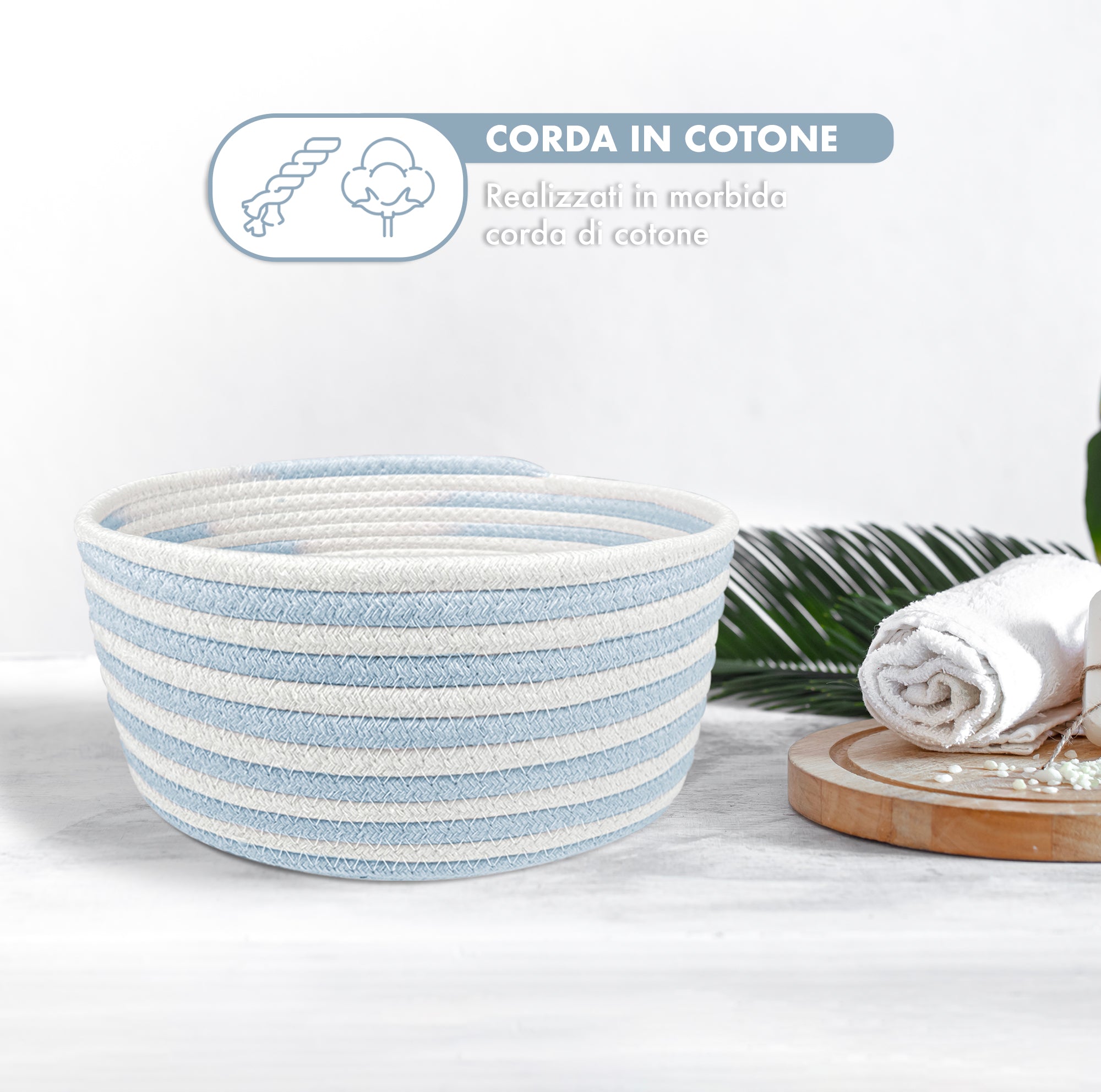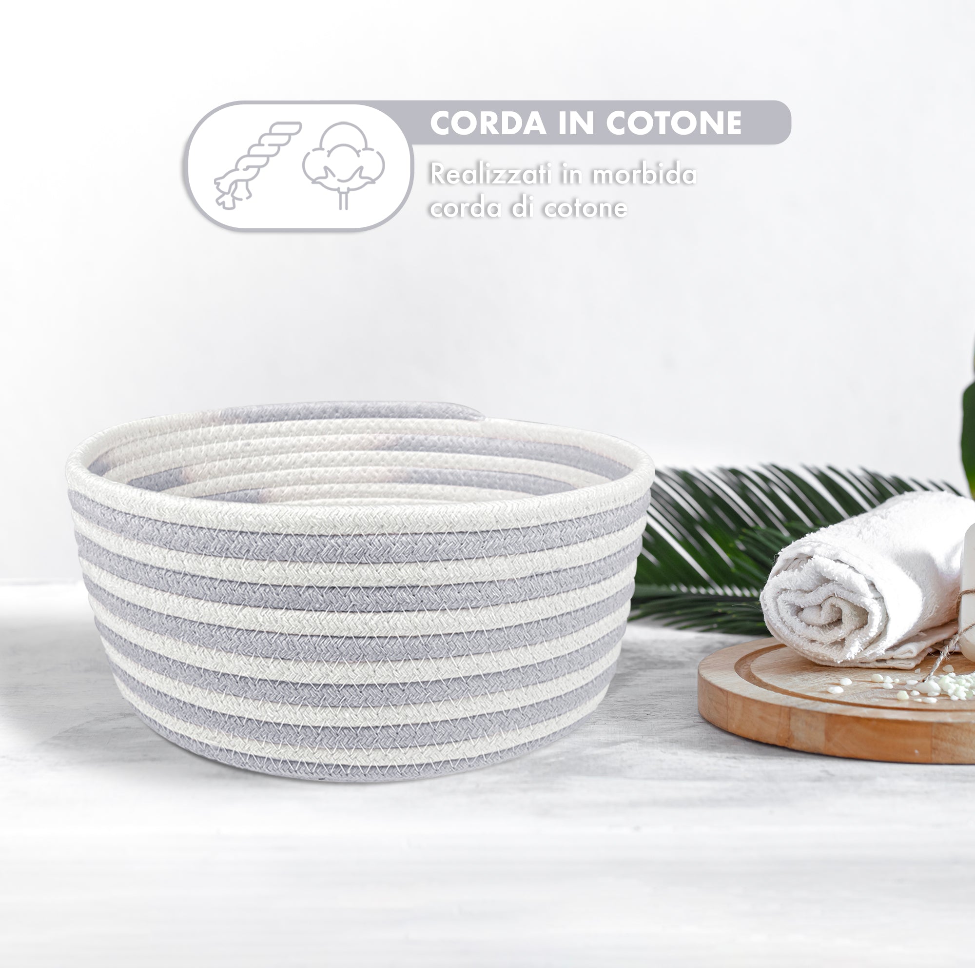 Materiali di Eccellenza: I nostri cestini portaoggetti sono realizzati in corda di cotone di alta qualità, morbida al tatto e delicata sulla pelle. Senza odori sgradevoli, questi cestini sono robusti e resistenti, mantenendo la loro forma anche dopo ripetuti utilizzi. La loro versatilità consente di piegarli facilmente senza danneggiarli, garantendo una lunga durata nel tempo.