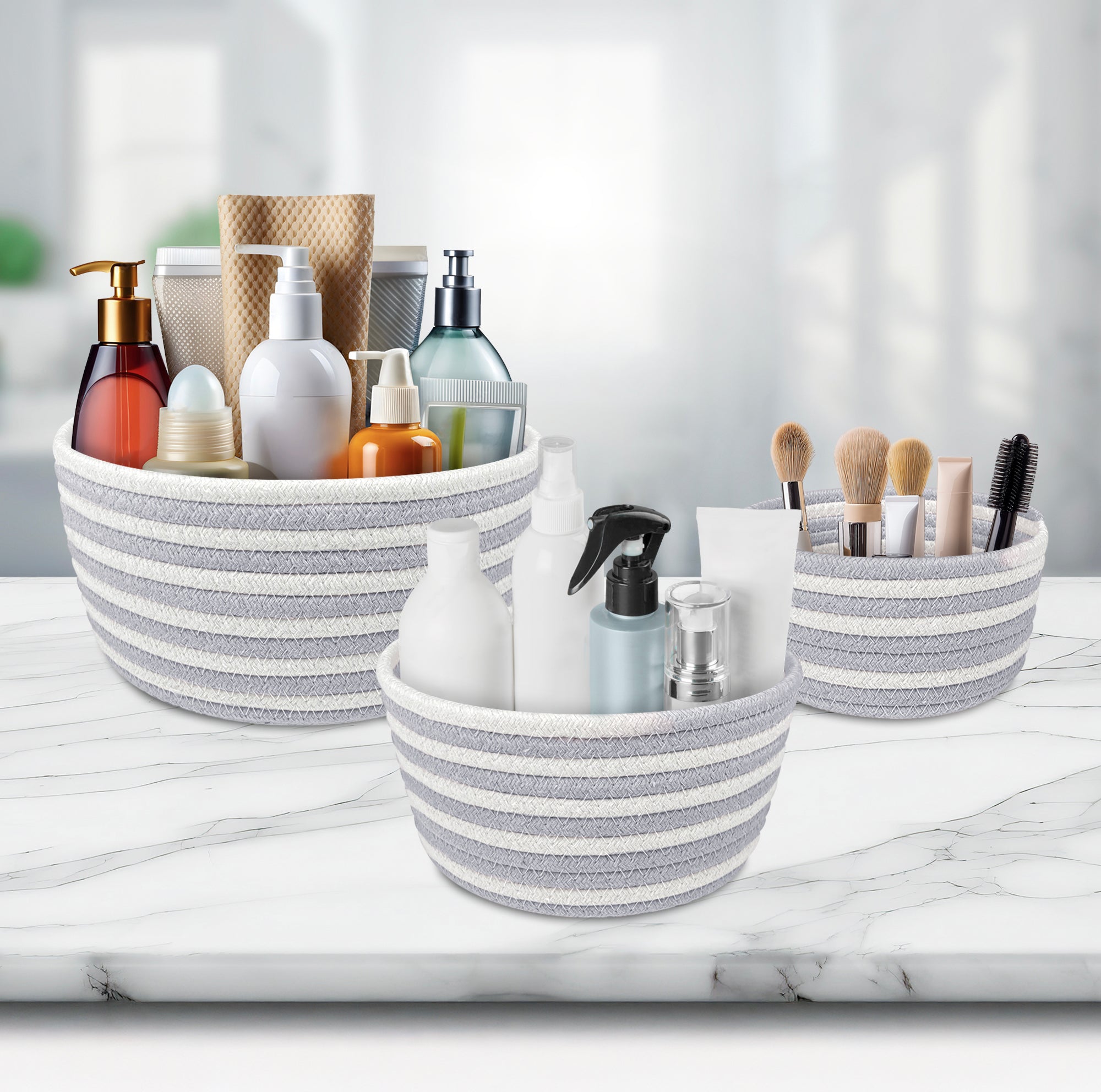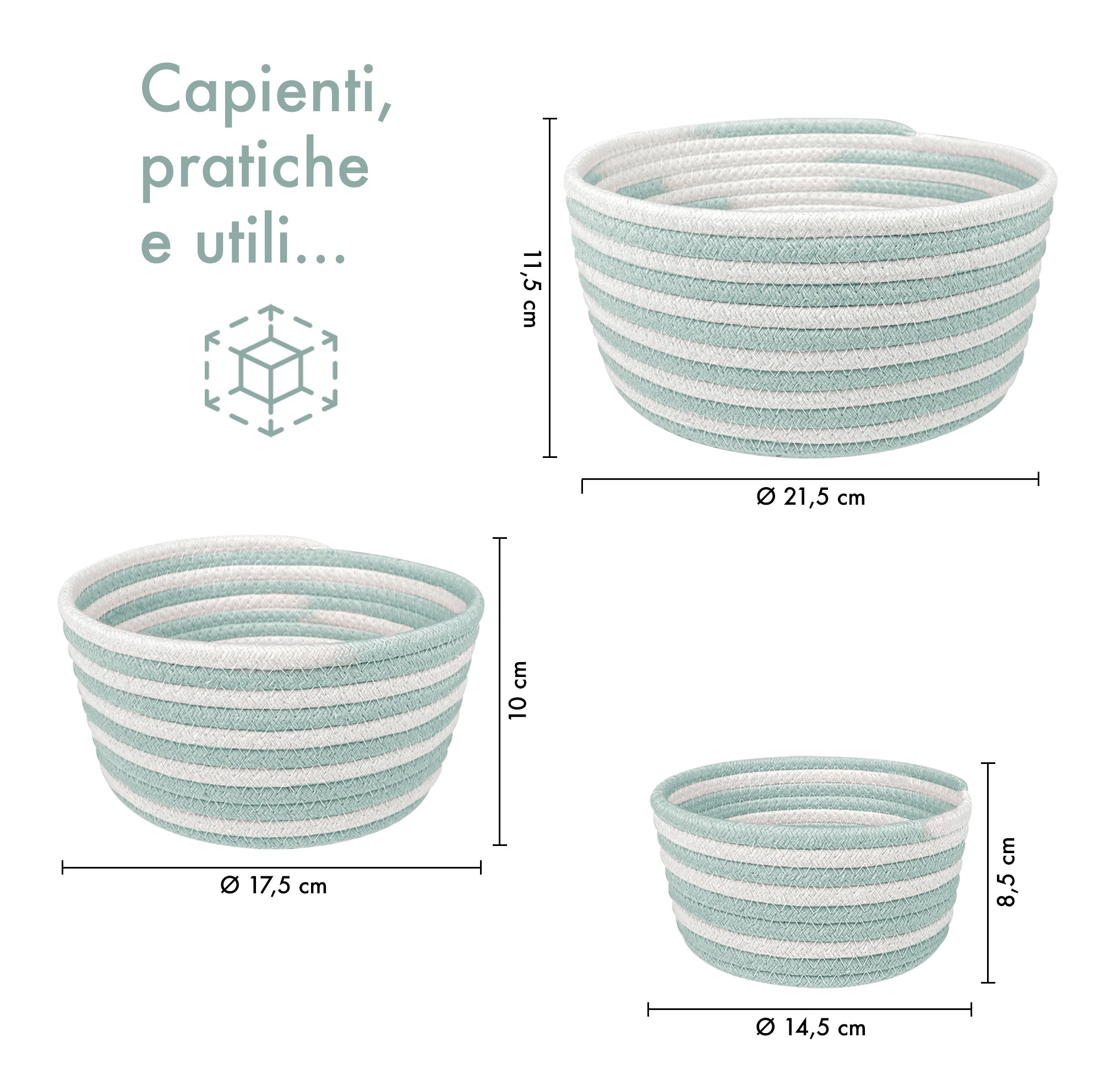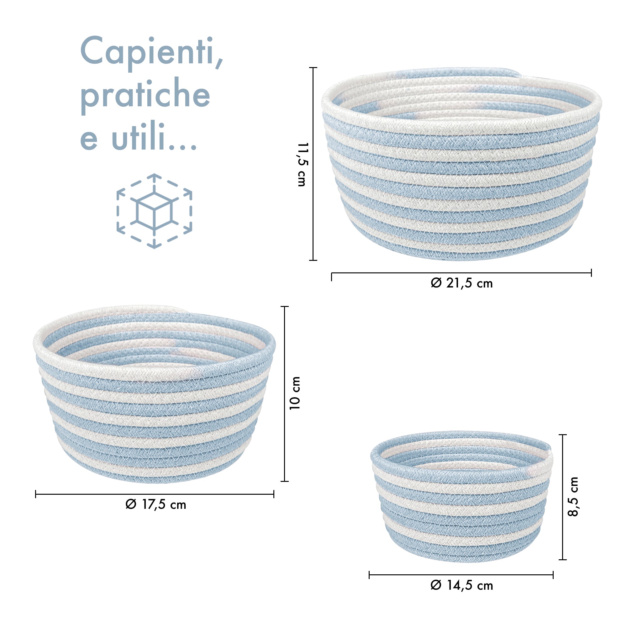 Set 3 Cestini in Corda di Cotone Bicolore Design Moderno ed Elegante Il Gruppone