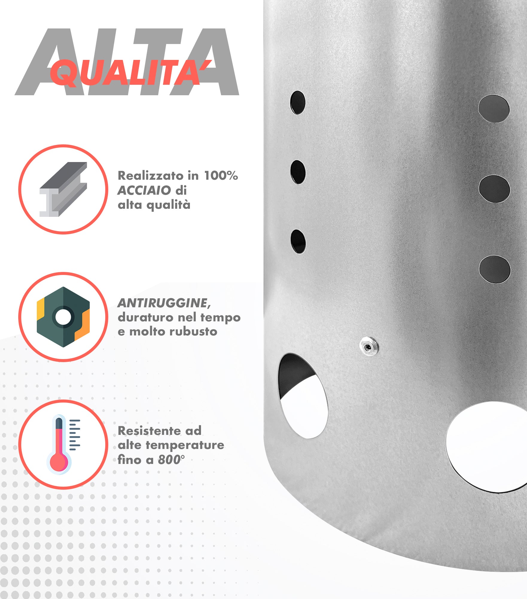 ✔️MATERIALI RESISTENTI: Realizzata in resistente acciaio zincato, la ciminiera presenta una doppia parete che protegge dal calore. Le ampie feritoie di aerazione sono studiate per ottimizzare la circolazione dell'aria, permettendo di ottenere carbonella incandescente nel minor tempo possibile.