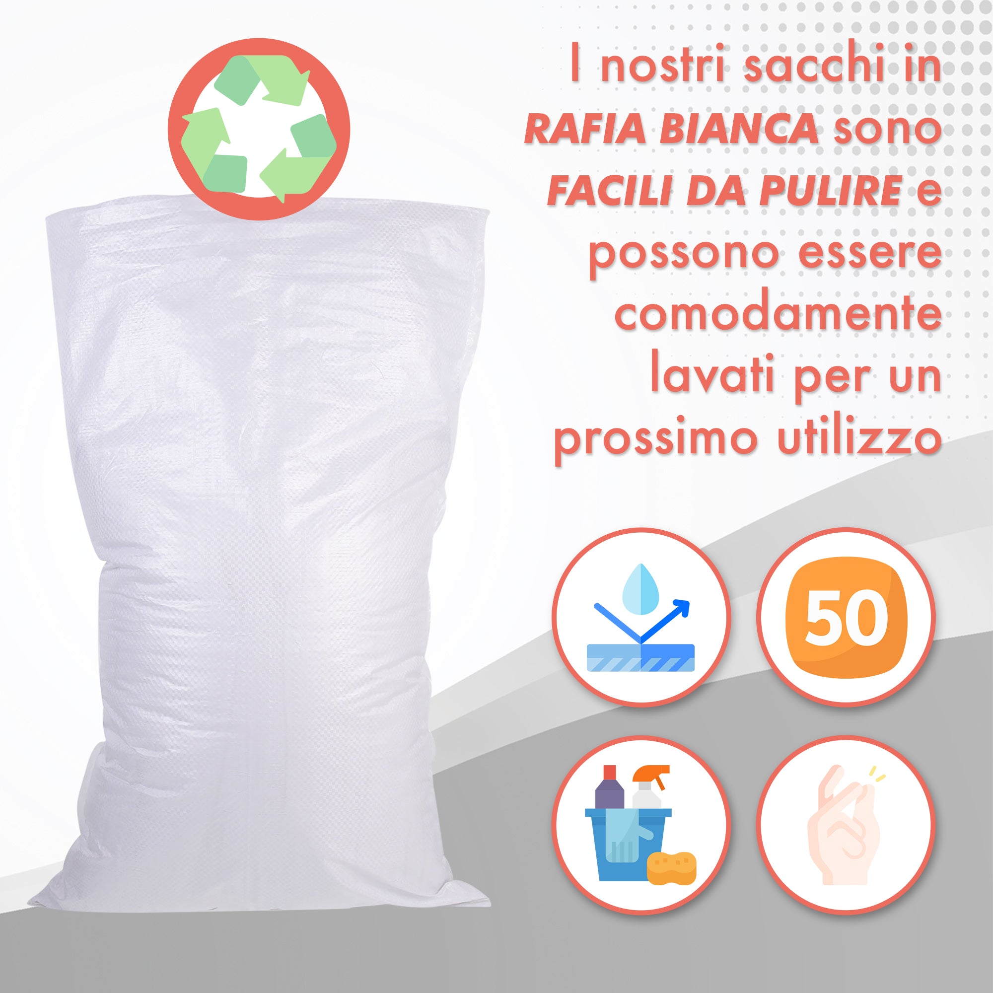 ✅ SACCHI IN RAFIA POLIPROPILENE - Scopri i nostri sacchi in rafia, realizzati in resistente polipropilene bianco, progettati per soddisfare le tue esigenze di stoccaggio e trasporto. Questi sacchi sono riutilizzabili e impermeabili, rendendoli la scelta ideale per una vasta gamma di applicazioni, sia domestiche che professionali.