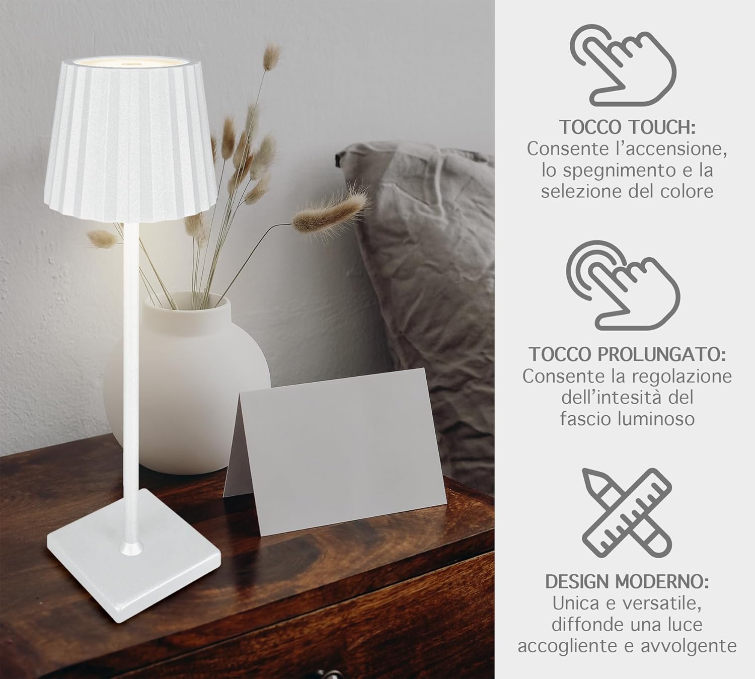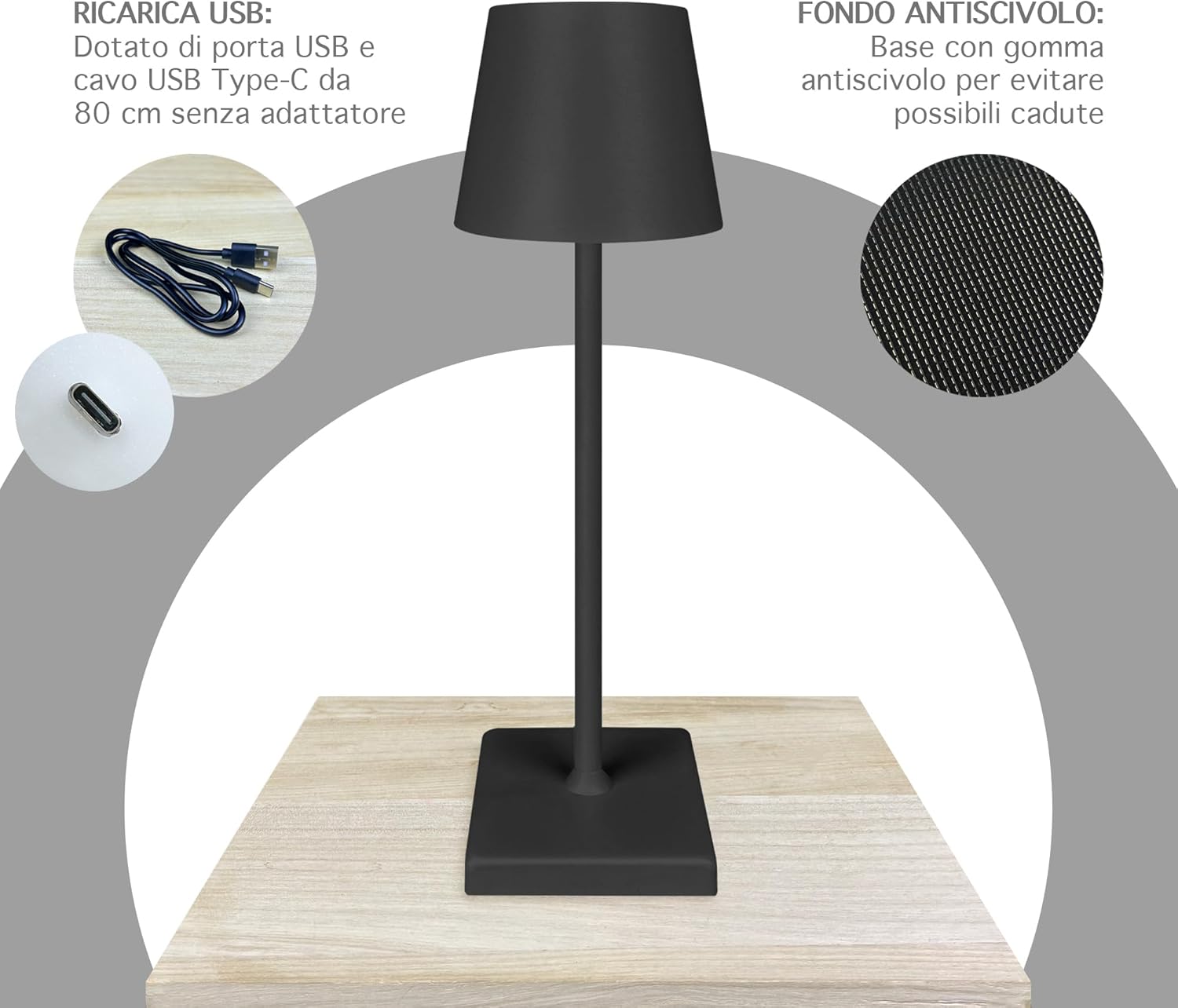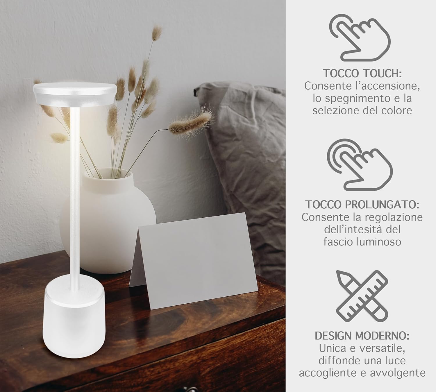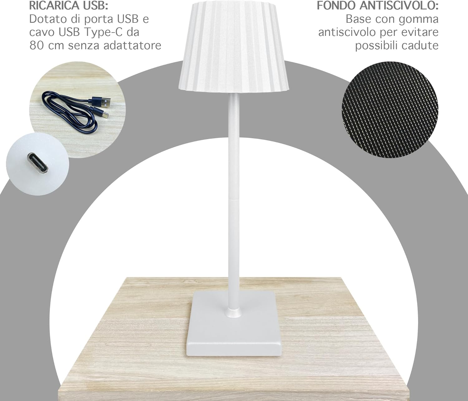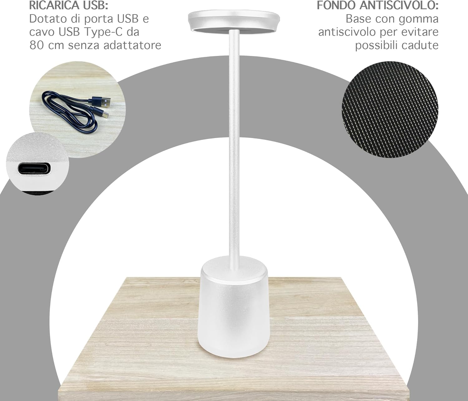 ✔️DESIGNE MODERNO: Bellissima Lampada a led dal design moderno e ricercato senza fili regolabile in 2 altezze in quanto il il palo che collega la base alla lampada è sezionato in 2 pezzi avvitabili tra loro, ideale per tavolo o come Abat Jour da Comodino utilizzabile sia per abitazioni o attività commerciali, prodotto di alta qualità- Il retro della base è antiscivolo e antigraffio per garantire una stabilità massima e senza rovinare la superficie dove andrete ad appoggiarla