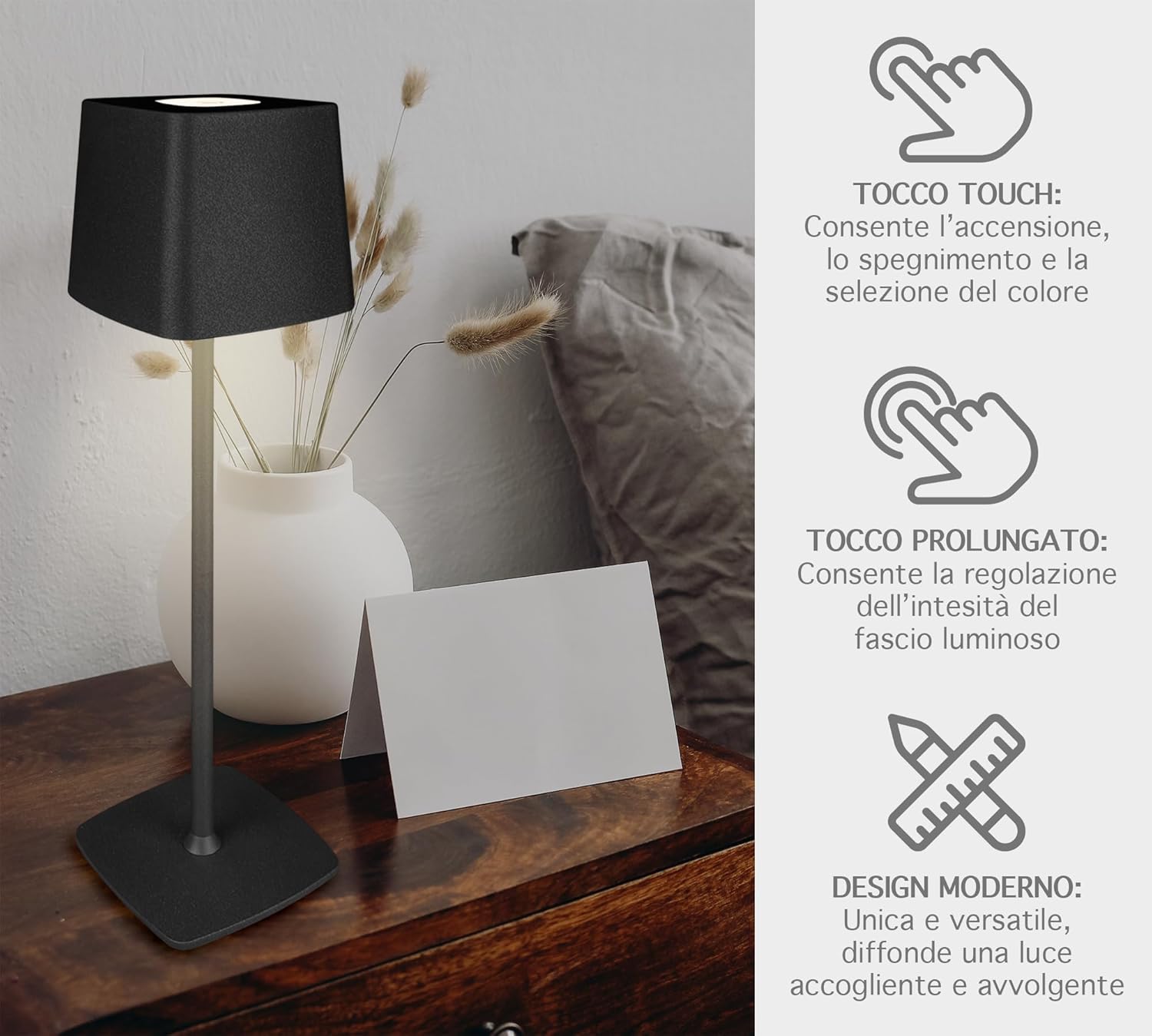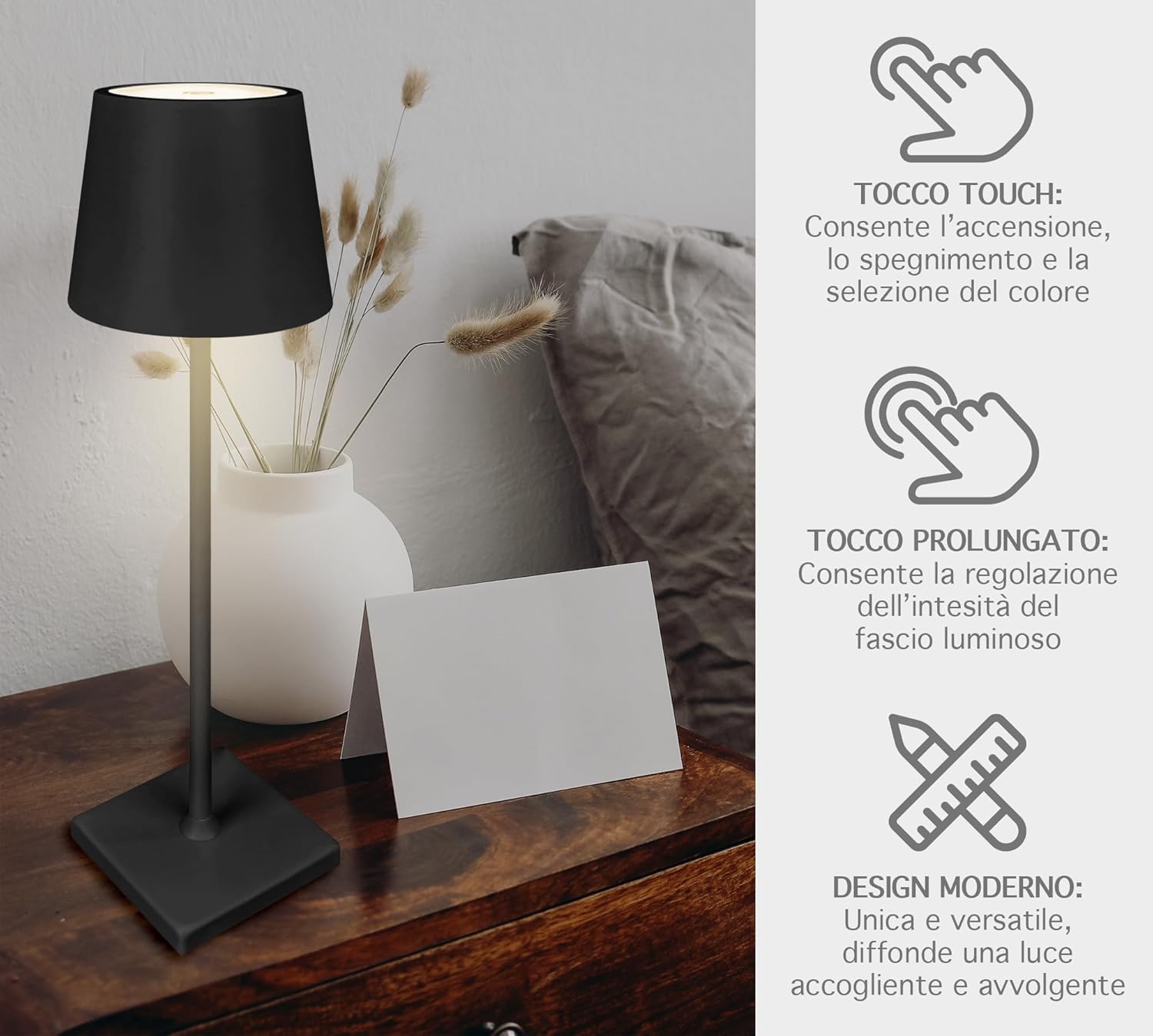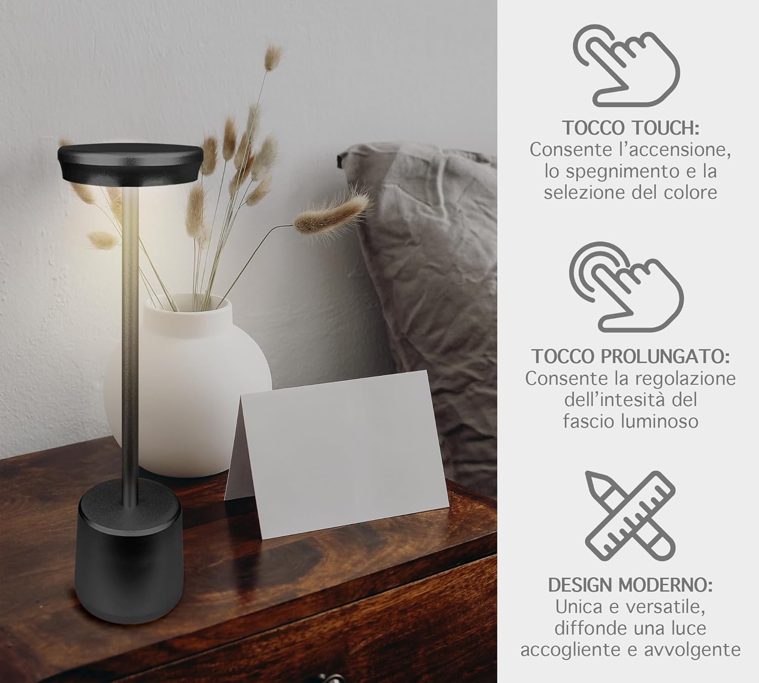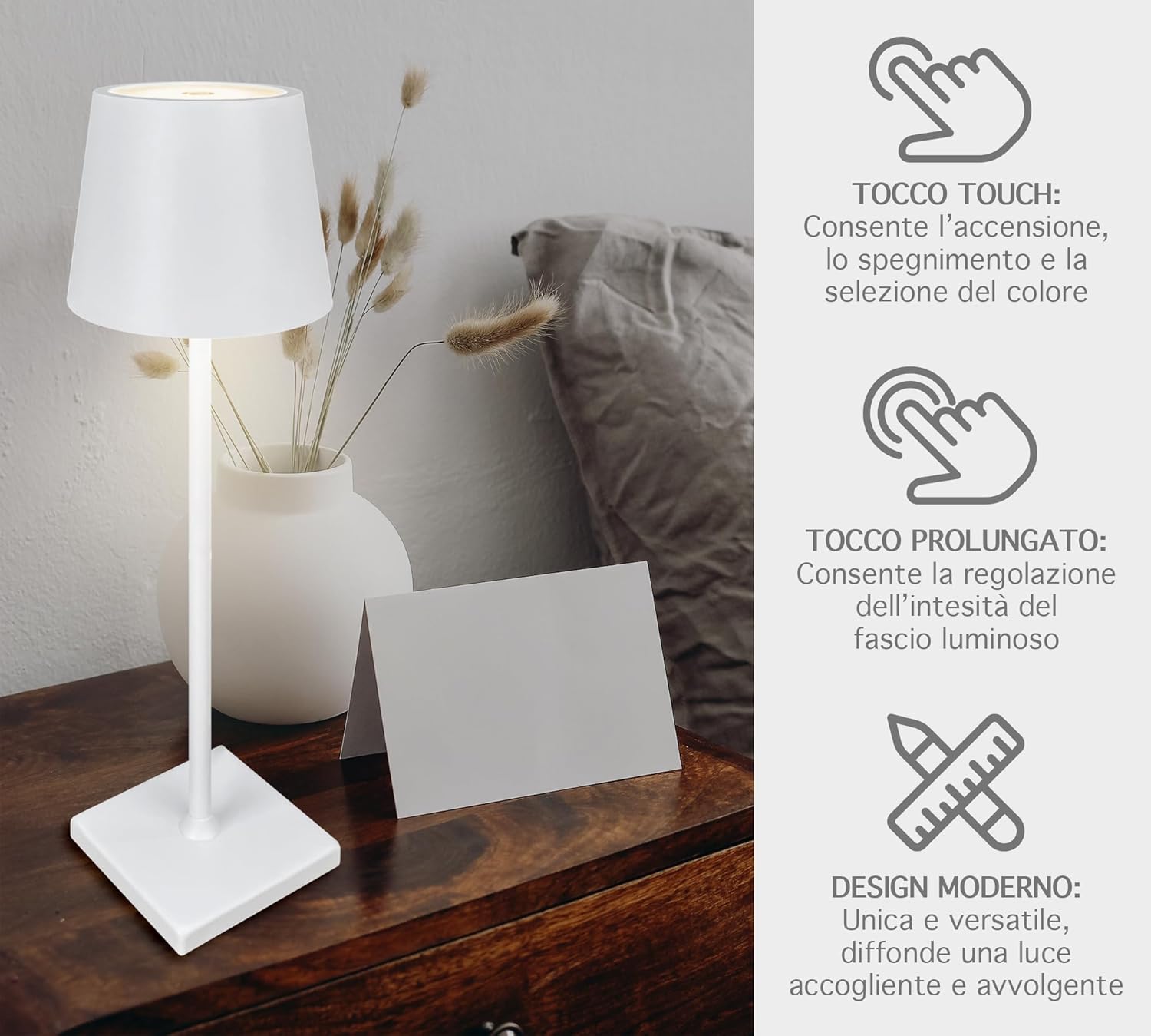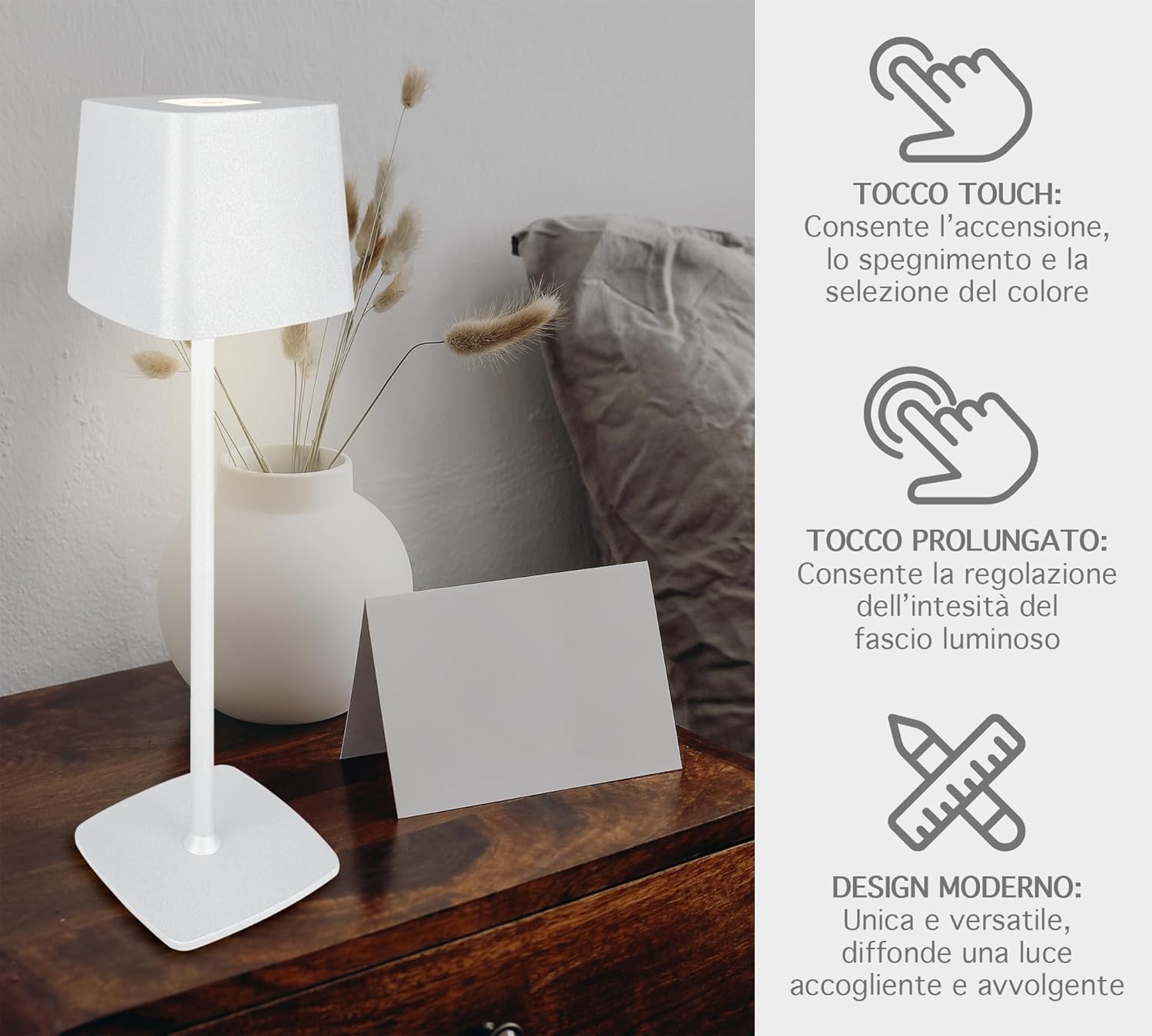 ✔️DESIGNE MODERNO: Bellissima Lampada a led dal design moderno e ricercato senza fili regolabile in 2 altezze in quanto il il palo che collega la base alla lampada è sezionato in 2 pezzi avvitabili tra loro, ideale per tavolo o come Abat Jour da Comodino utilizzabile sia per abitazioni o attività commerciali, prodotto di alta qualità- Il retro della base è antiscivolo e antigraffio per garantire una stabilità massima e senza rovinare la superficie dove andrete ad appoggiarla
