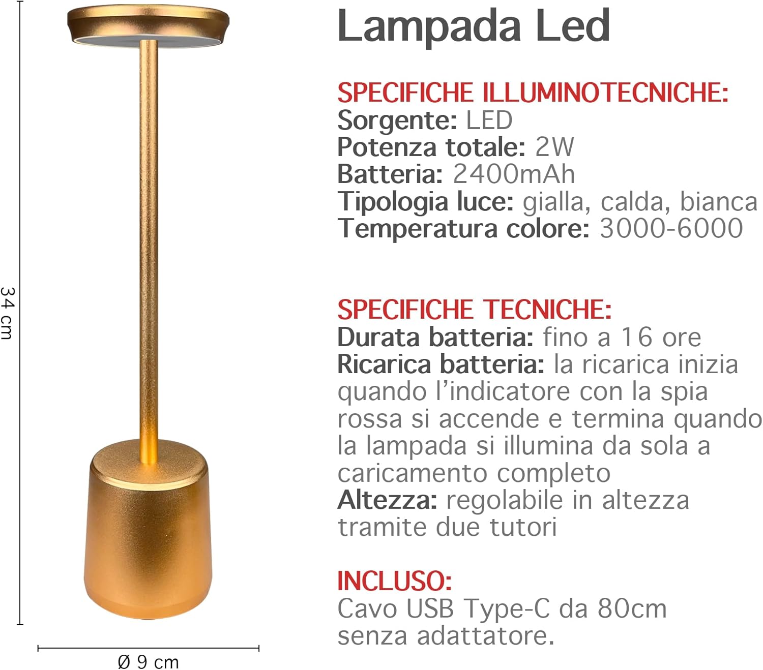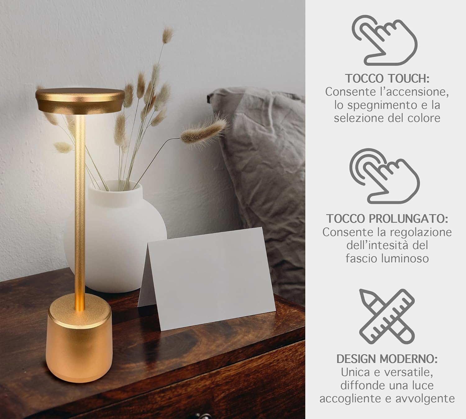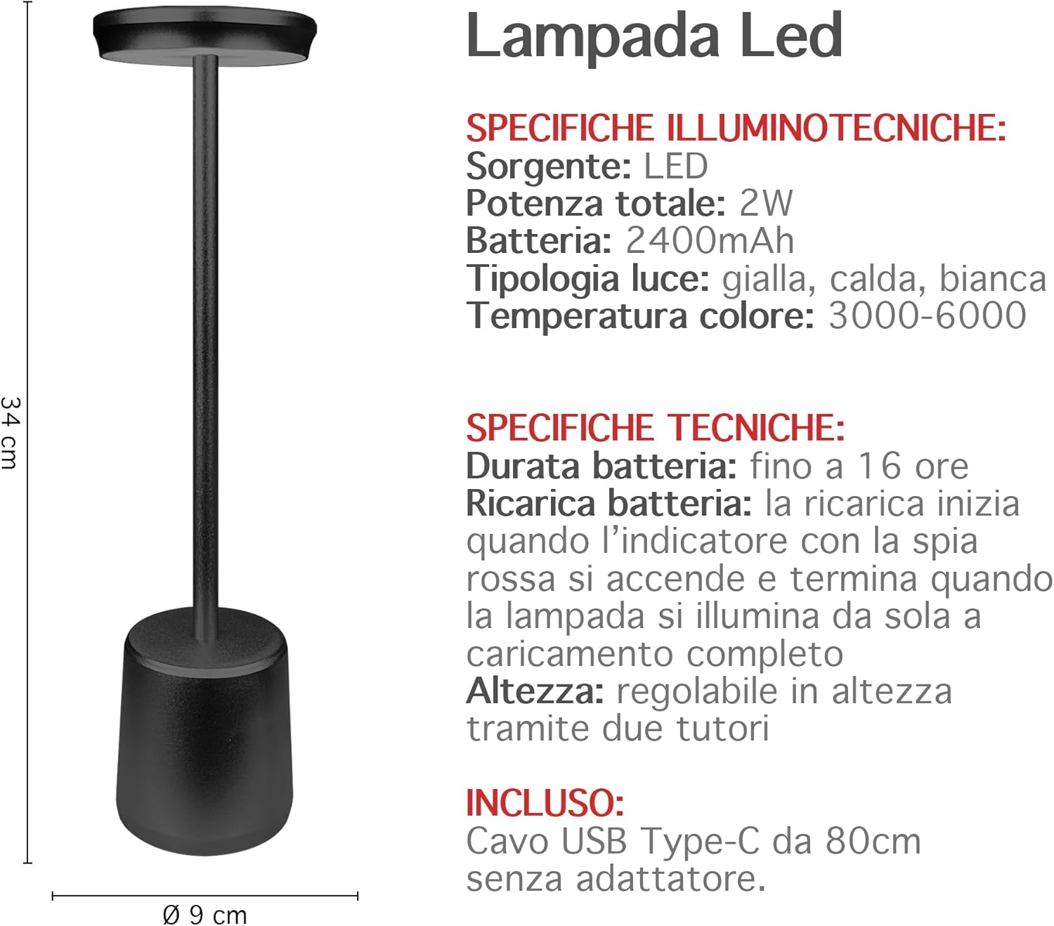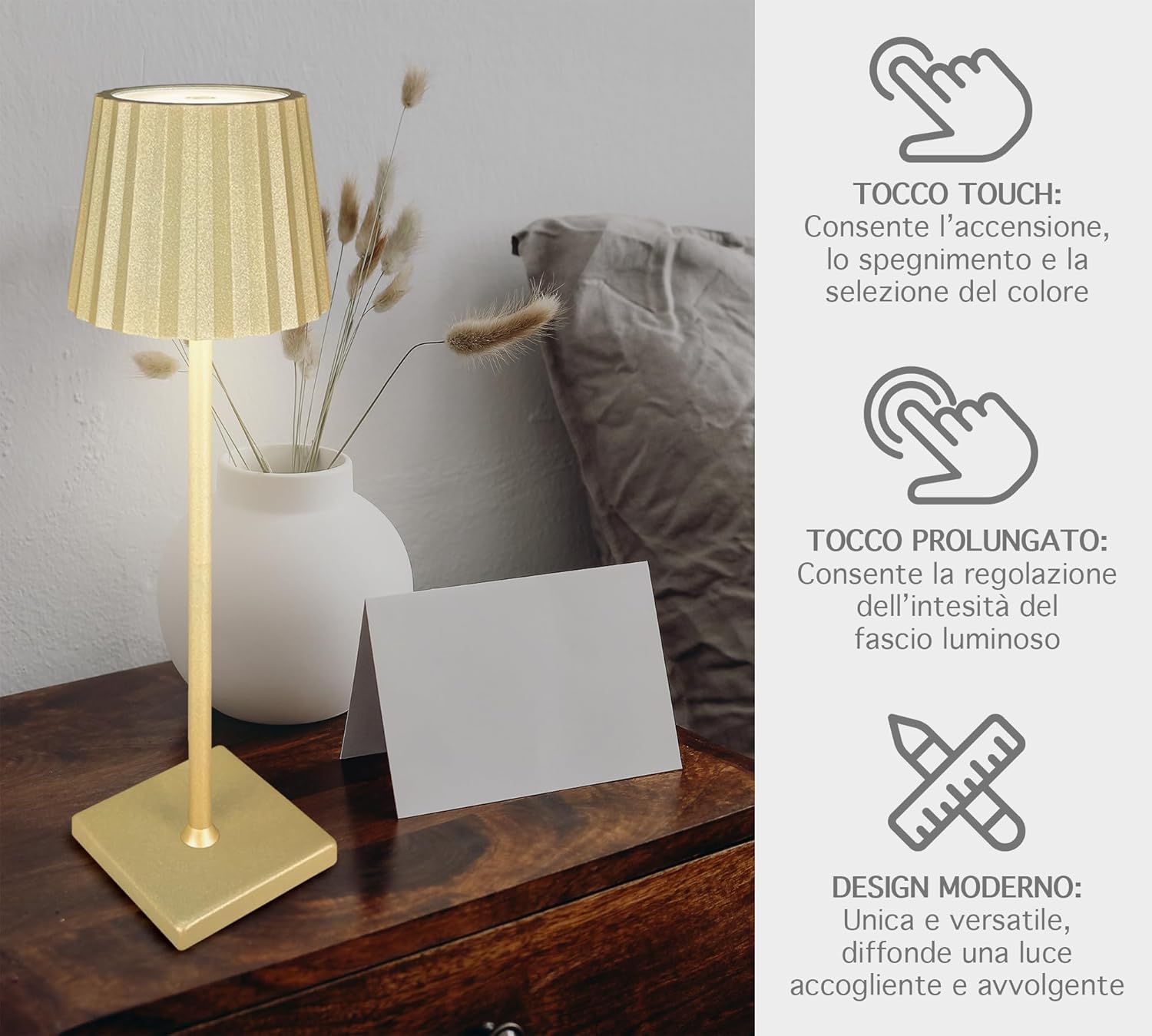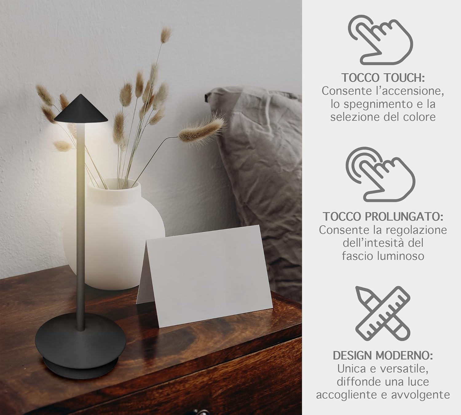 ✔️DESIGNE MODERNO: Bellissima Lampada a led dal design moderno e ricercato senza fili regolabile in 2 altezze in quanto il il palo che collega la base alla lampada è sezionato in 2 pezzi avvitabili tra loro, ideale per tavolo o come Abat Jour da Comodino utilizzabile sia per abitazioni o attività commerciali, prodotto di alta qualità- Il retro della base è antiscivolo e antigraffio per garantire una stabilità massima e senza rovinare la superficie dove andrete ad appoggiarla