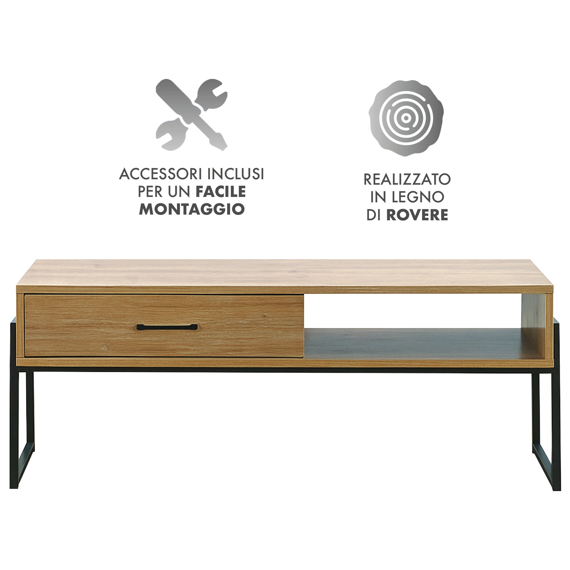 ✔️DESIGN FUNZIONALE - Dotato di un pratico cassetto e di un vano portaoggetti, questo mobile ti permette di tenere in ordine telecomandi, riviste e altri piccoli oggetti, mantenendo tutto a portata di mano. La sua struttura compatta e funzionale si adatta facilmente a diversi ambienti, aggiungendo un tocco di stile industriale che si abbina bene a vari tipi di arredamento.