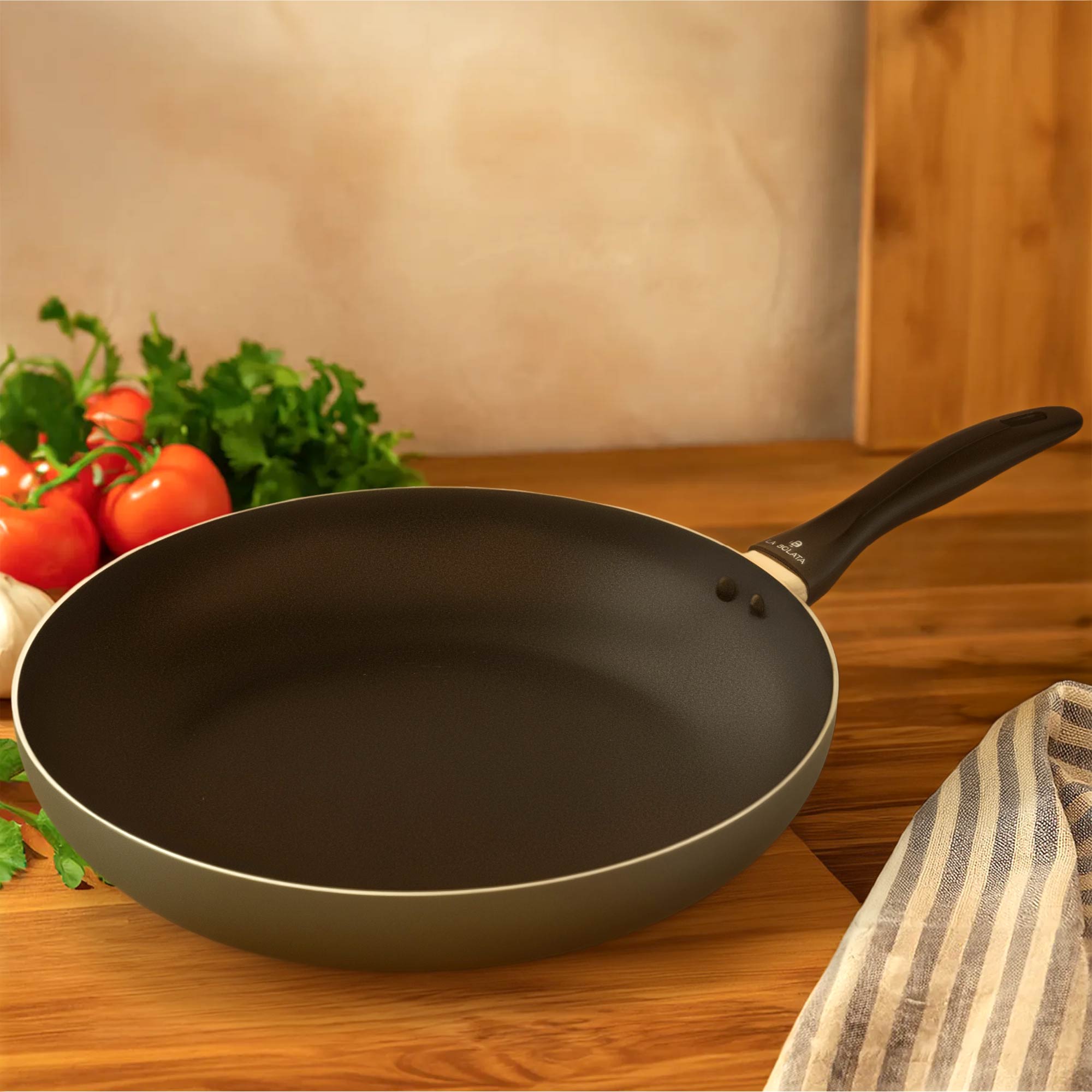 PADELLE IN ALLUMINIO DI ALTA QUALITA': Questa linea di padelle è realizzata in alluminio di alta qualità, leggera ma robusta, con manico ergonomico pensato per una presa comoda e sicura durante la cottura. Il rivestimento antiaderente garantisce una cottura uniforme con poco olio e una facile pulizia.