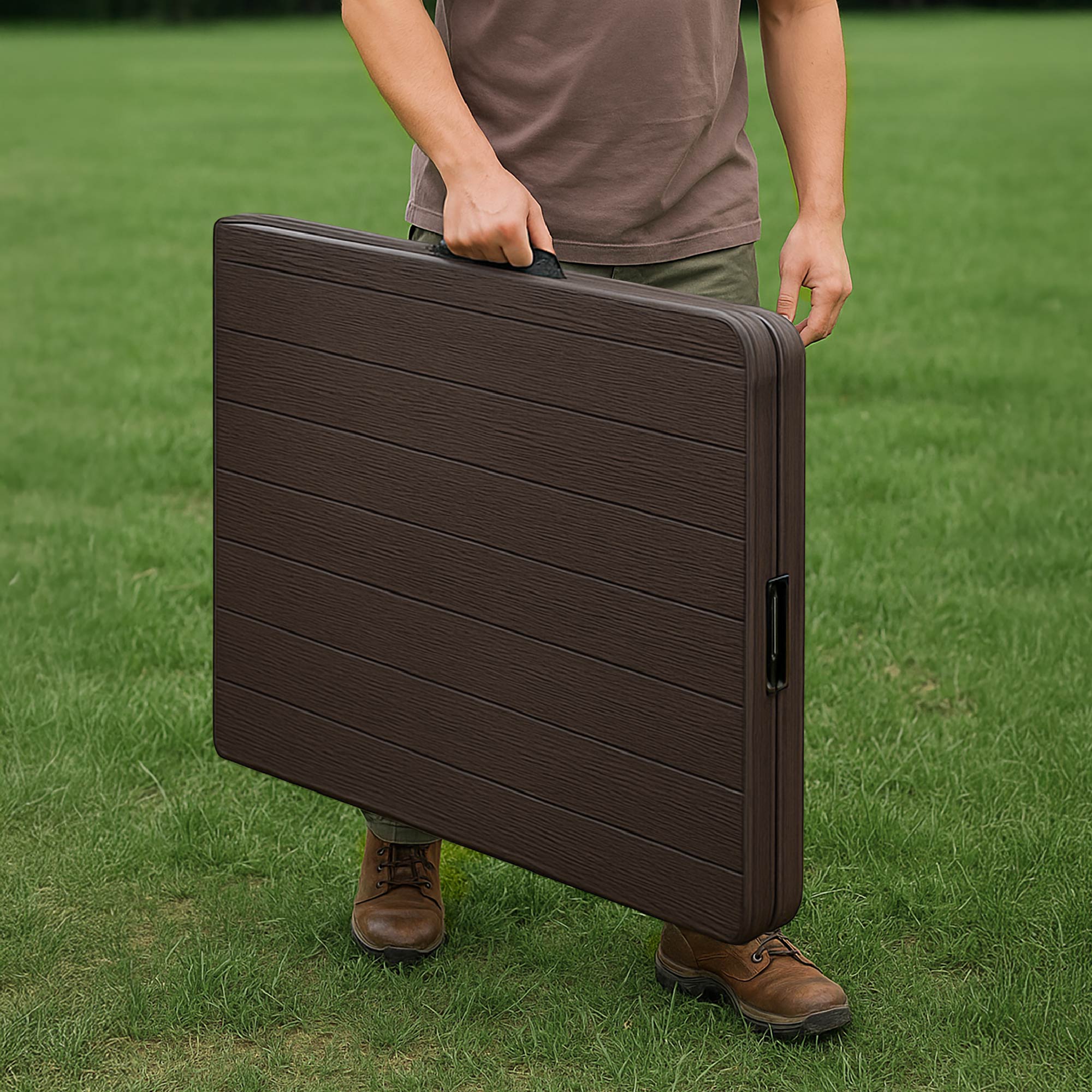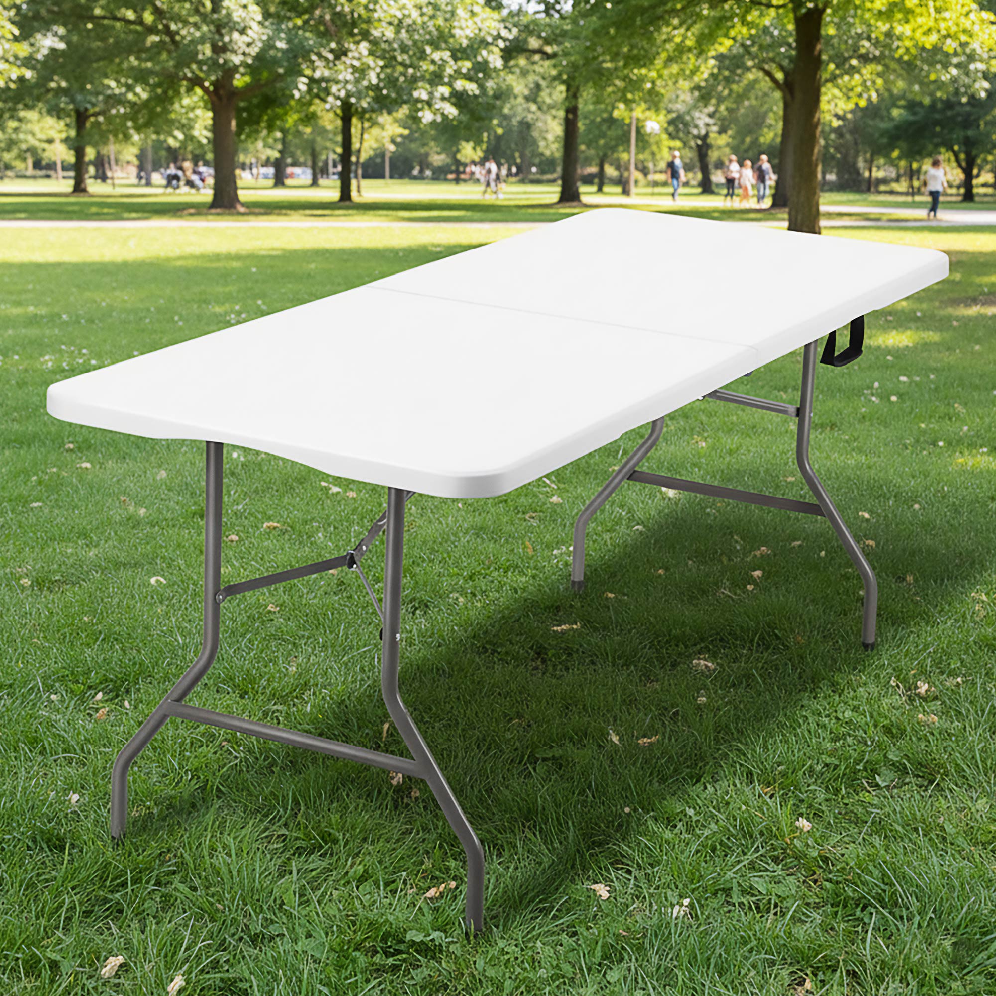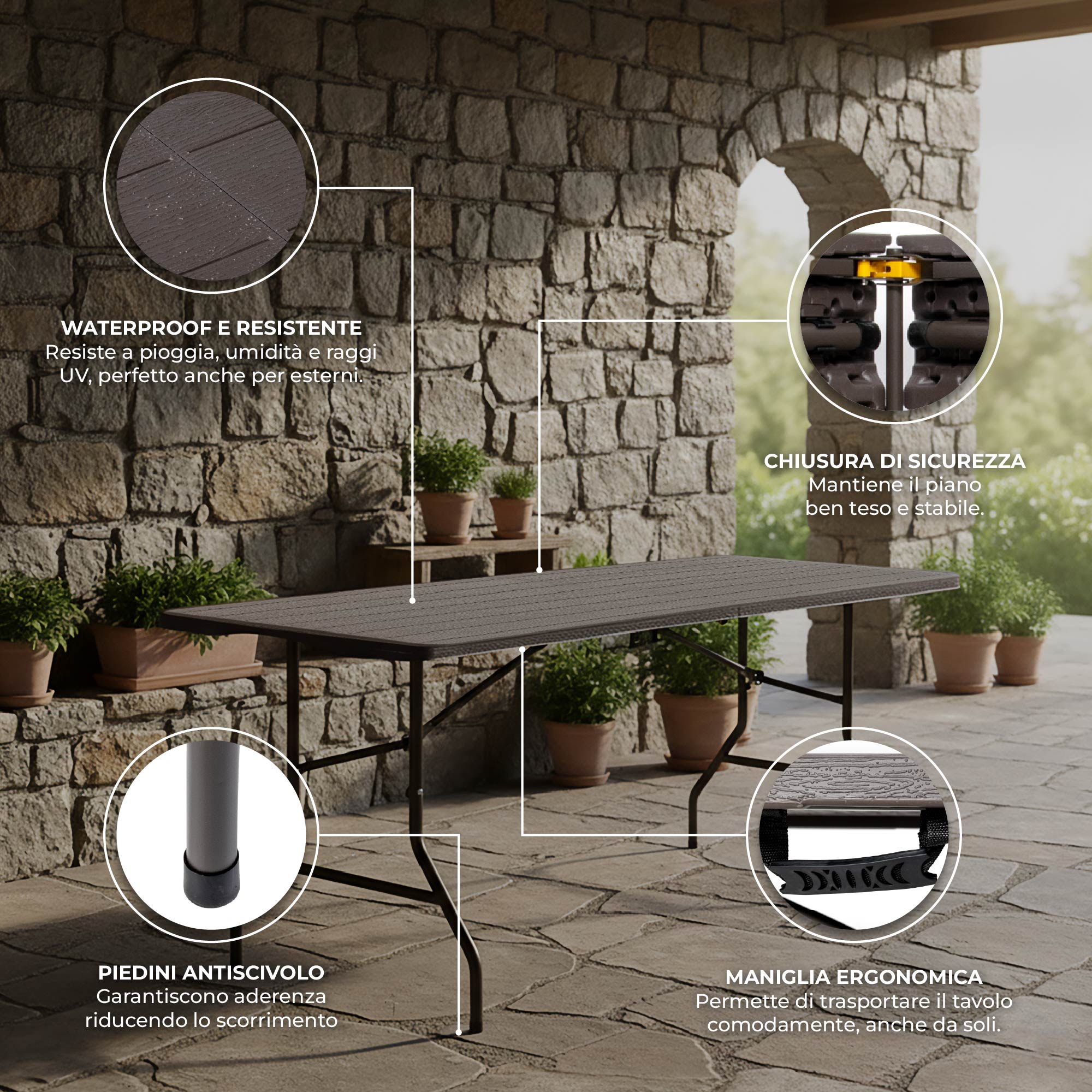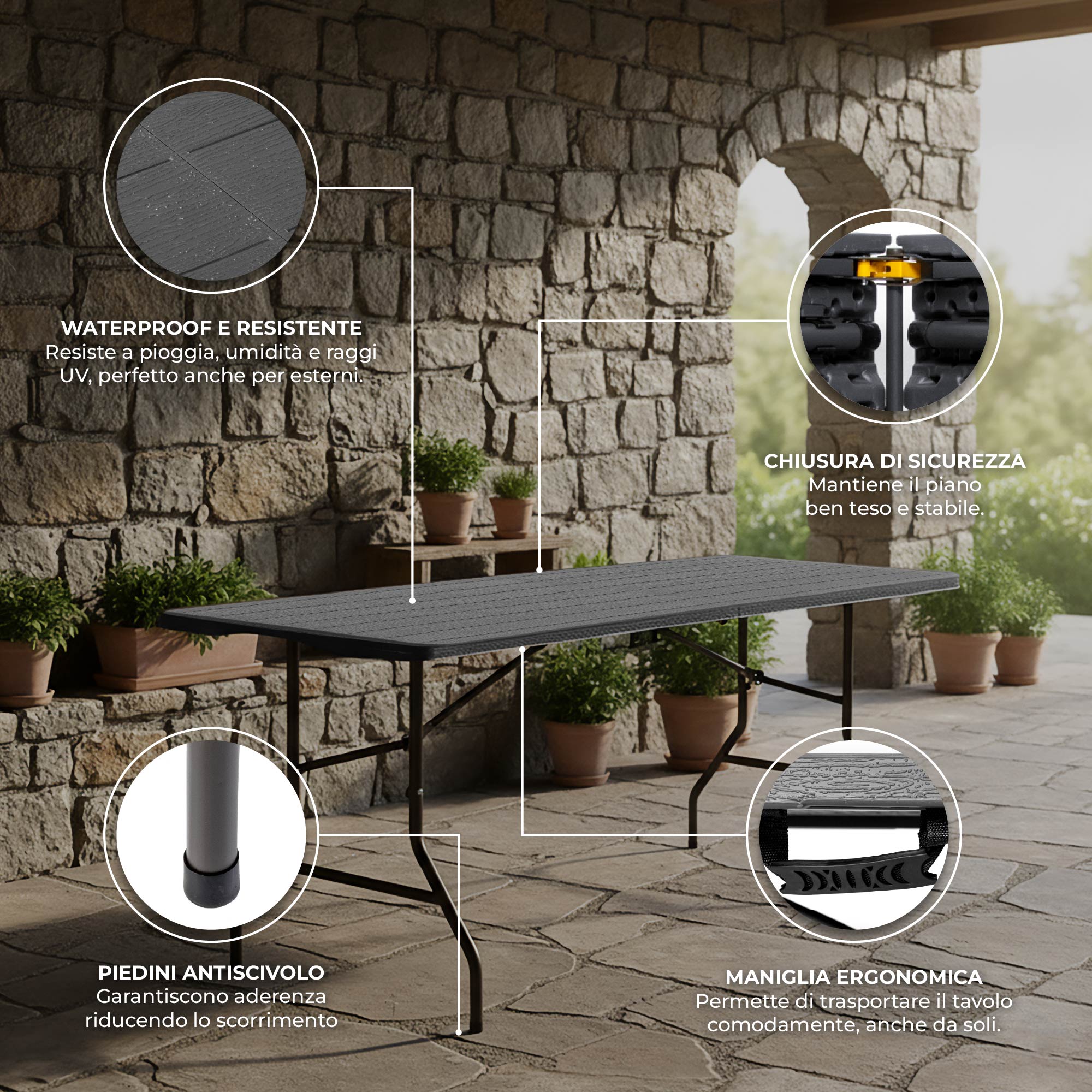 Solido e Robusto - La struttura è interamente realizzata in acciaio verniciato a polvere solido e robusto e totalmente antiruggine quindi può essere sempre lasciato montato all'aperto ma in caso di spostamenti una volta richiuso diventa facilmente trasportabile grazie anche alla pratica e comoda maniglia, inoltre è dotato di un sistema di chiusura di sicurezza a scatto che impedisce al tavolo di aprirsi durante il trasporto