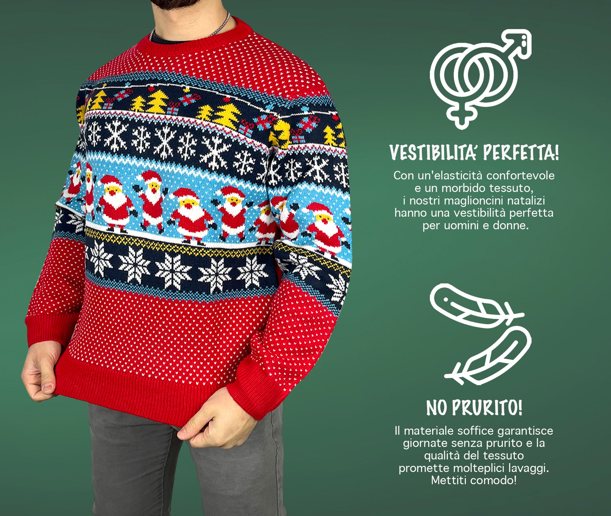 Praticità: Lo spirito del Natale è anche una questione di moda, con questo divertente maglione natalizio, Morbido e caldo grazie alla sua composizione non crea prurito e sudorazione realizzati con i migliori materiali per garantire durata e lunga tenuta
