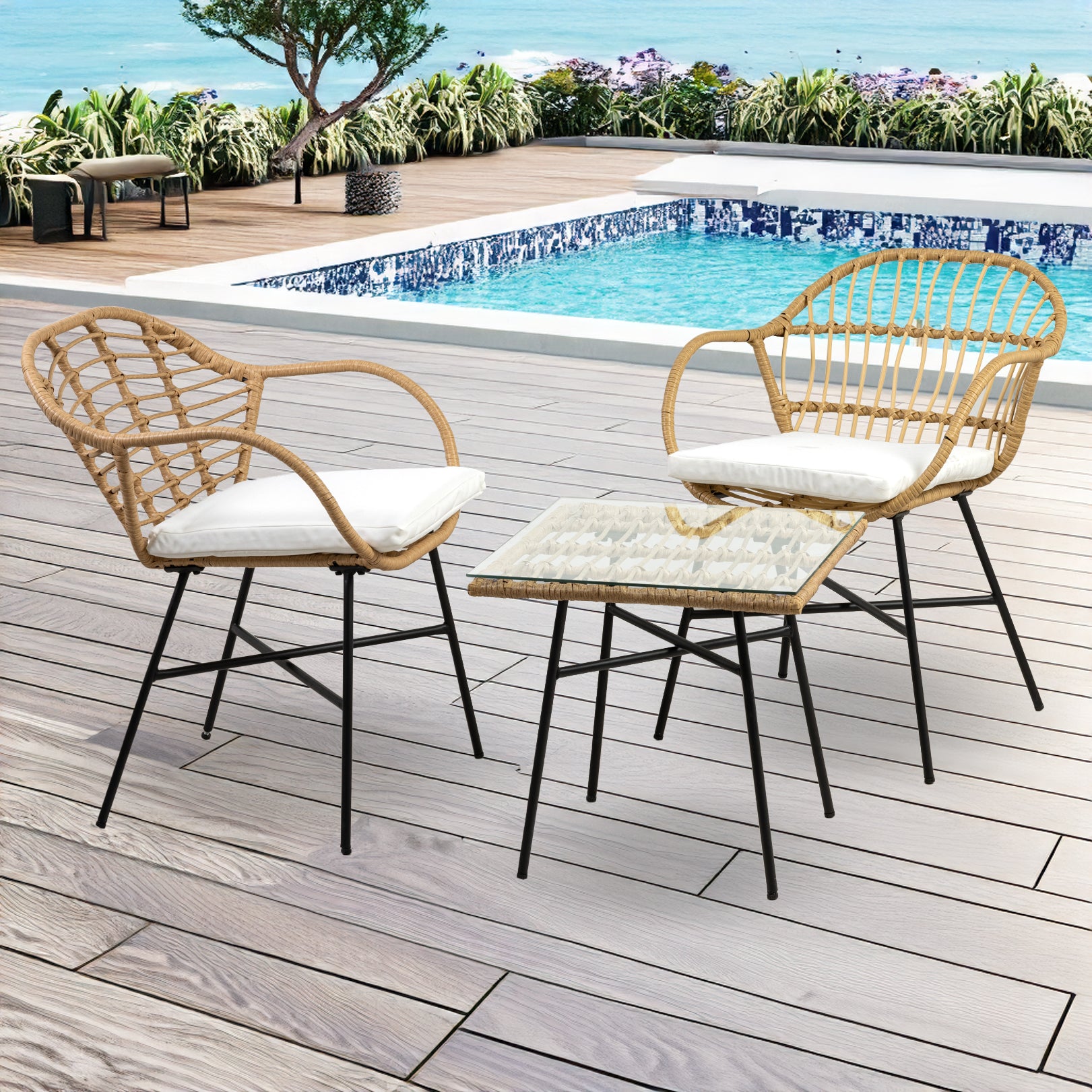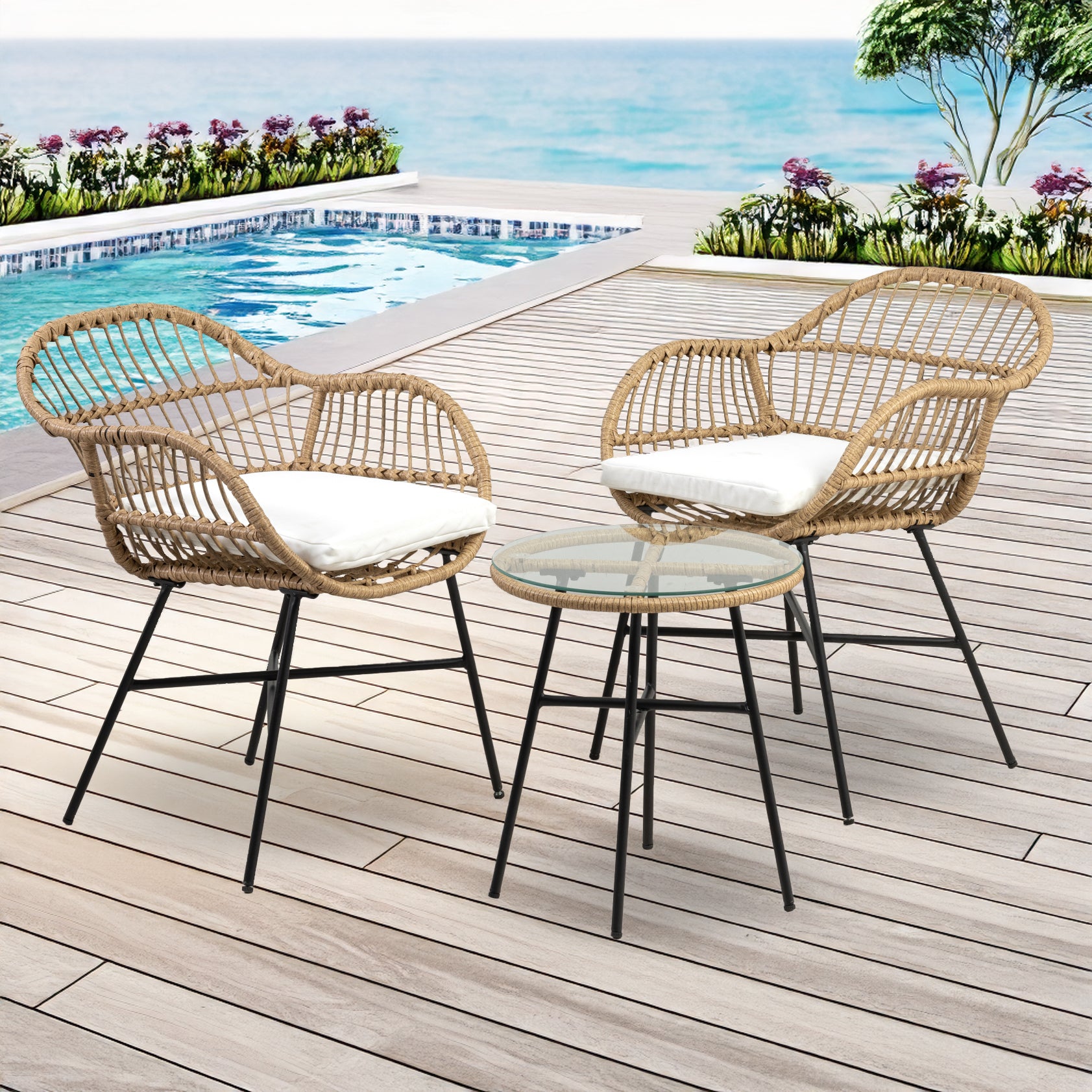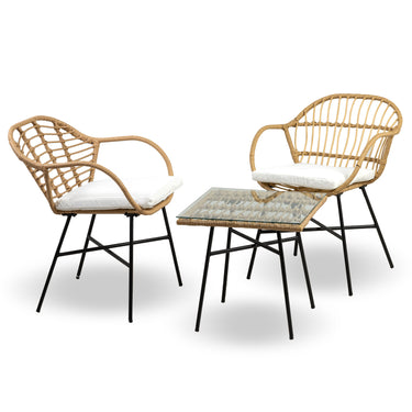 Set Bistrot da Esterno in Rattan con 2 Poltrone e Tavolino con Piano in Vetro e Cuscini Il Gruppone