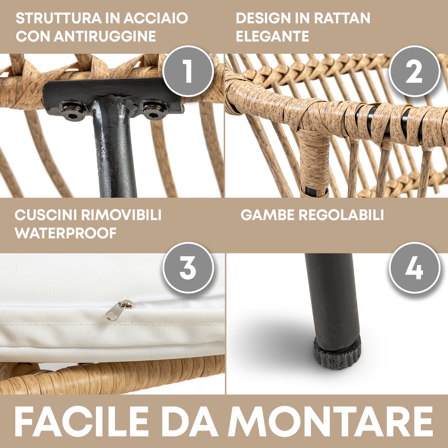 Qualità: Elegantissimo Set da Giardino/Terrazzo composto da 2 sedie e un tavolino in Rattan Sintetico Struttura in acciaio con rivestimento antiruggine impermeabile e resistente se lasciato all'aperto al continuo utilizzo alle intemperie ai cambiamenti climatici non teme Raggi Uv,Umidità e non scolorisce nel tempo.