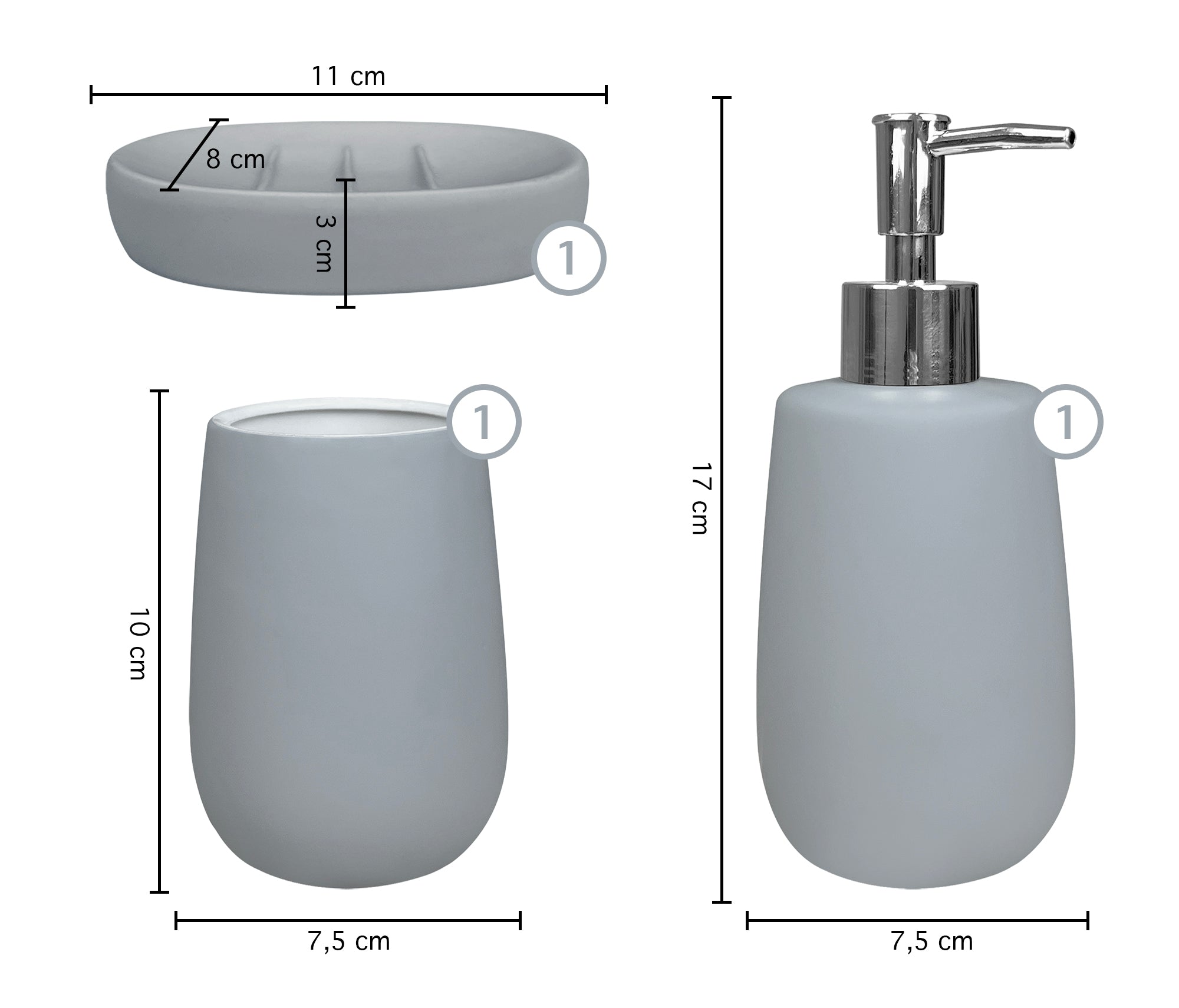 Set Accessori Bagno 3 Pezzi in Ceramica Design Moderno Da Appoggio Il Gruppone